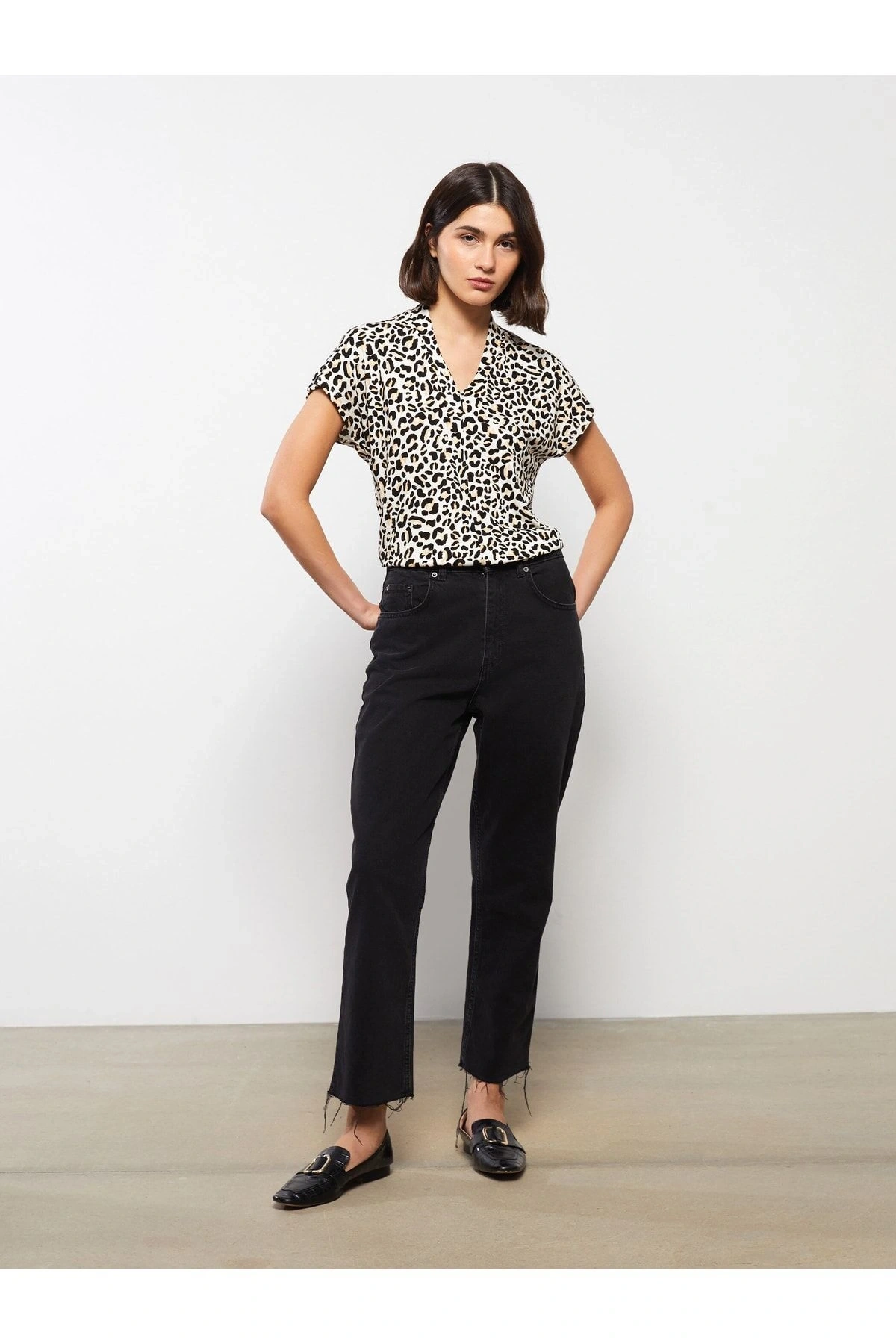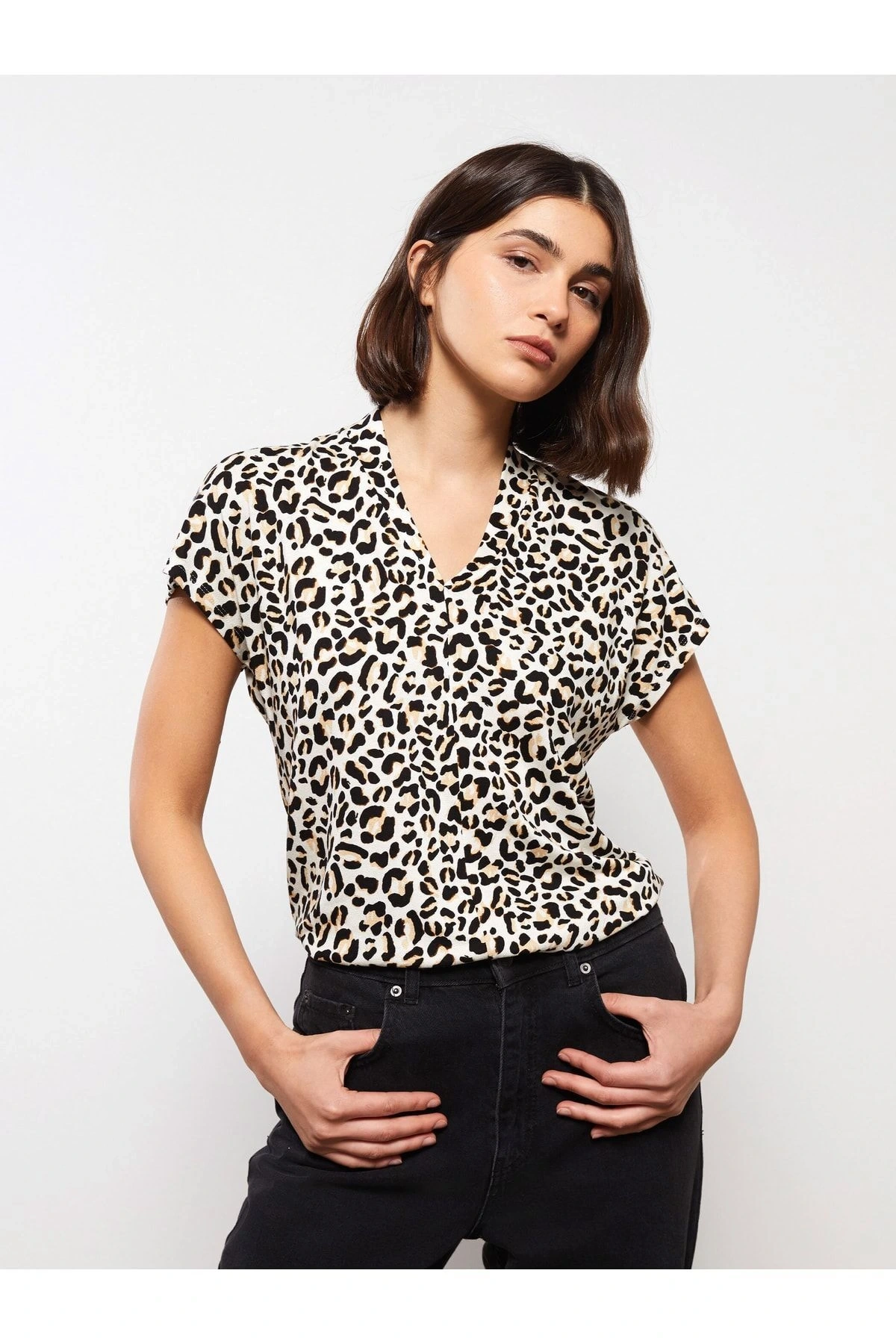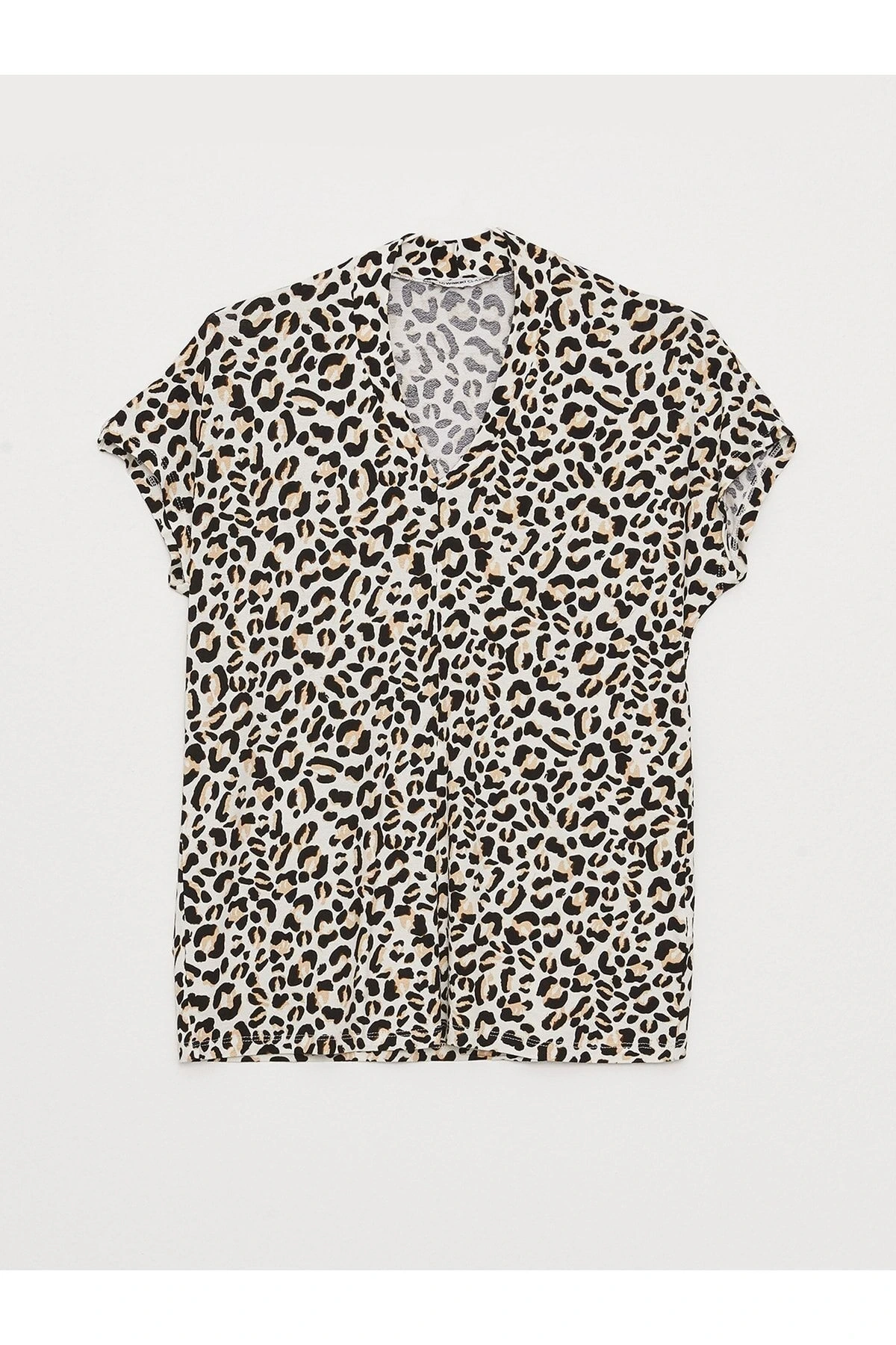 LCWAIKIKI Classic Karışık V Yaka Desenli Kısa Kollu Kadın Bluz