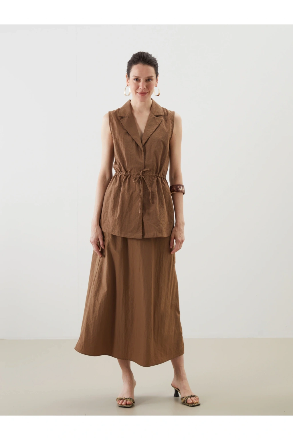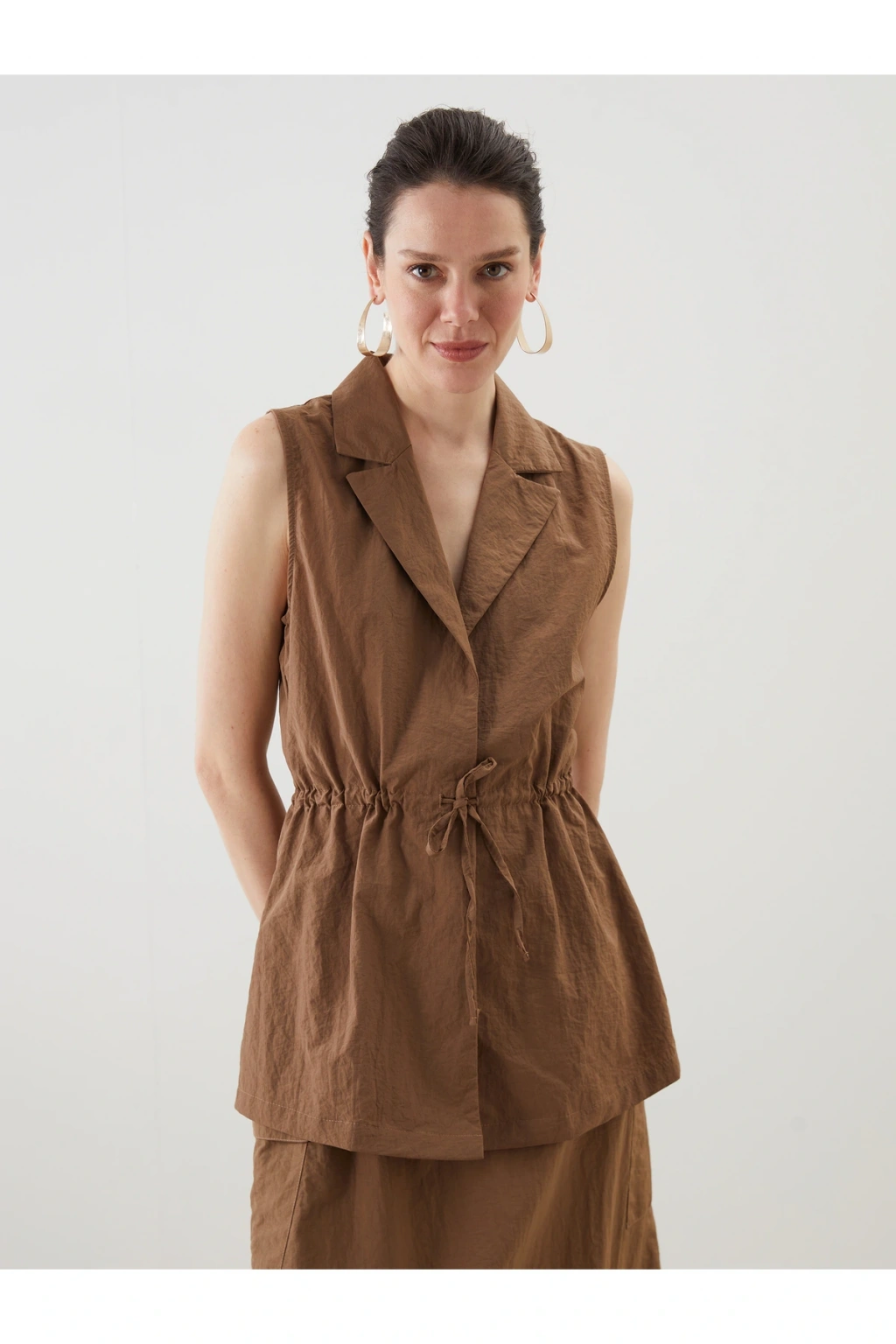 Ceket Yaka Keten Görünümlü Kadın Klasik Yelek