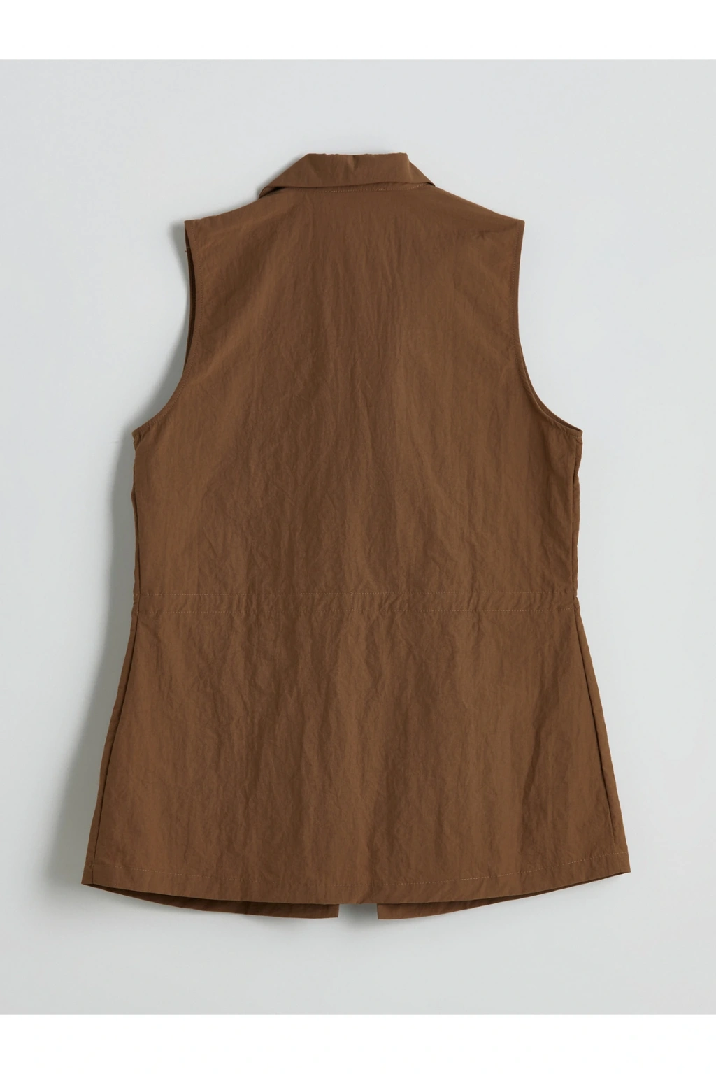 Kahverengi Kare Yaka Kadın Klasik Yelek