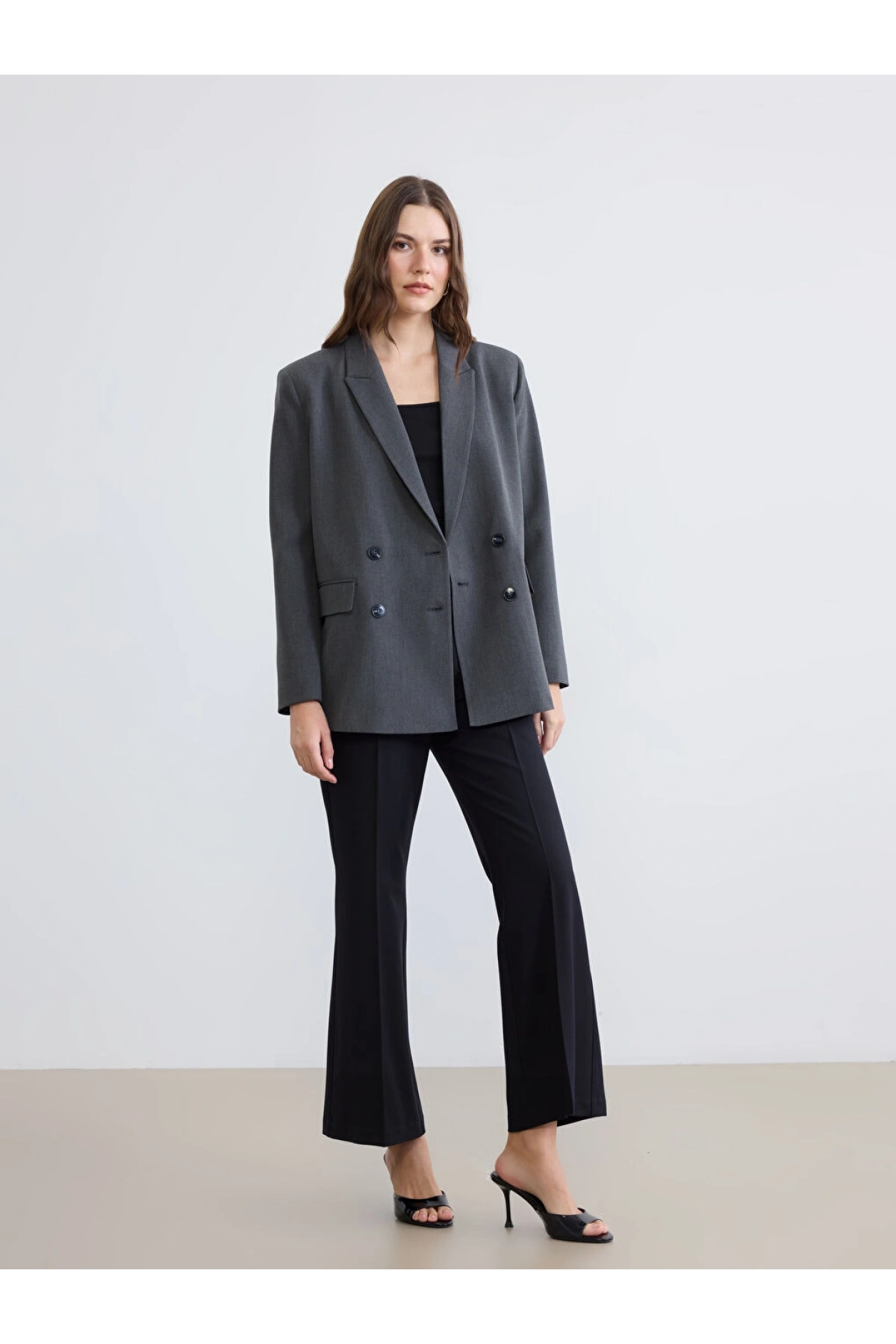 LCWAIKIKI Classic Gri Kruvaze Yaka Kadın Blazer Ceket