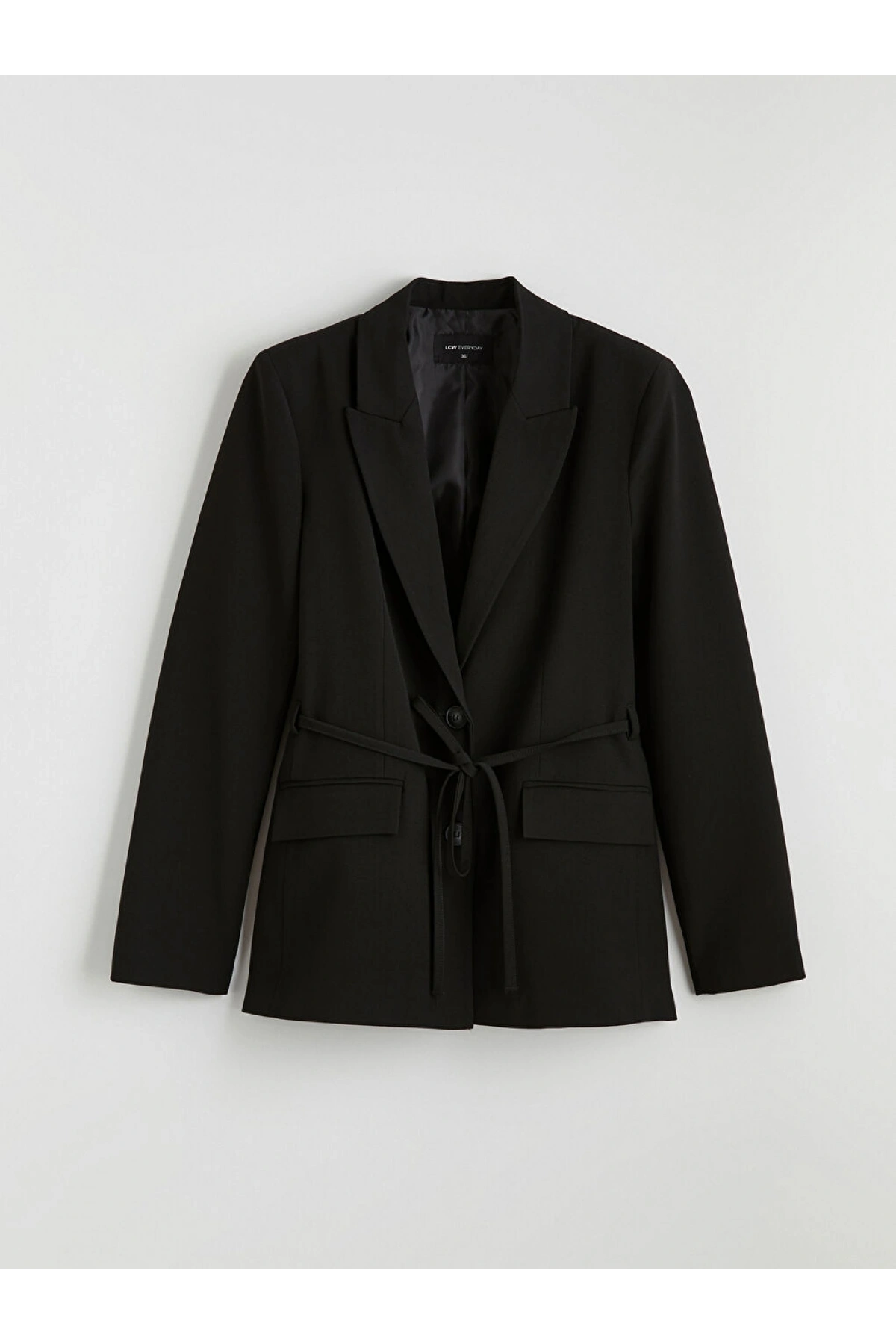 LCWAIKIKI Classic Siyah Beli Kuşaklı Kadın Blazer Ceket
