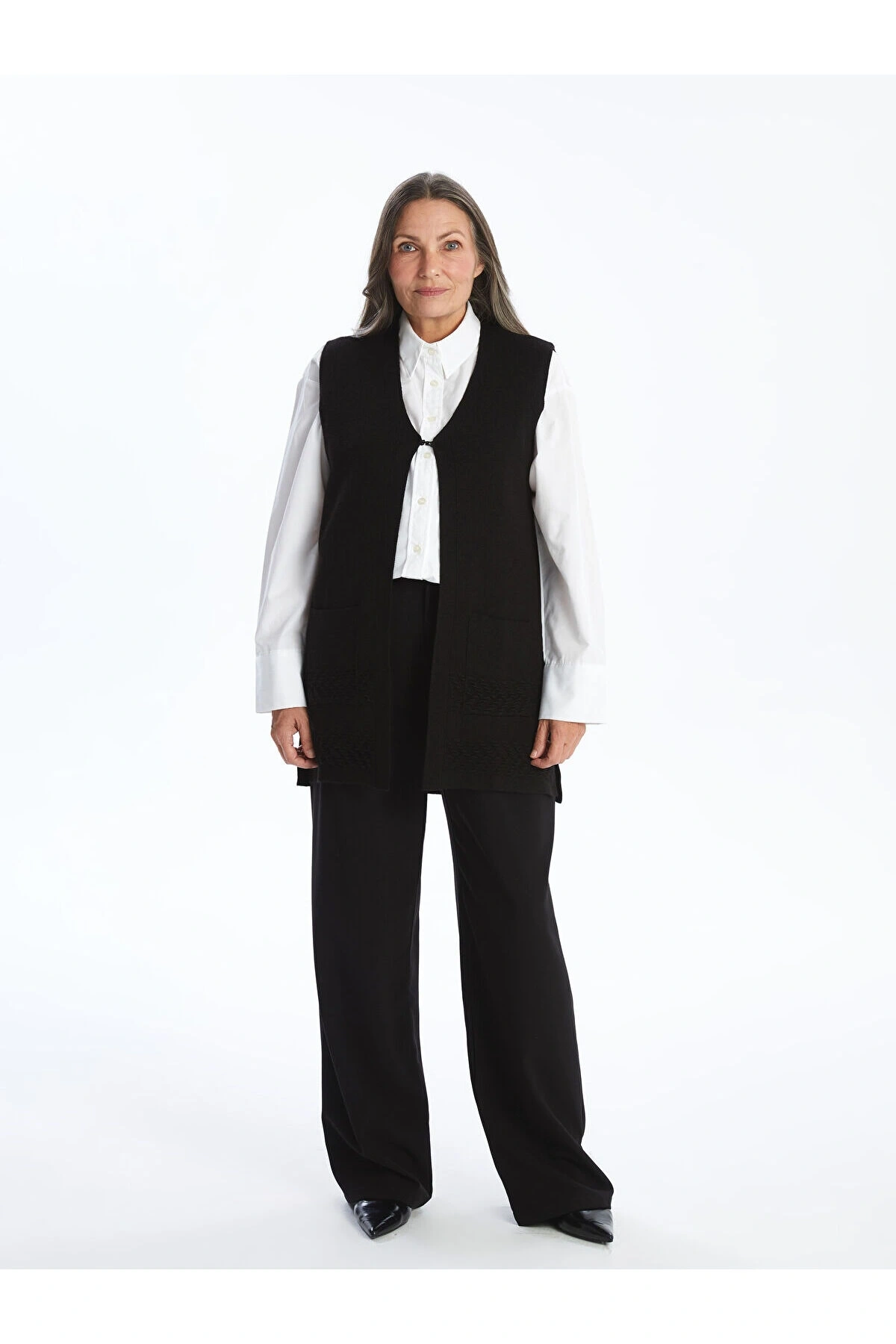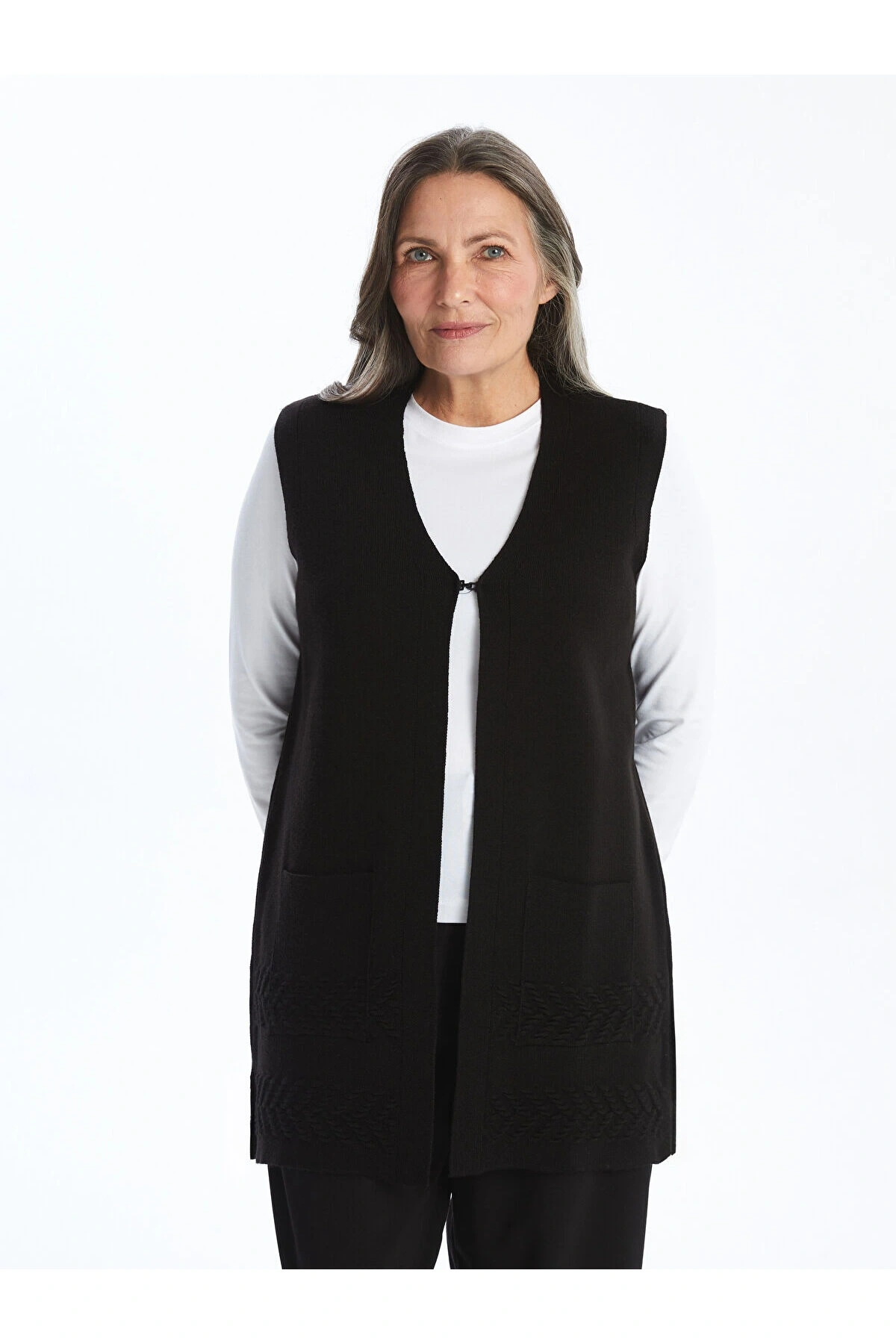 LCW Grace Yeni Siyah Kadın V Yaka Düz Yelek