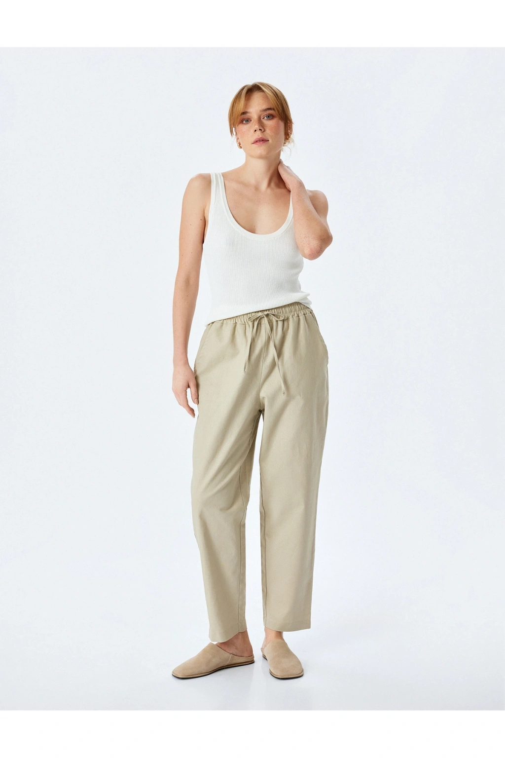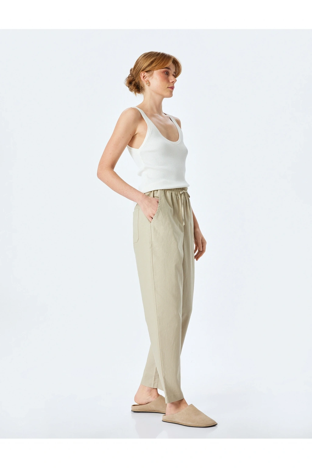 Cepli Beli Bağcıklı Bej Kadın Pantolon 5SAK40277PW