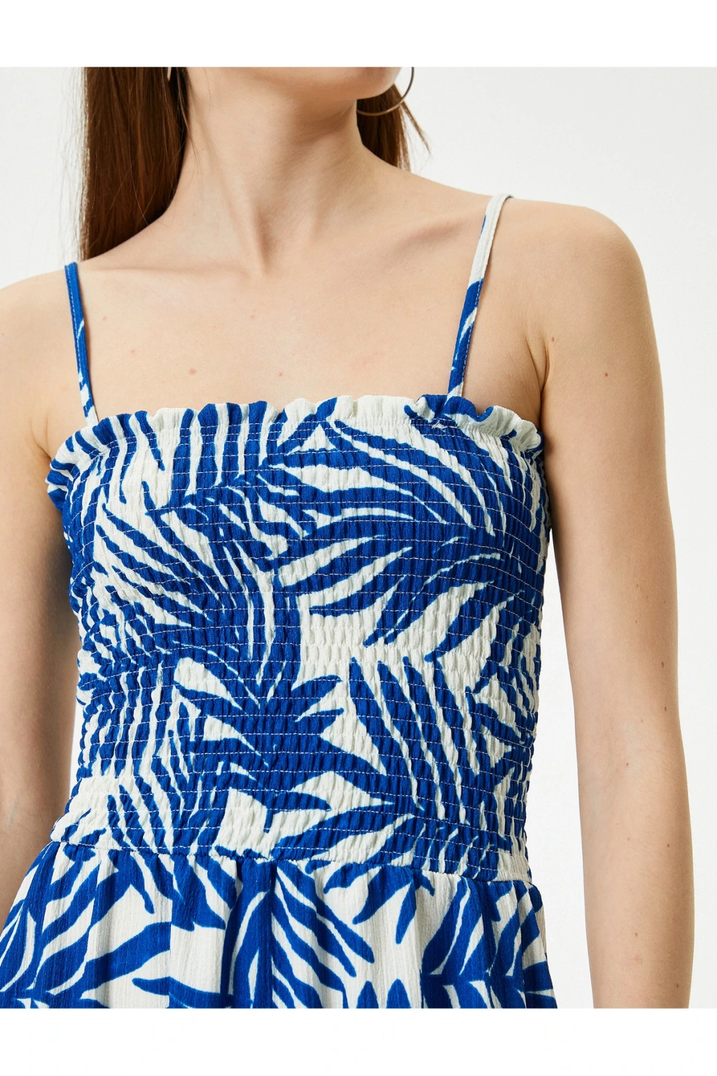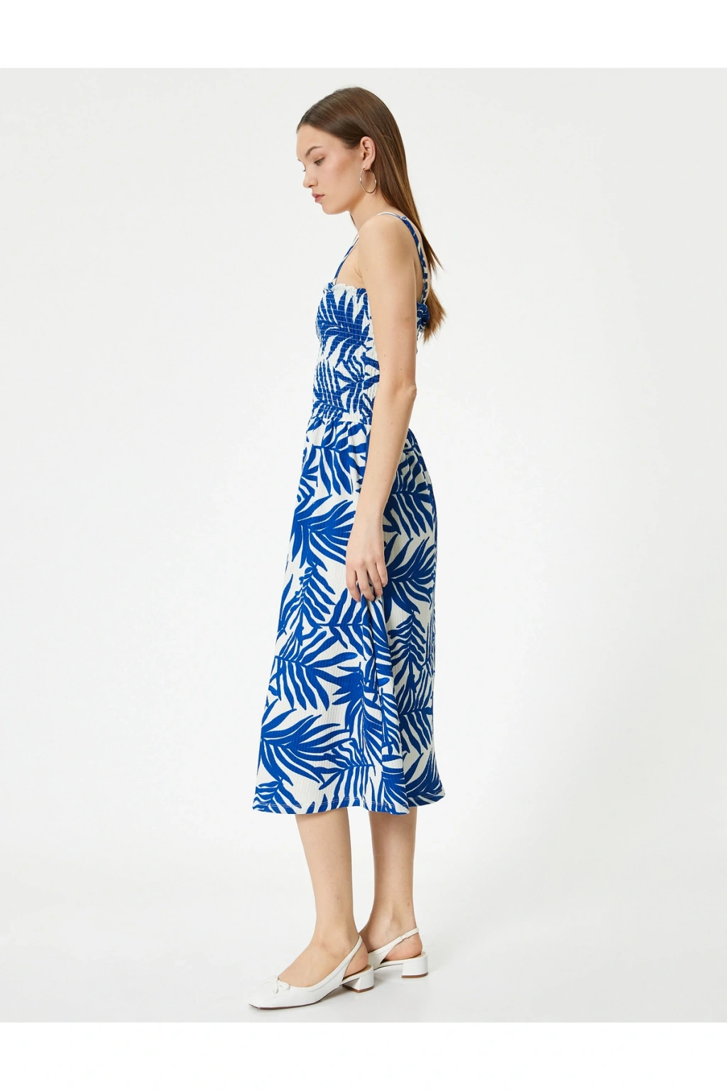 Askılı, gipe detaylı, rahat kalıp, midi, çiçekli elbiseyi stilinizle buluşturun! Koton yazlık ve çiçekli elbise modelleri feminen, gösterişli fakat bir o kadar da rahat ve zamansız tasarımlarla karşımıza çıkıyor.; Yazlık elbise modellerinizi hasır halka küpeler ve çantalarla tamamlayabilir daha özgün bir görünüm yaratabilirsiniz.; | Model Boy: 172 | Model Kalça: 88 | Model Üst: 59 | Model Bel: S | Model Göğüs: 79 | Model Jean: 27/32