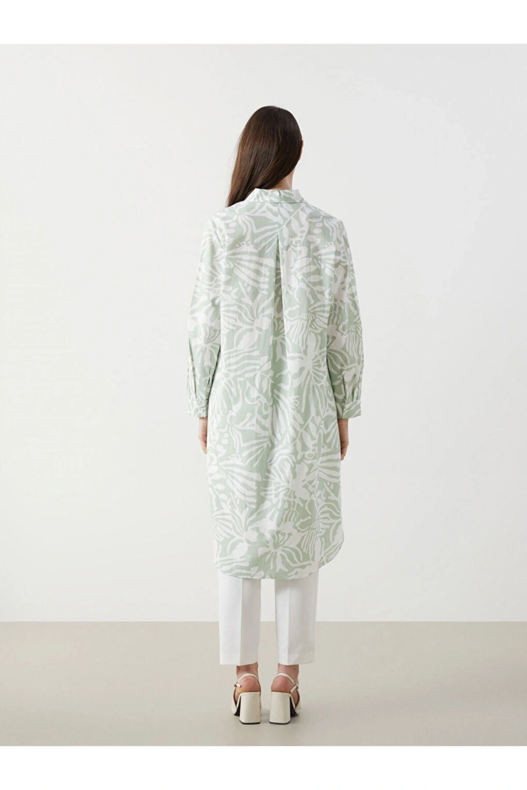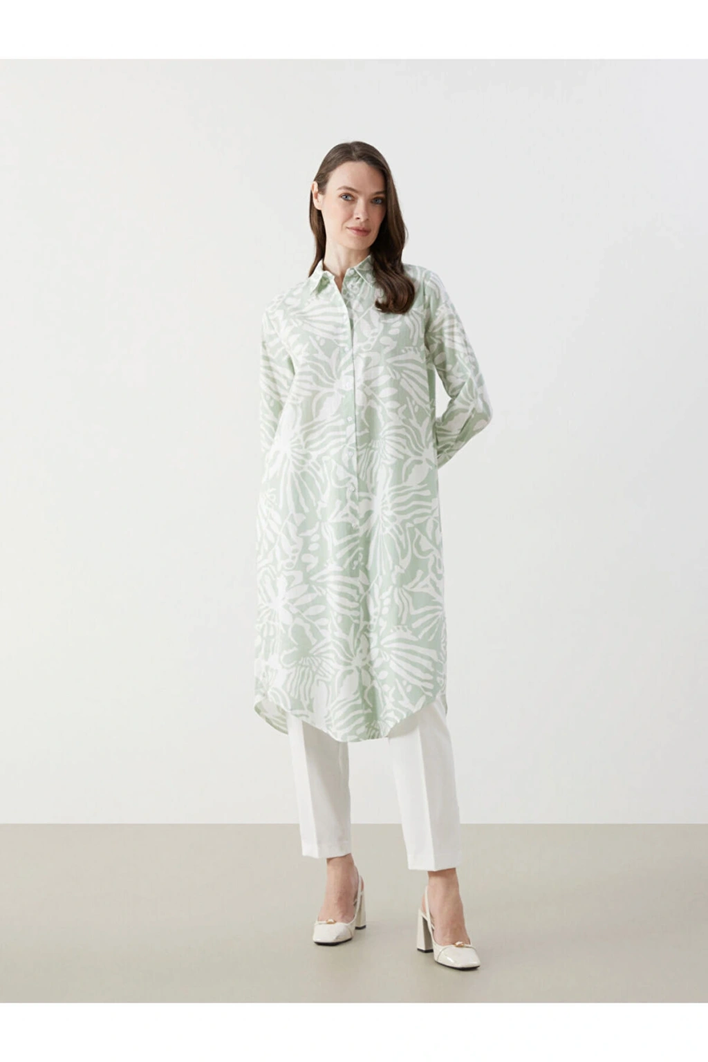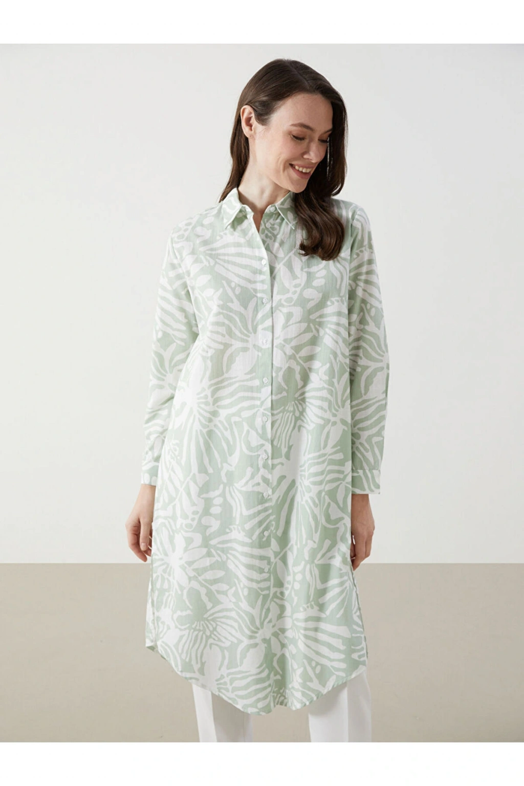 Çiçek desenleri ve gömlek yakasıyla feminen bir şıklık sunan uzun kollu gömlek tunik rahat kalıbıyla gün boyu konfor sağlar.; Hem günlük hem de özel günler için ideal.
