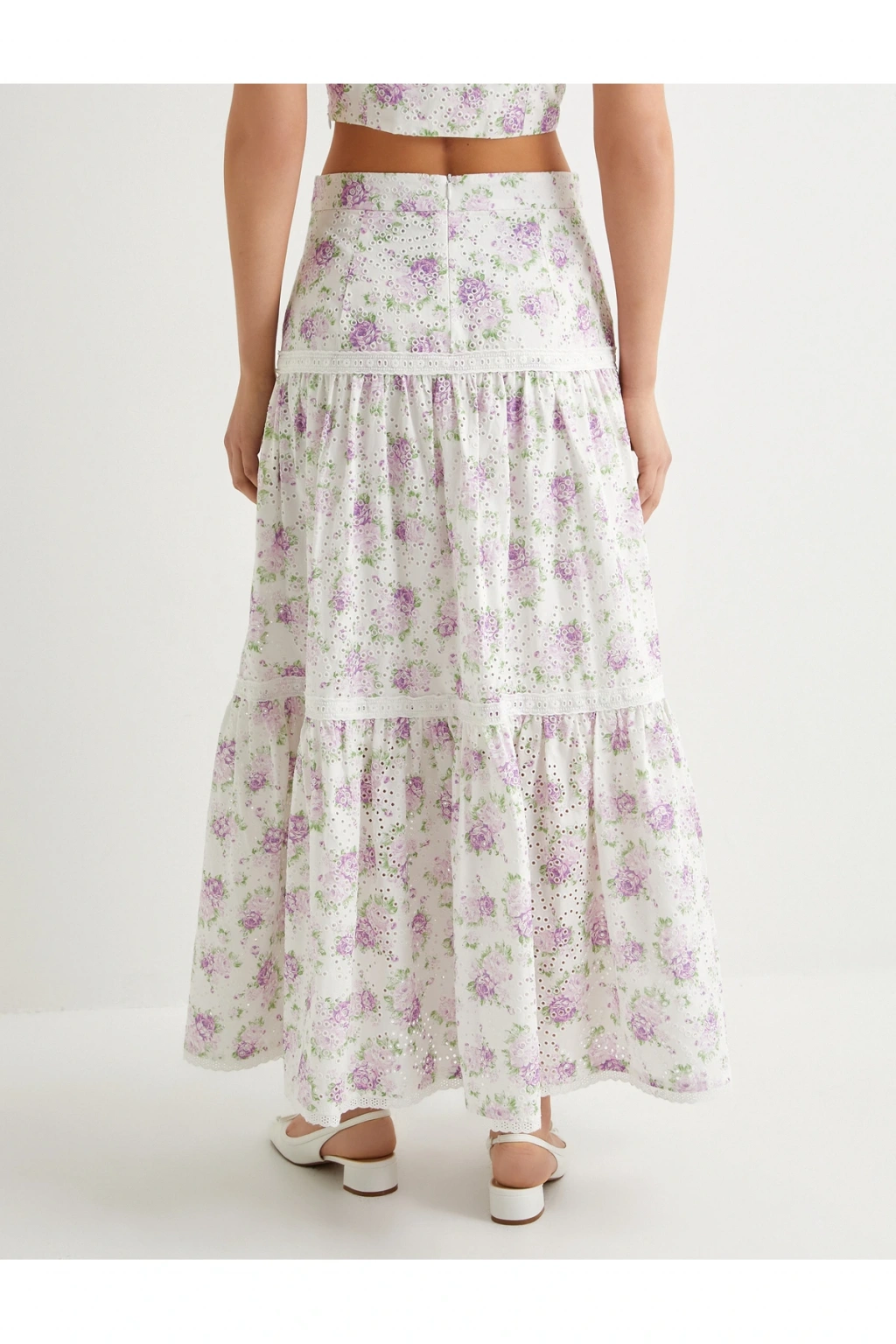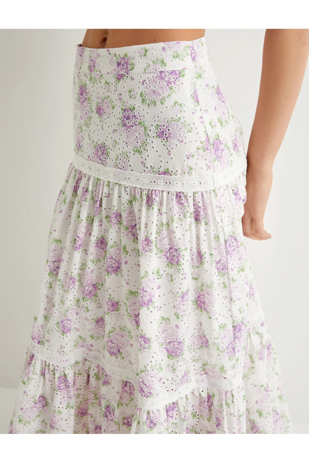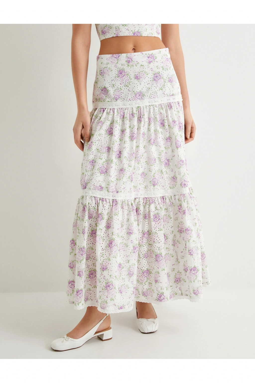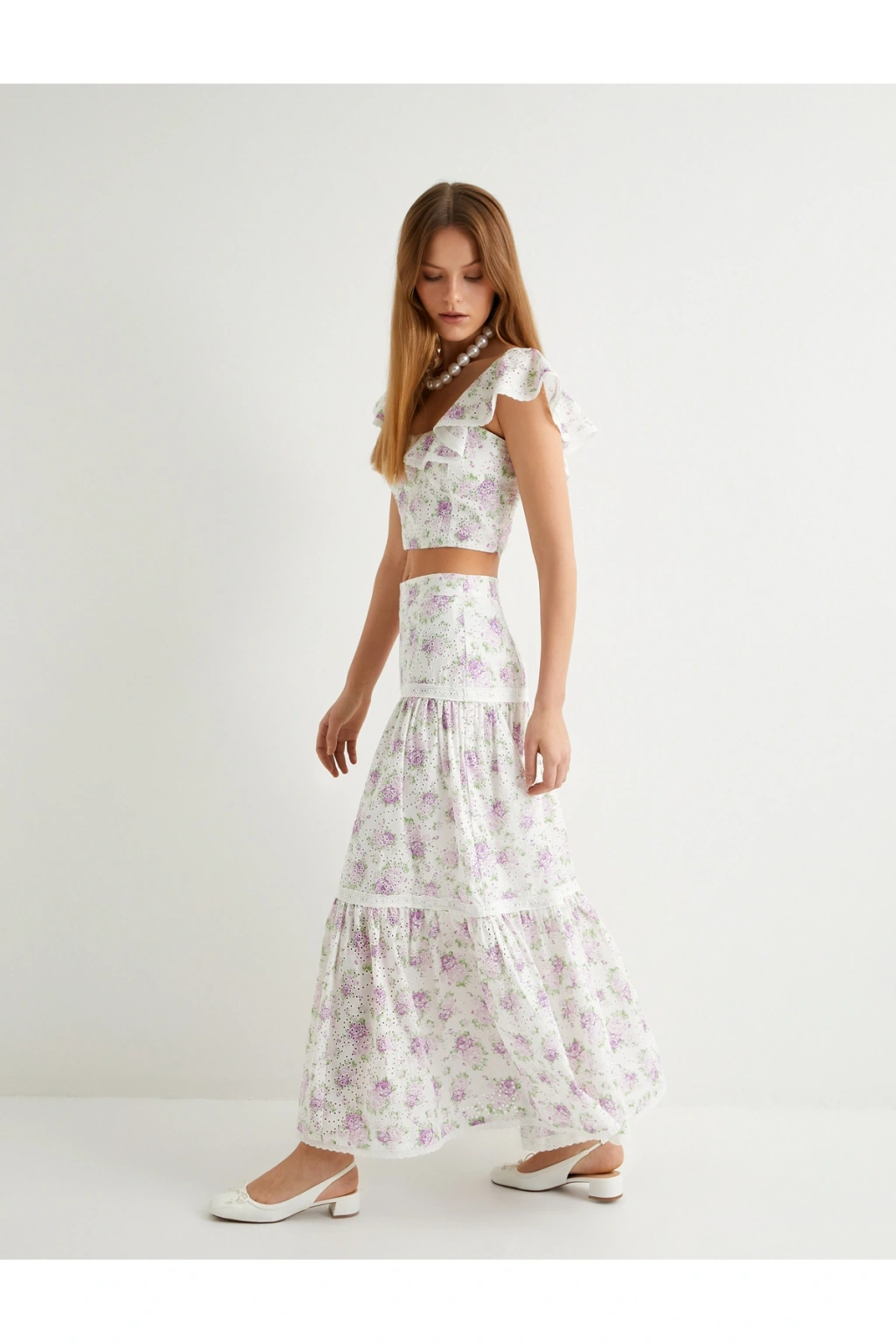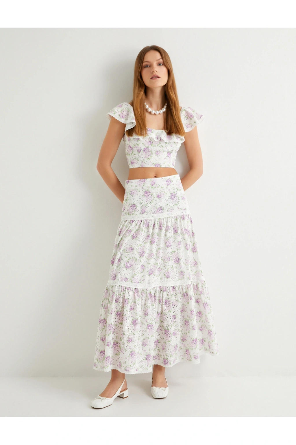 Çiçekli Uzun Etek Normal Bel Volanlı Pamuklu Fistolu