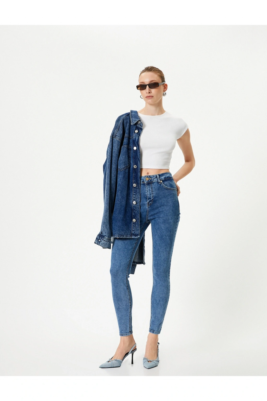 Dar kesim, yüksek bel, dar paça, kot pantolon - Carmen Skinny Jeans |Günlük giyimin anahtar parçalarından olan Carmen Skinny Jeans tişörtlerle, gömleklerle ya da sweatshirtlerle kolayca kombinleniyor.; Ürünümüzde kullanılan indigo boya, kullanım esnasında giysilerinize bir miktar renk verebilir.; İlk yıkama tersten ve tek başına, sonraki yıkamalarda ise yine tersten ve renkli çamaşırlar ile birlikte yıkamanızı tavsiye ederiz.; | Model Boy: 176 | Model Kalça: 90 | Model Üst: 60 | Model Bel: S | Model Göğüs: 83 | Model Jean: 27/32