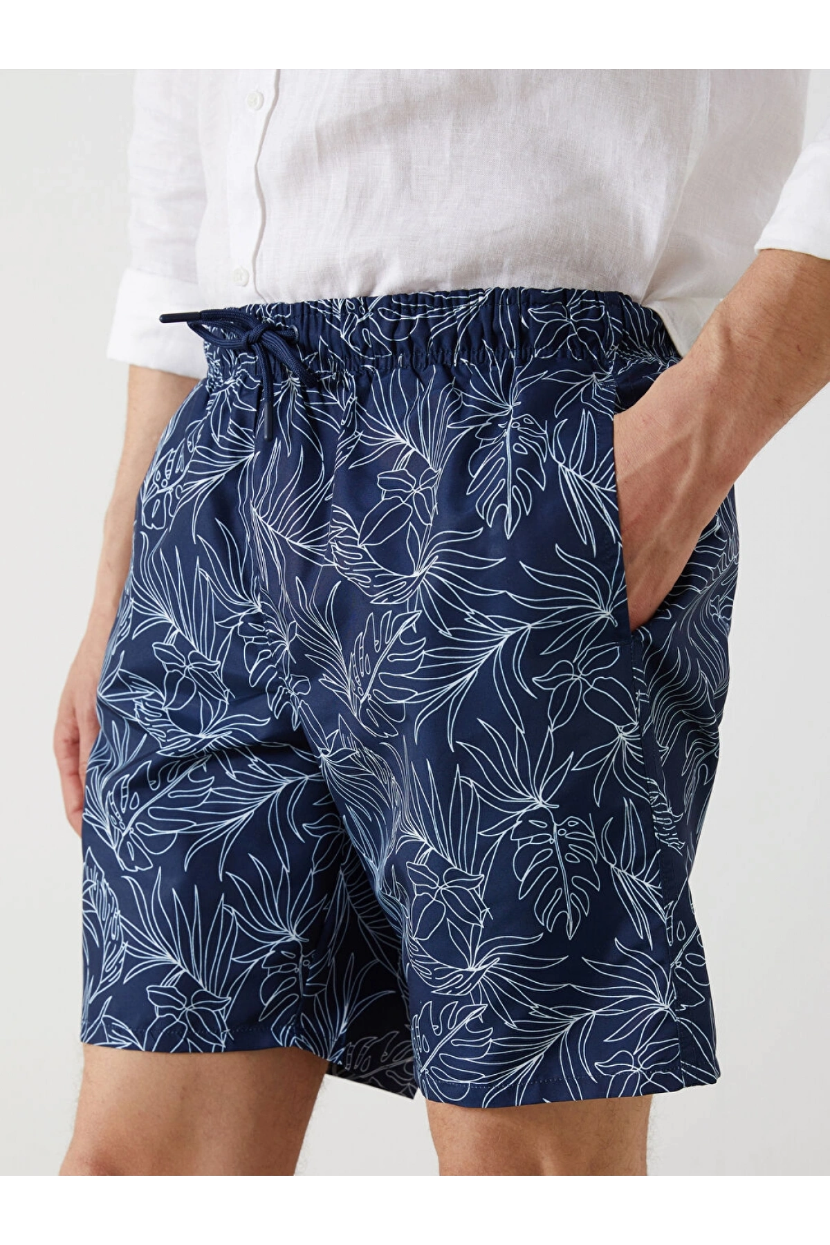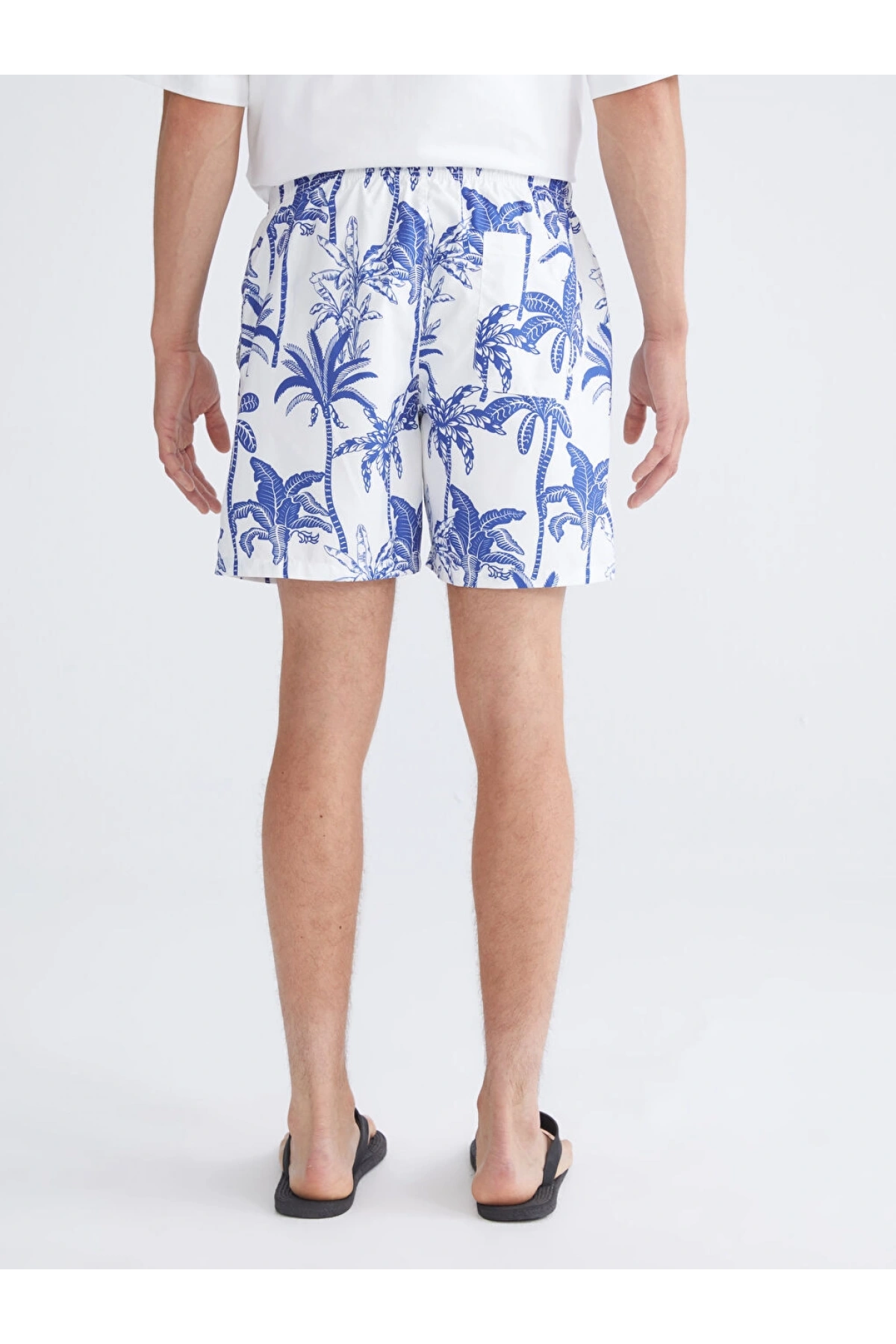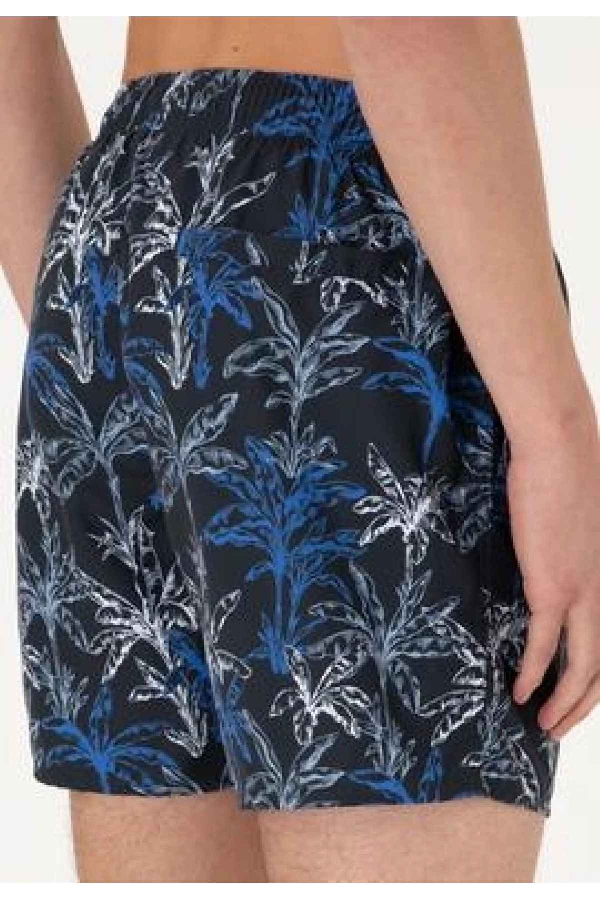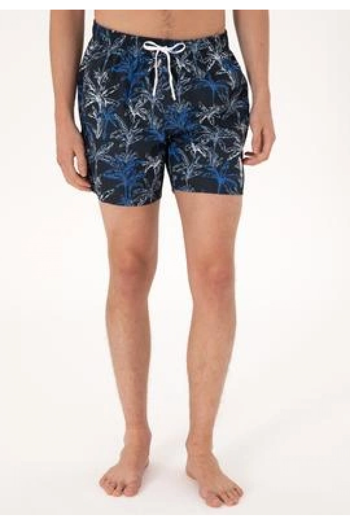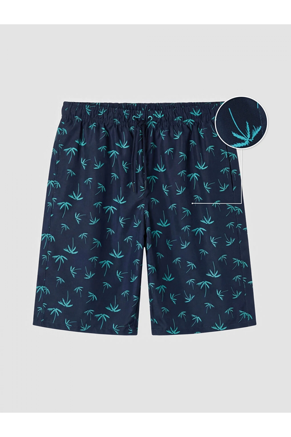 LCW Lacivert Diz Hizası Boy Palmiye Desenli Erkek Deniz Şortu