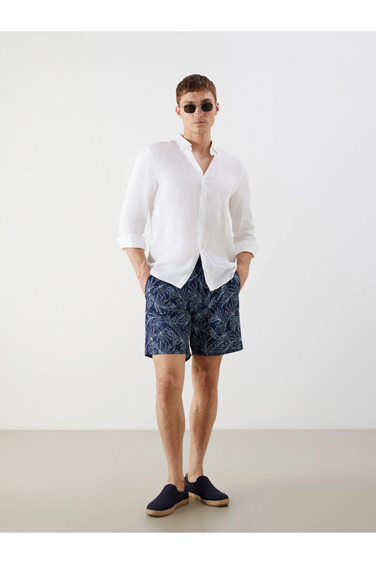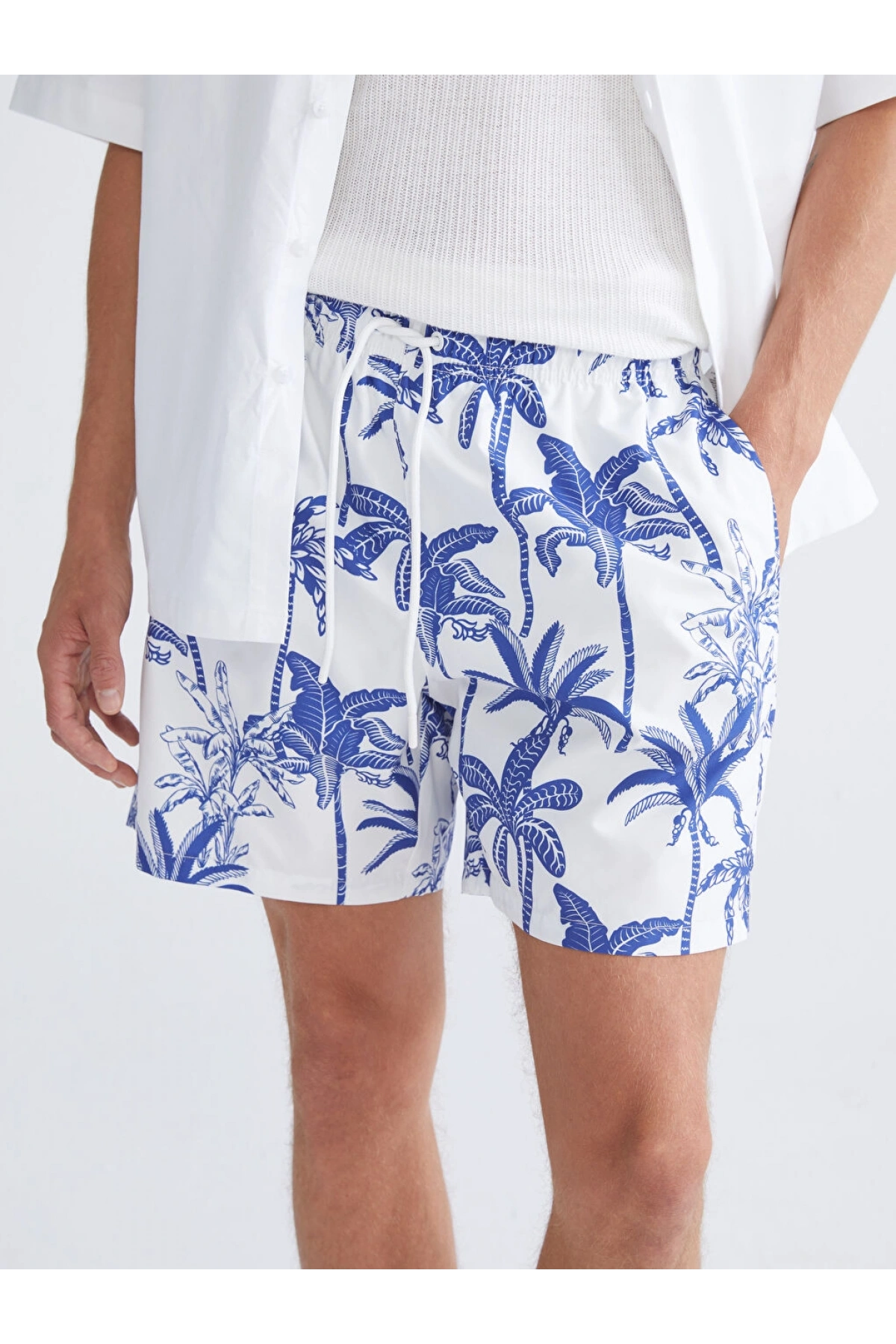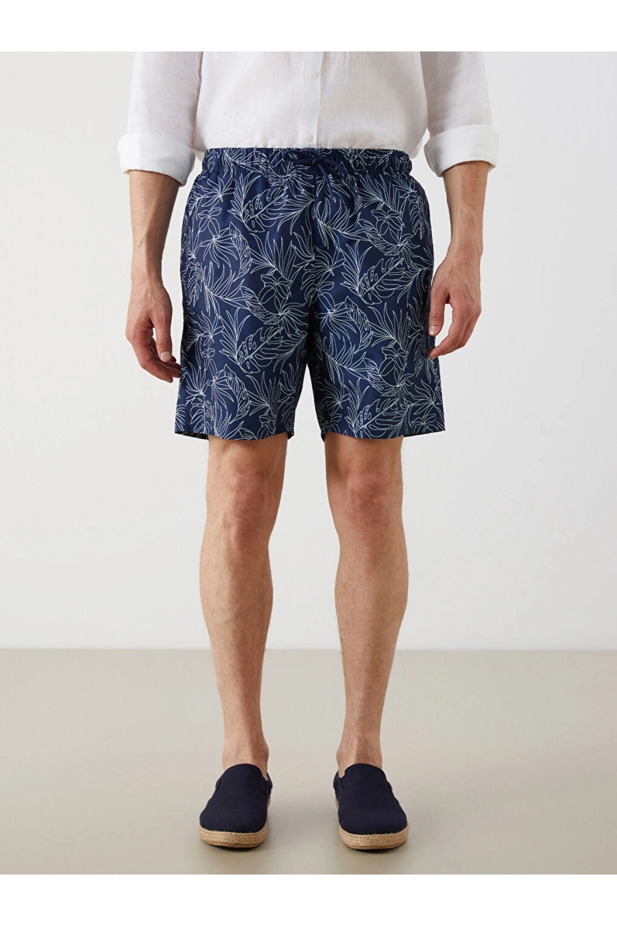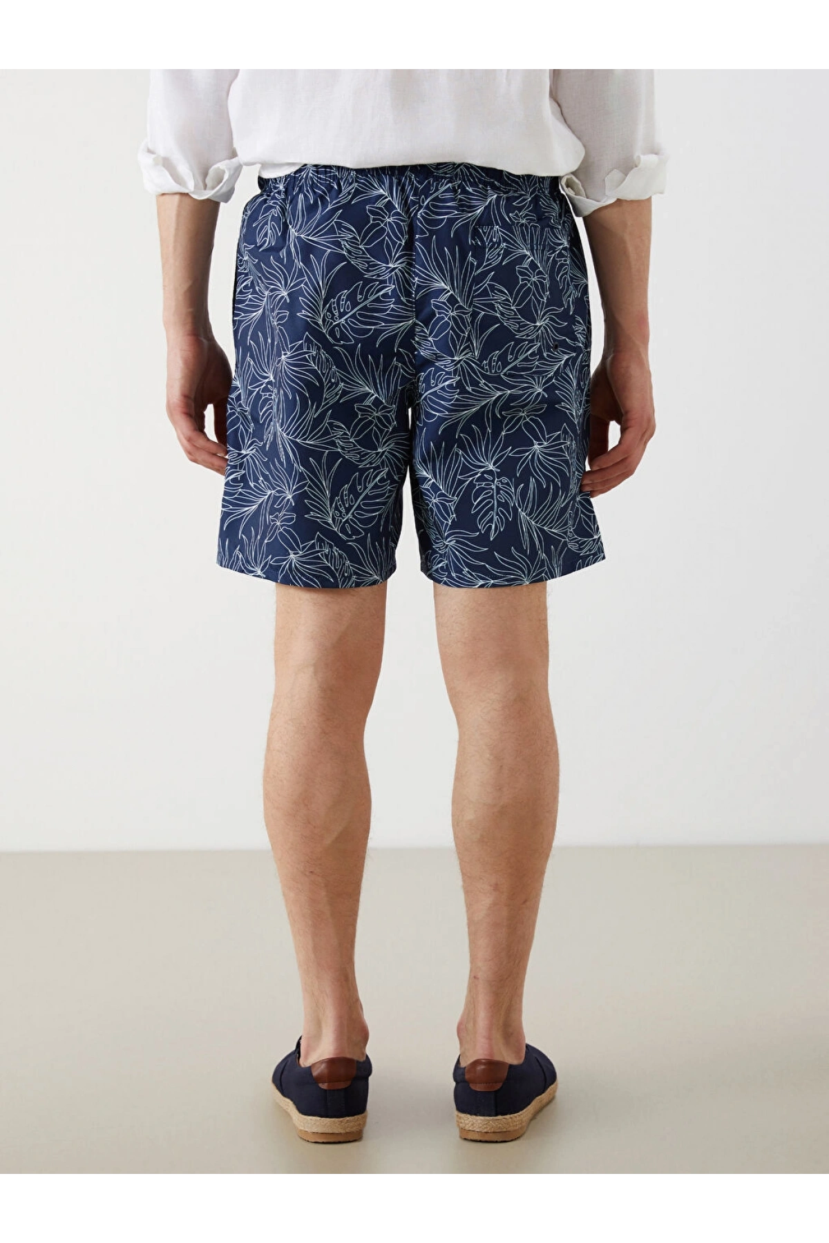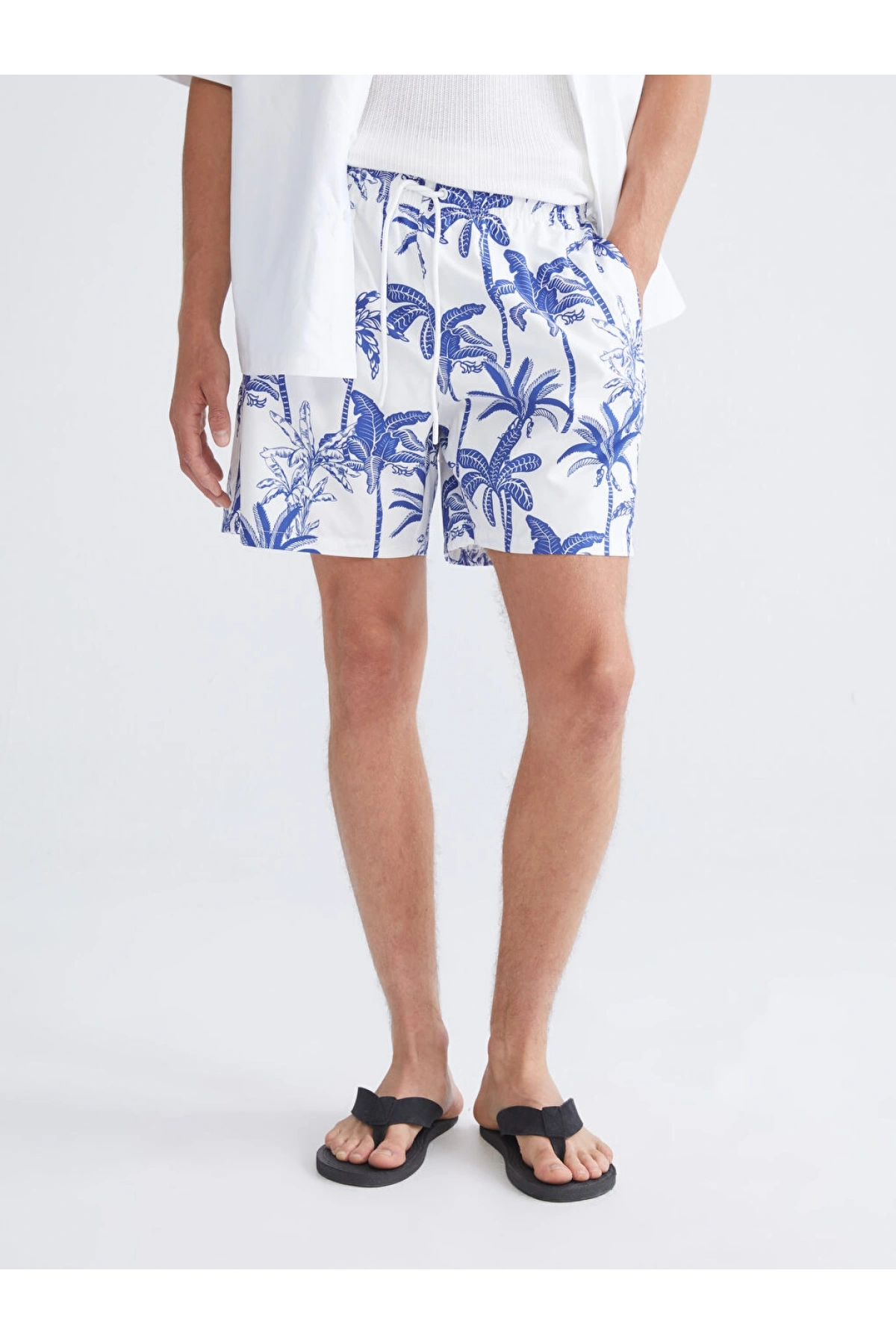LCW Lacivert Diz Hizası Boy Palmiye Desenli Erkek Deniz Şortu