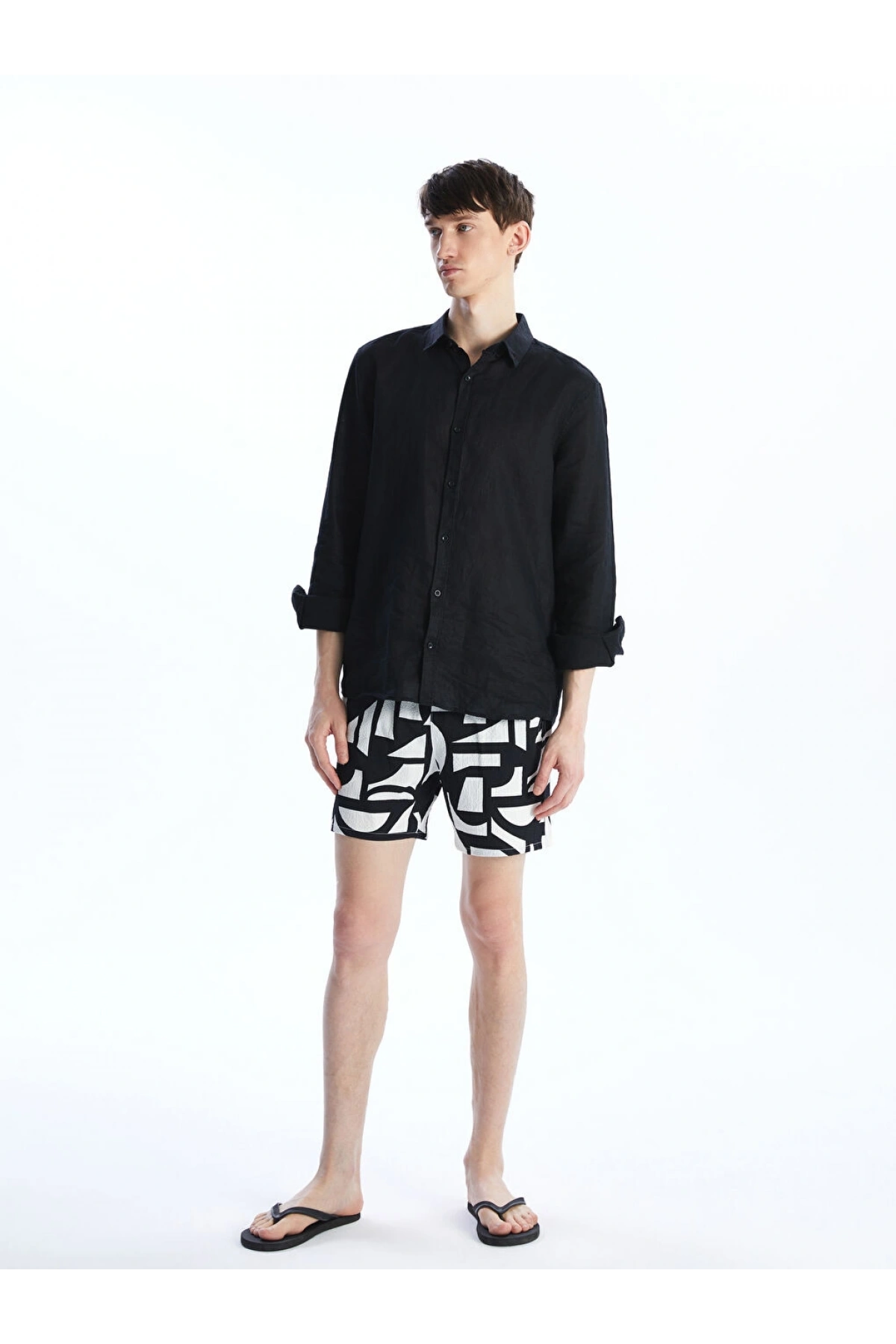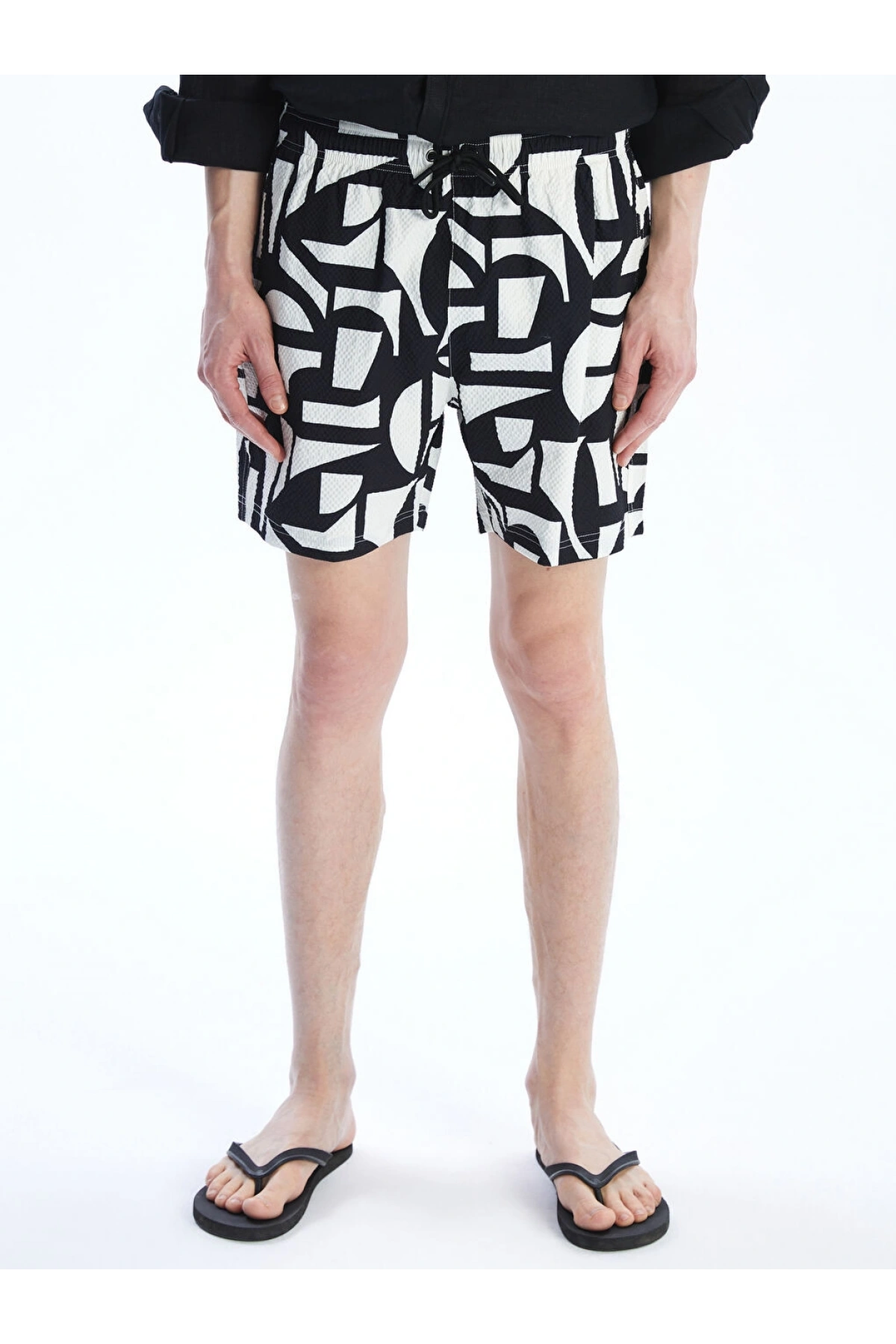 LCW SWIMWEAR Siyah Kısa Boy Desenli Erkek Deniz Şortu