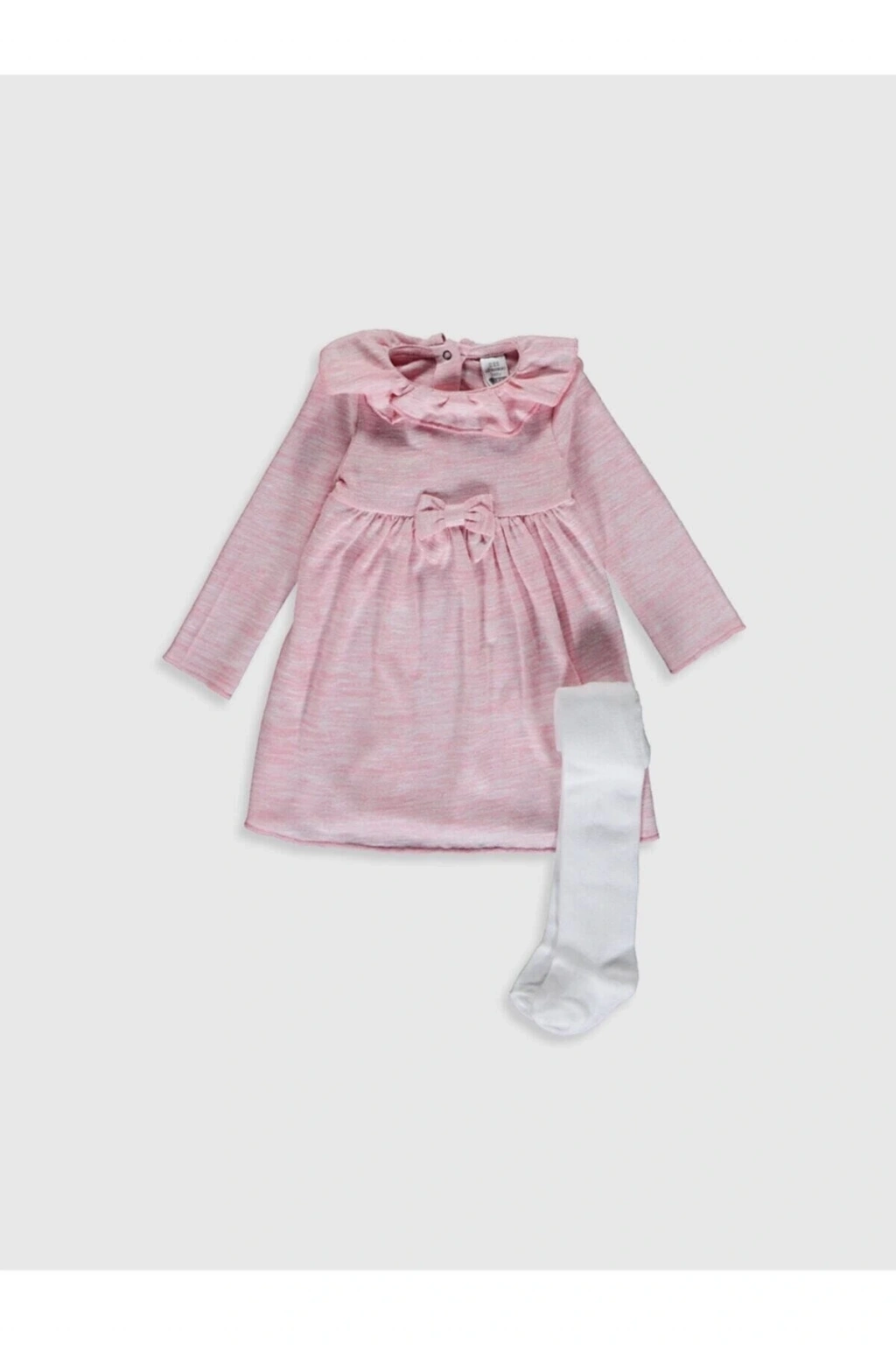 LCW Kids Beyaz Bisiklet Yaka Çizgili Kız Çocuk Elbise