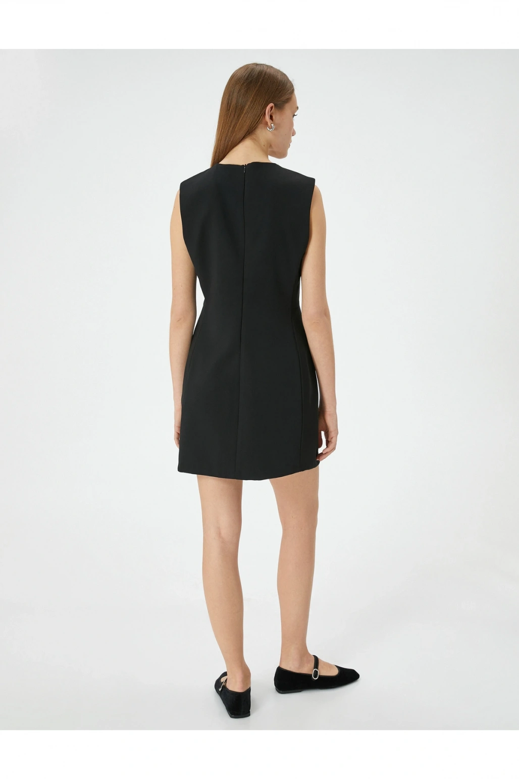 Mini Fırfırlı Elbise V Yaka Kruvaze Balon Kol