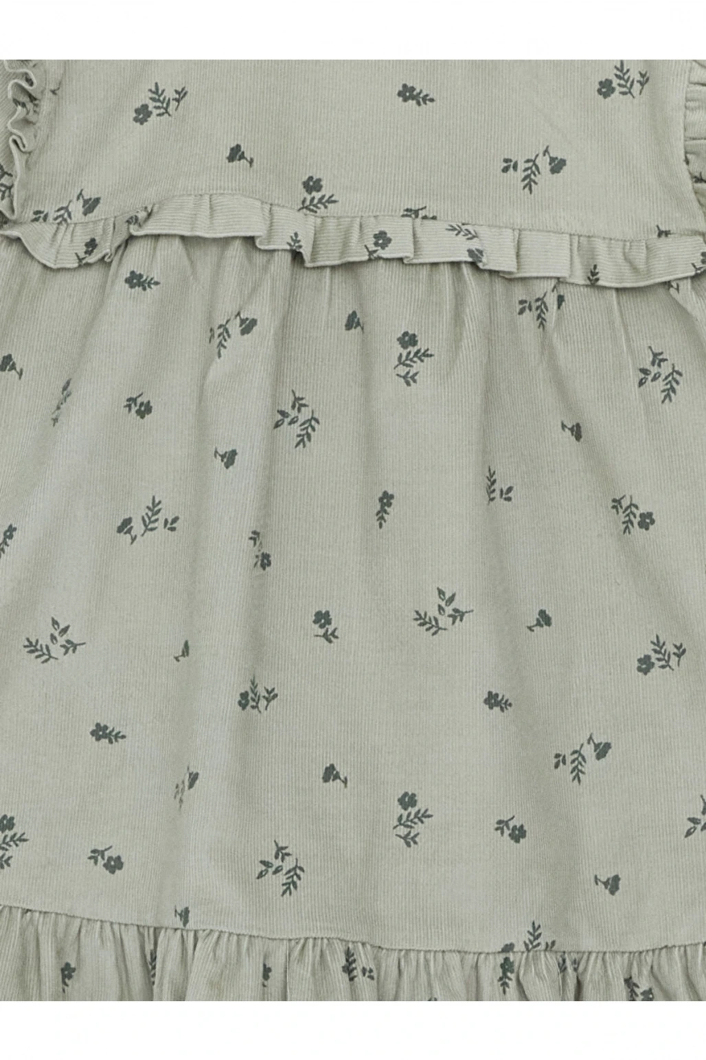Yeşil Bisiklet Yaka Kız Bebek Çiçekli Kadife Elbise