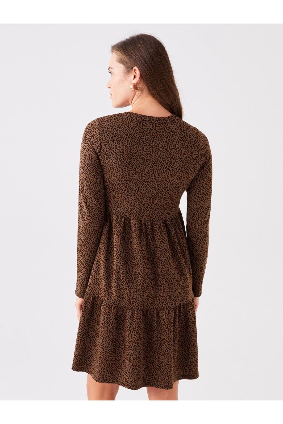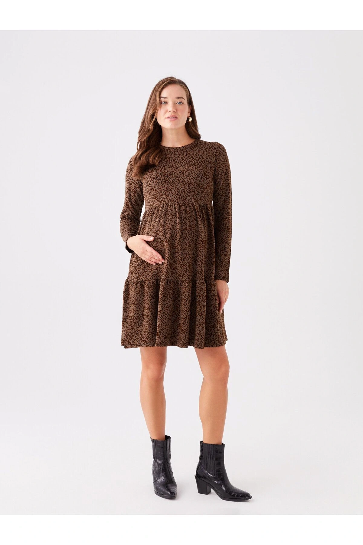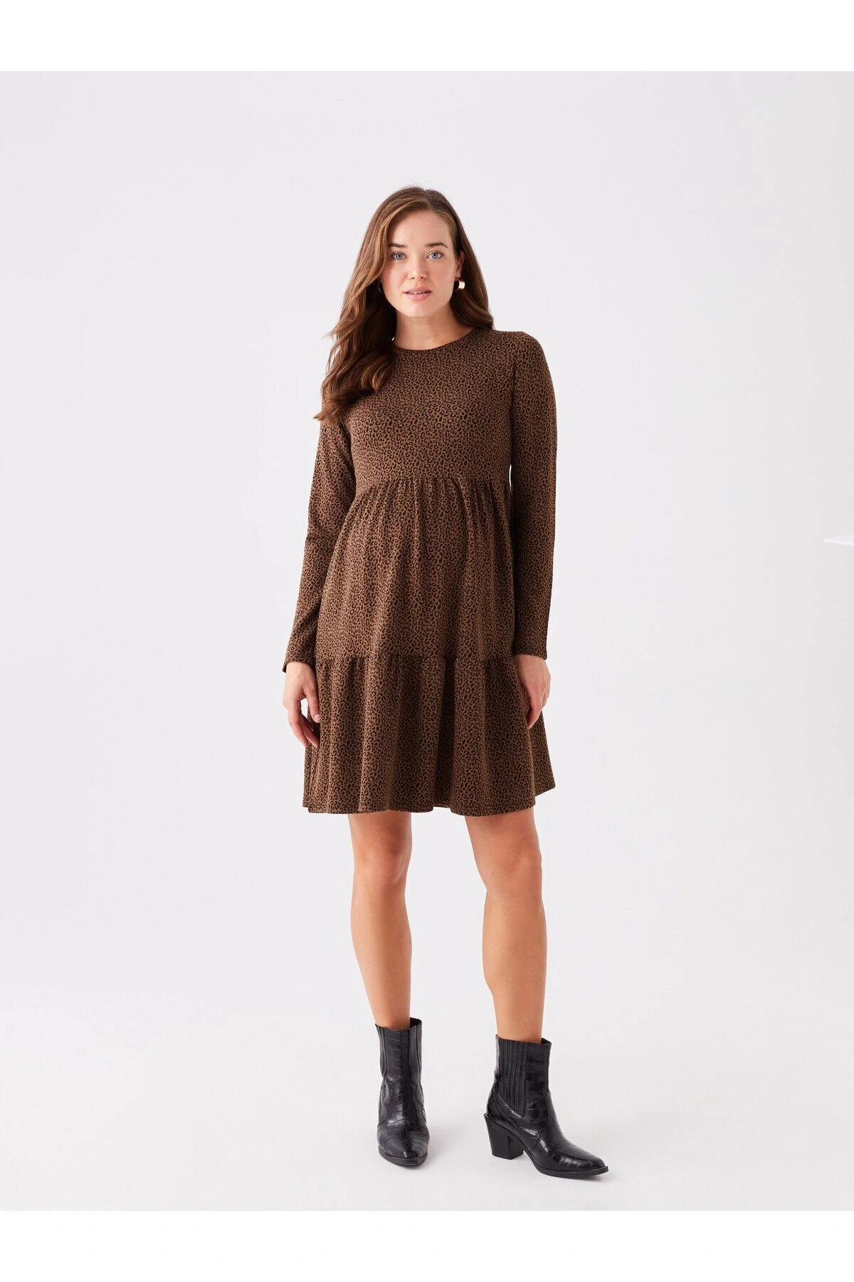 LCWAIKIKI Maternity Bisiklet Yaka Desenli Uzun Kollu Hamile Elbise