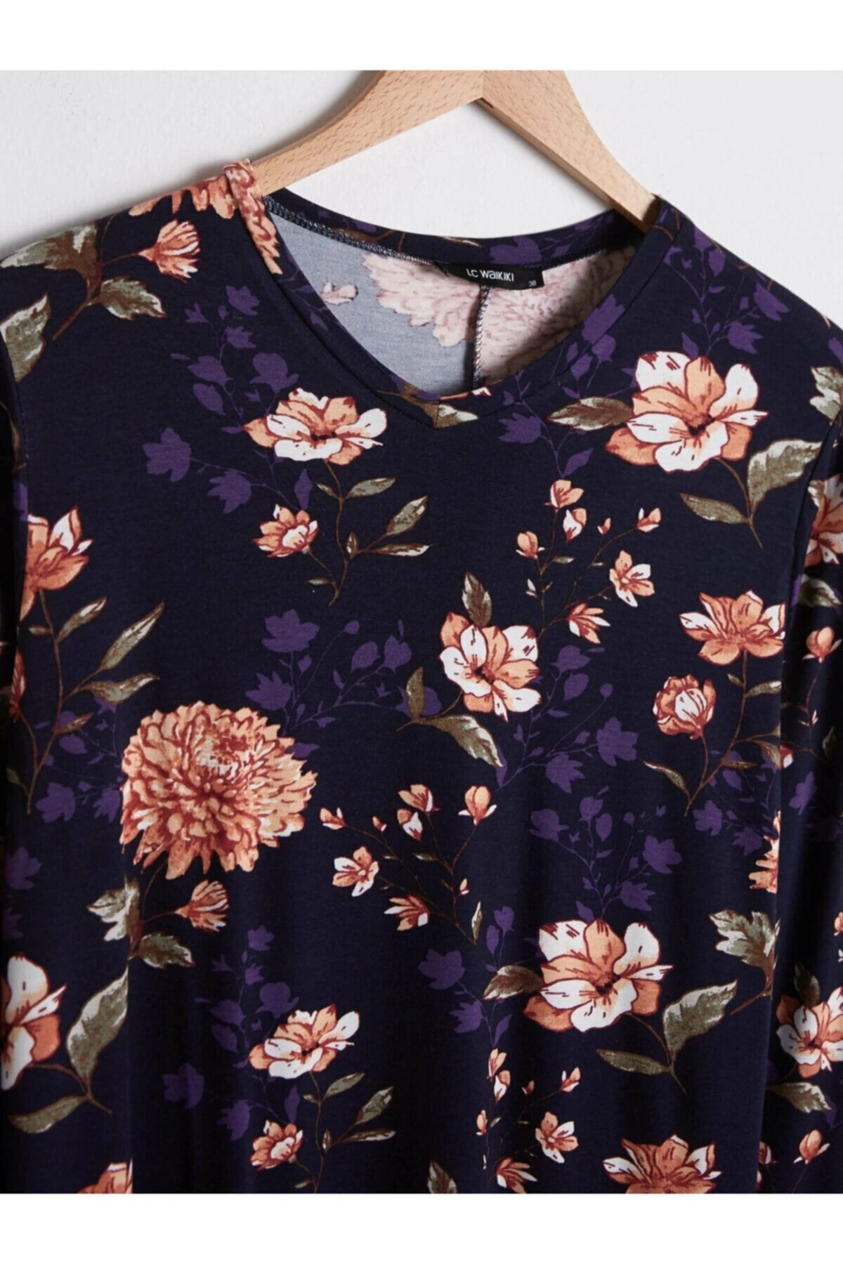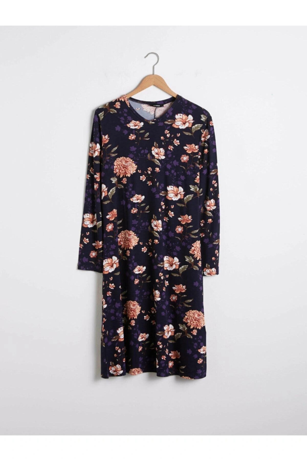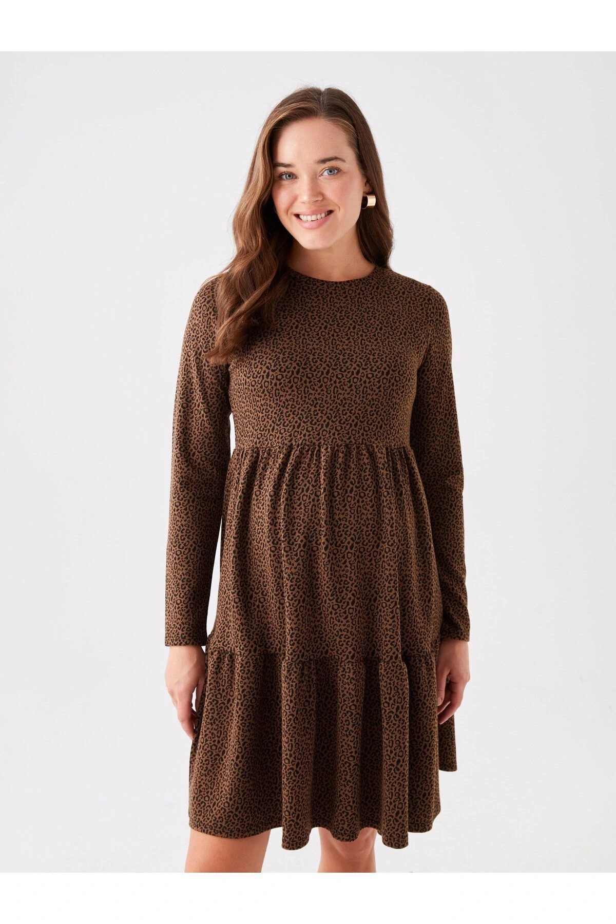 LCWAIKIKI Maternity Bisiklet Yaka Desenli Uzun Kollu Hamile Elbise