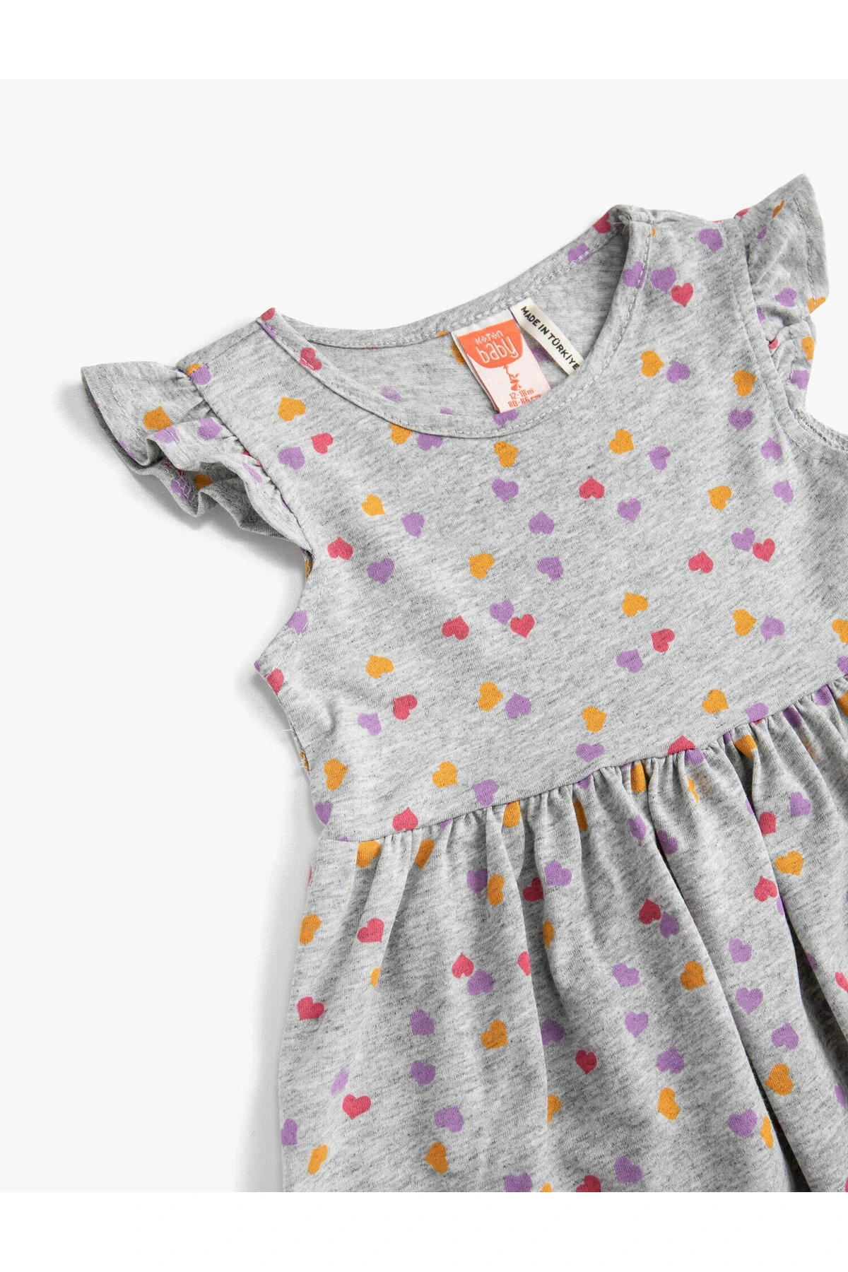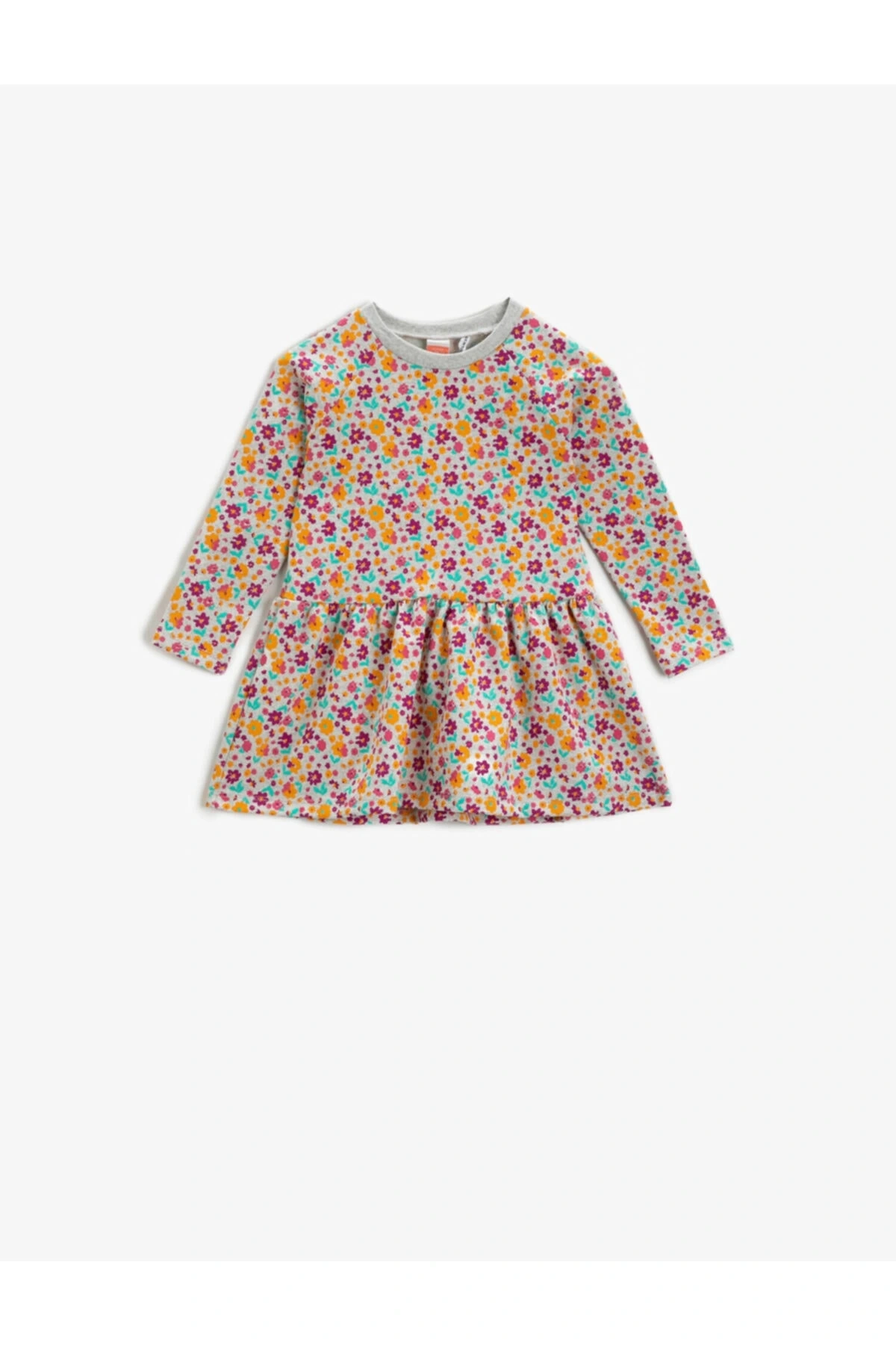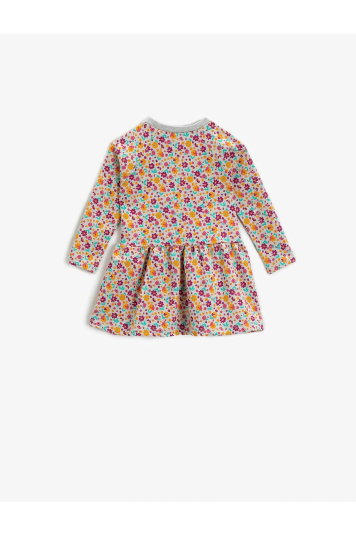 Kız Bebek Gri Desenli Çiçek Desenli Elbise