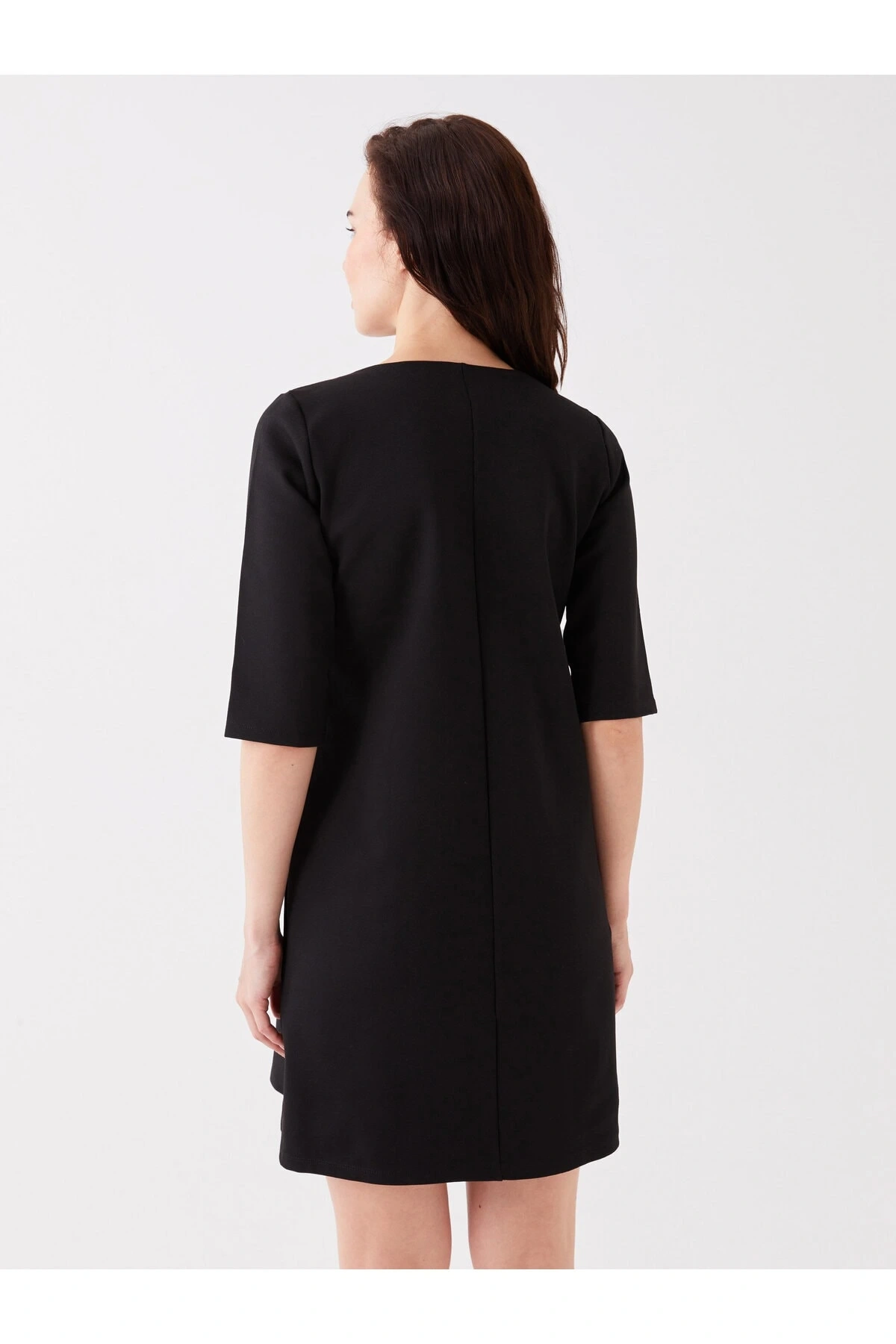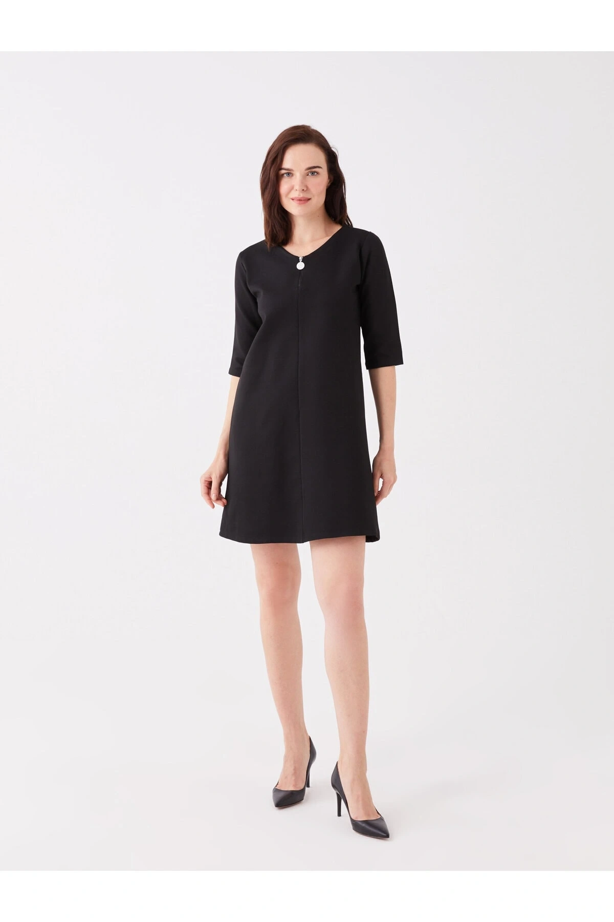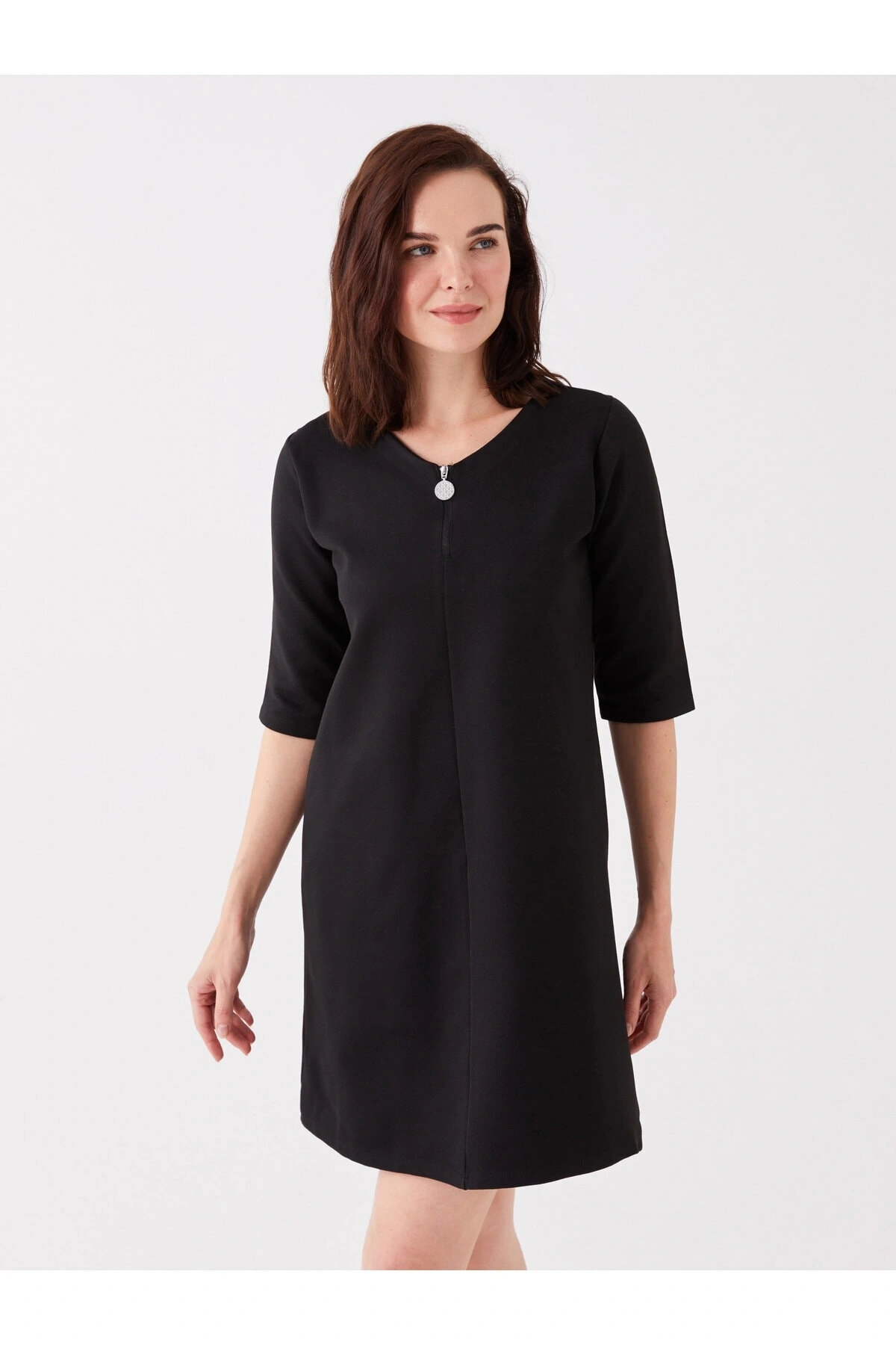 V Yaka Düz Kısa Kollu Kadın Elbise