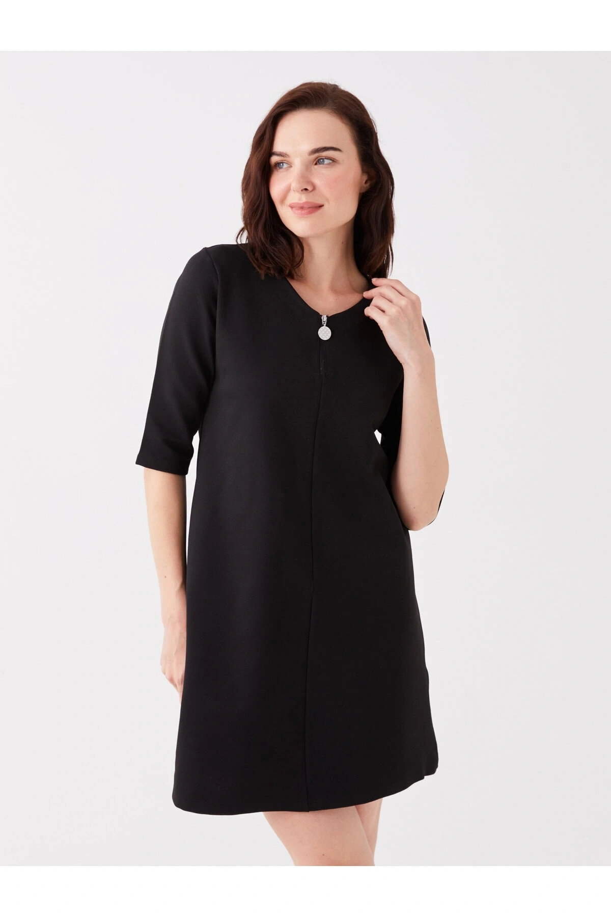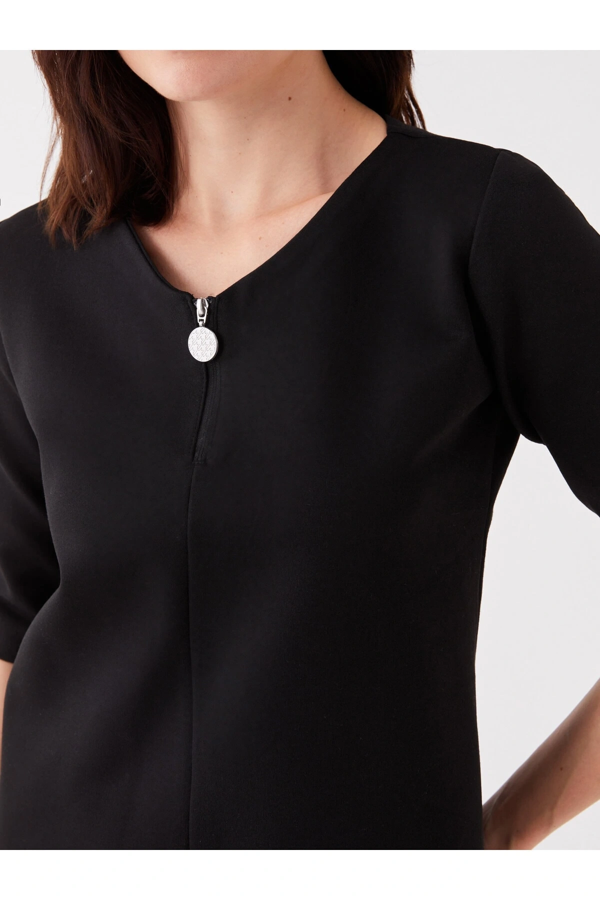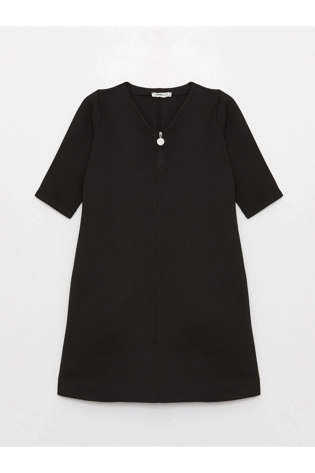V Yaka Düz Kısa Kollu Kadın Elbise