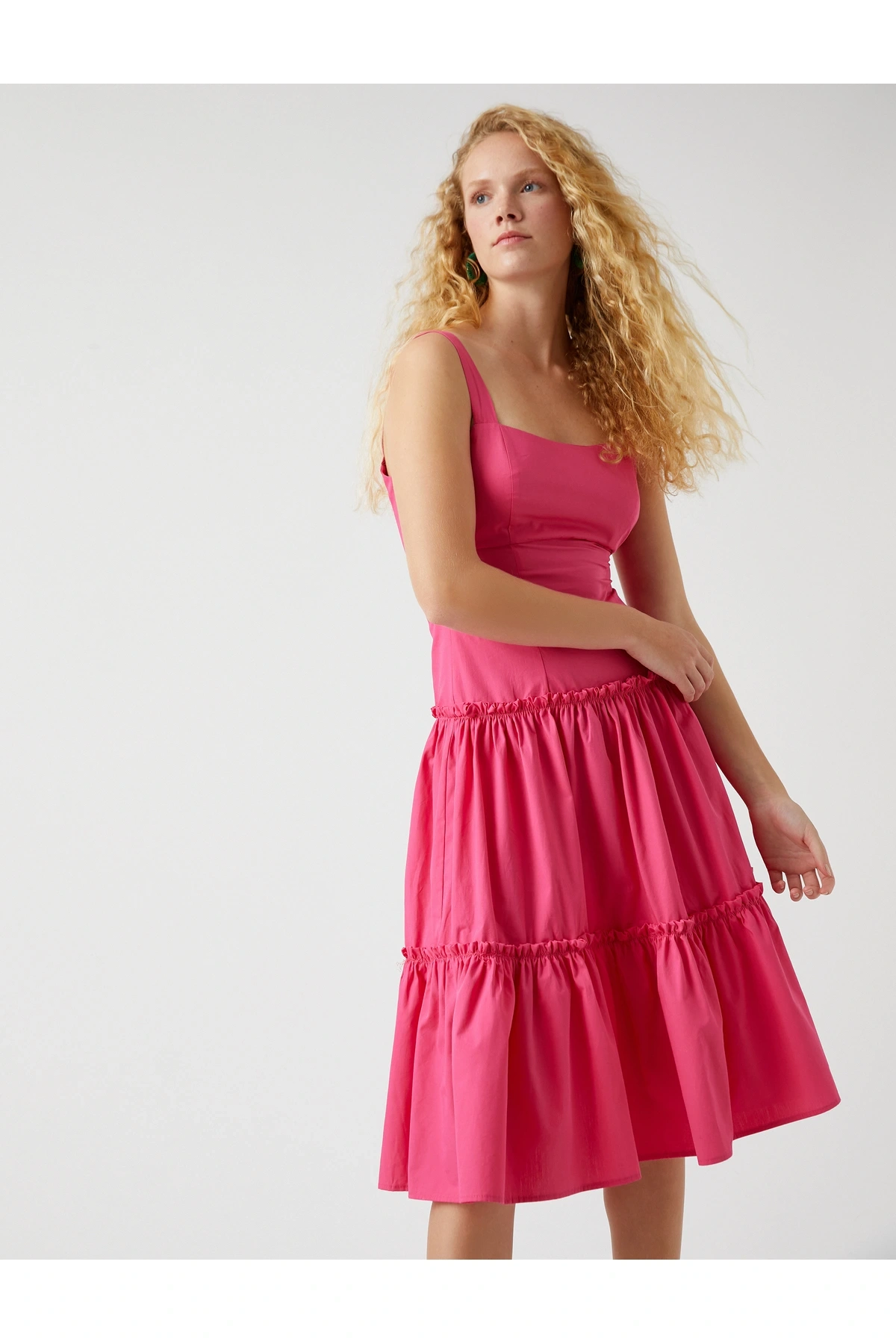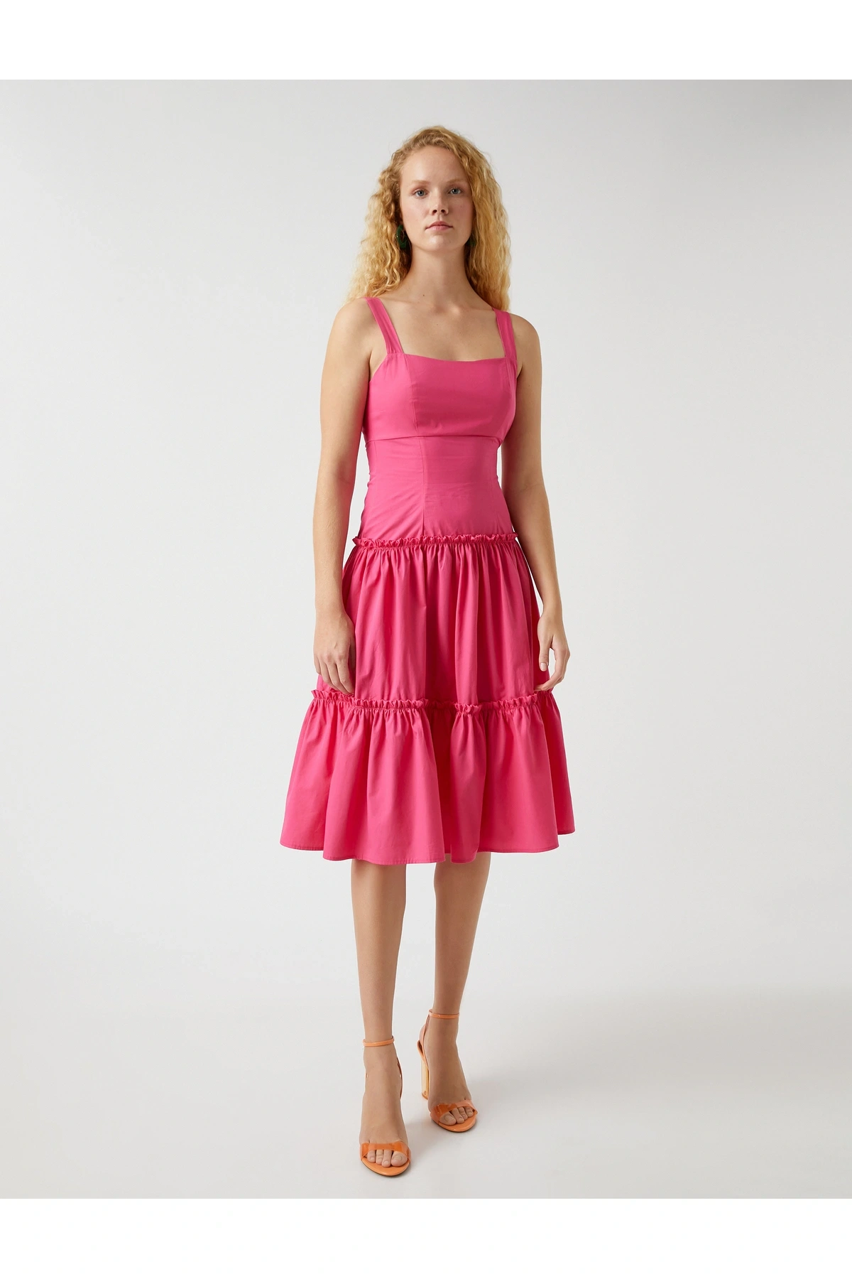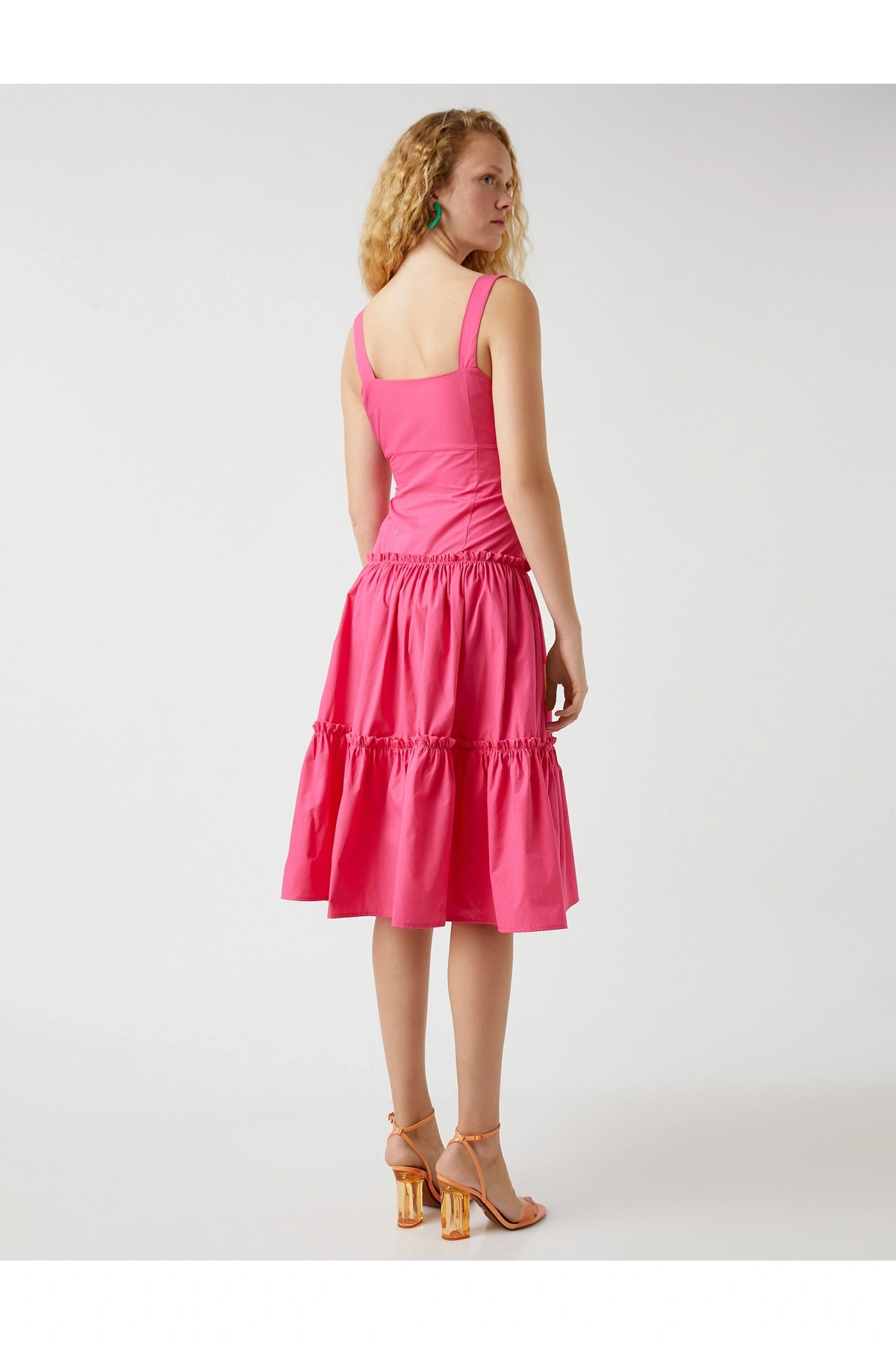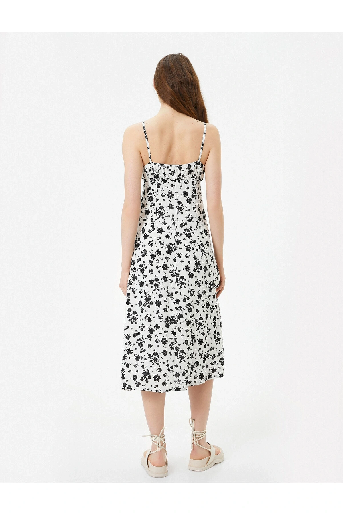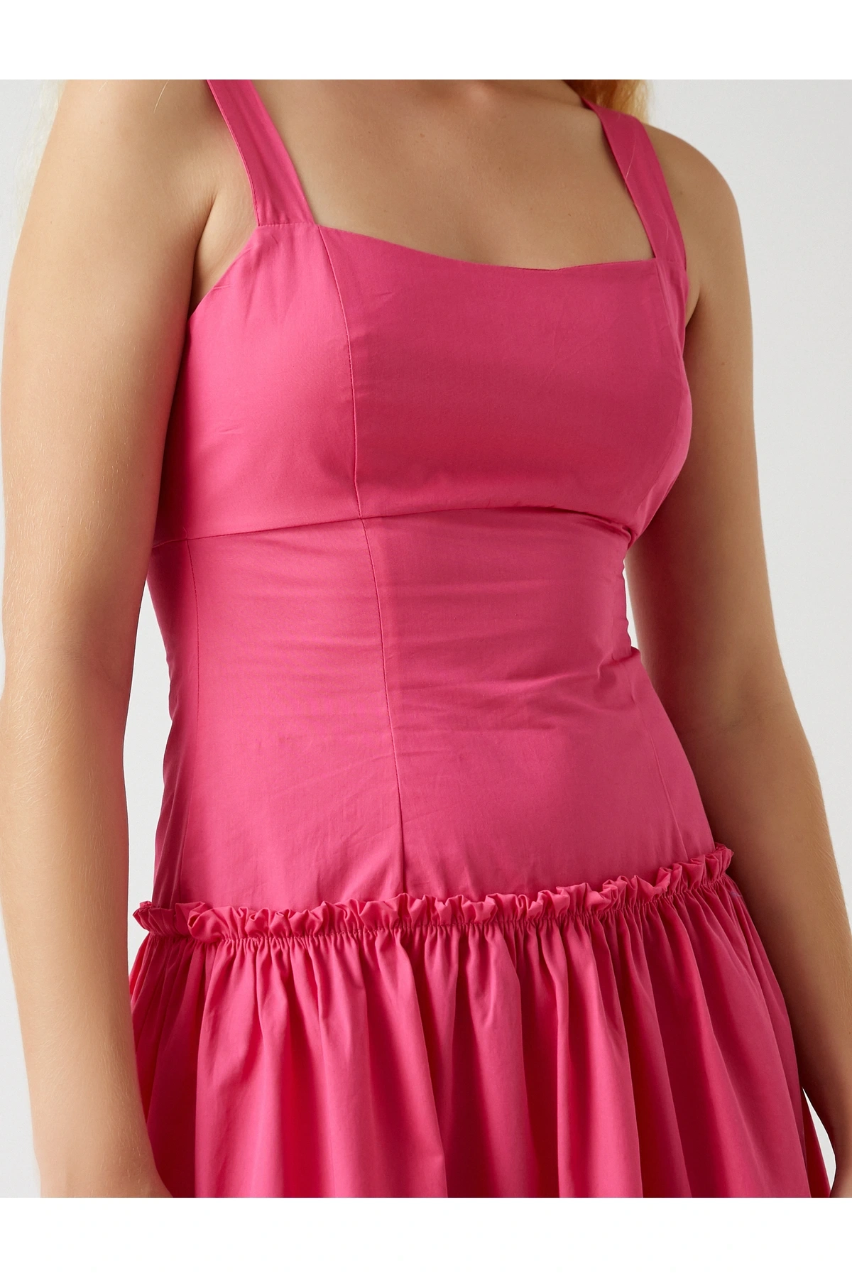 Askılı Fırfırlı Midi Boy Elbise