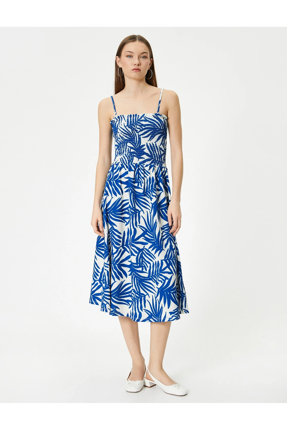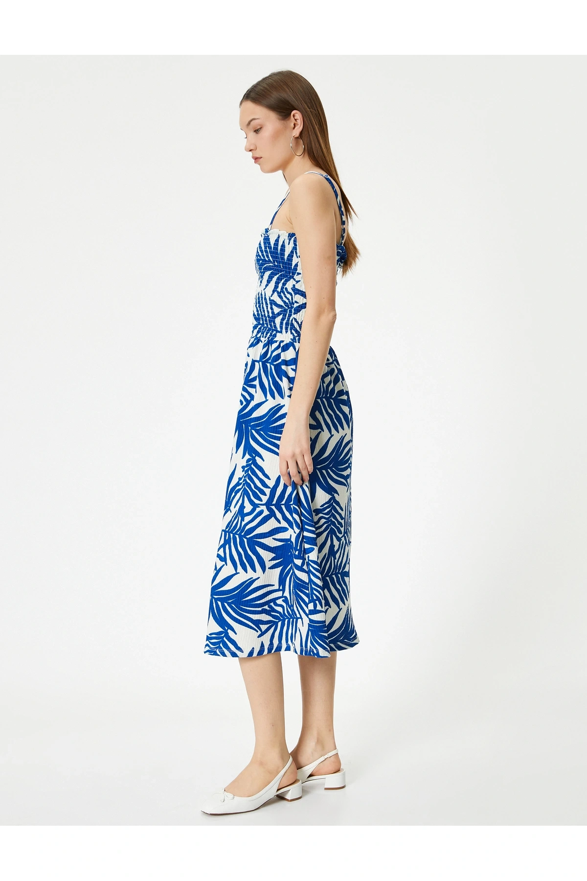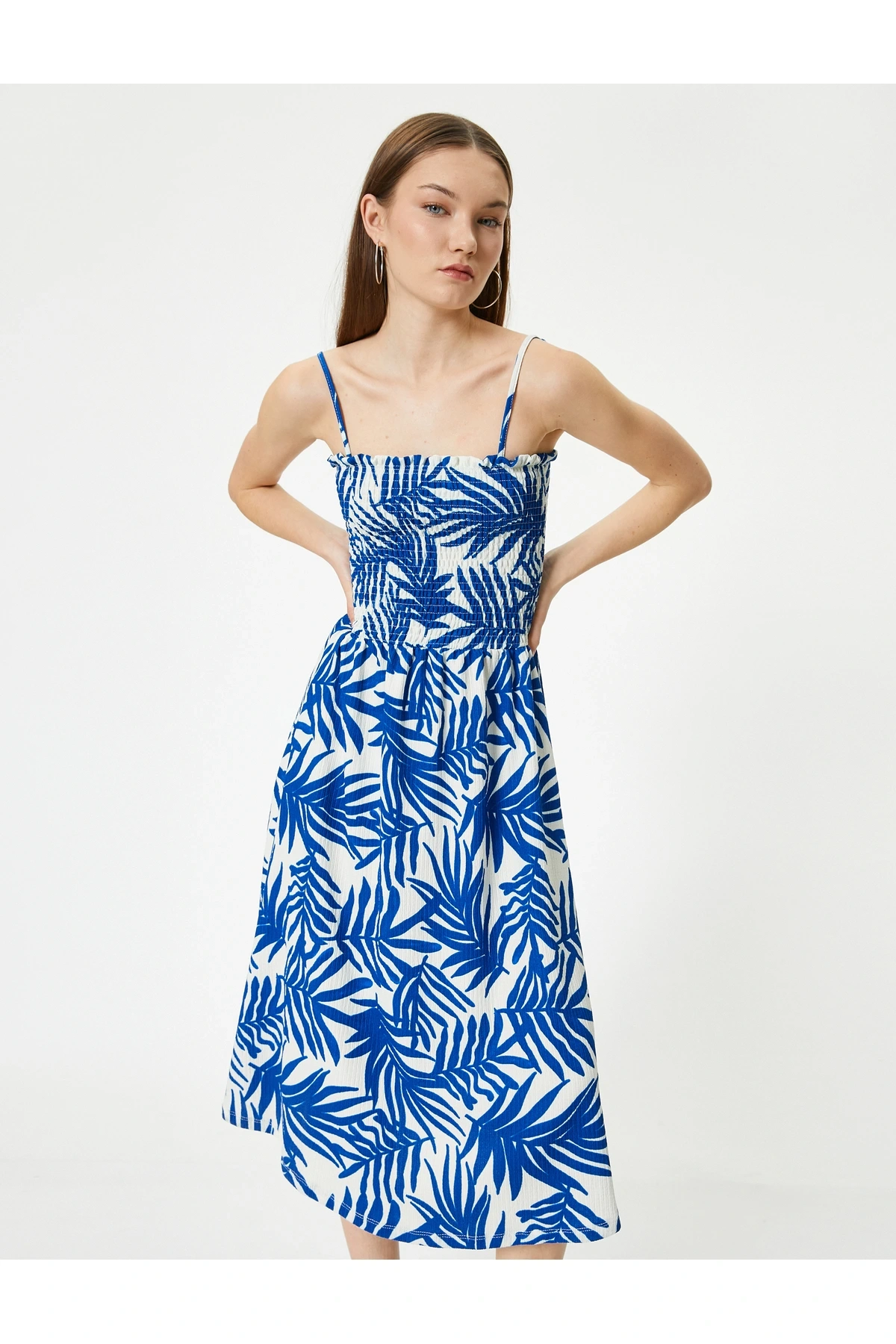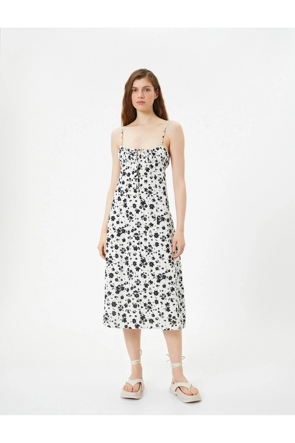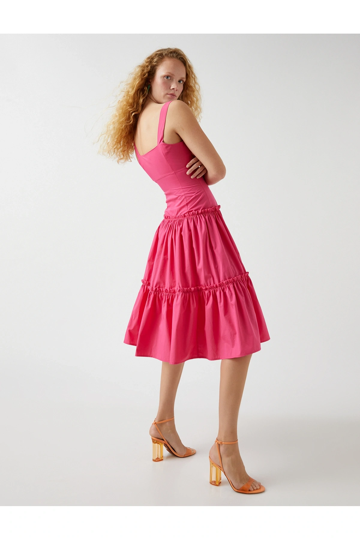 Askılı Fırfırlı Midi Boy Elbise