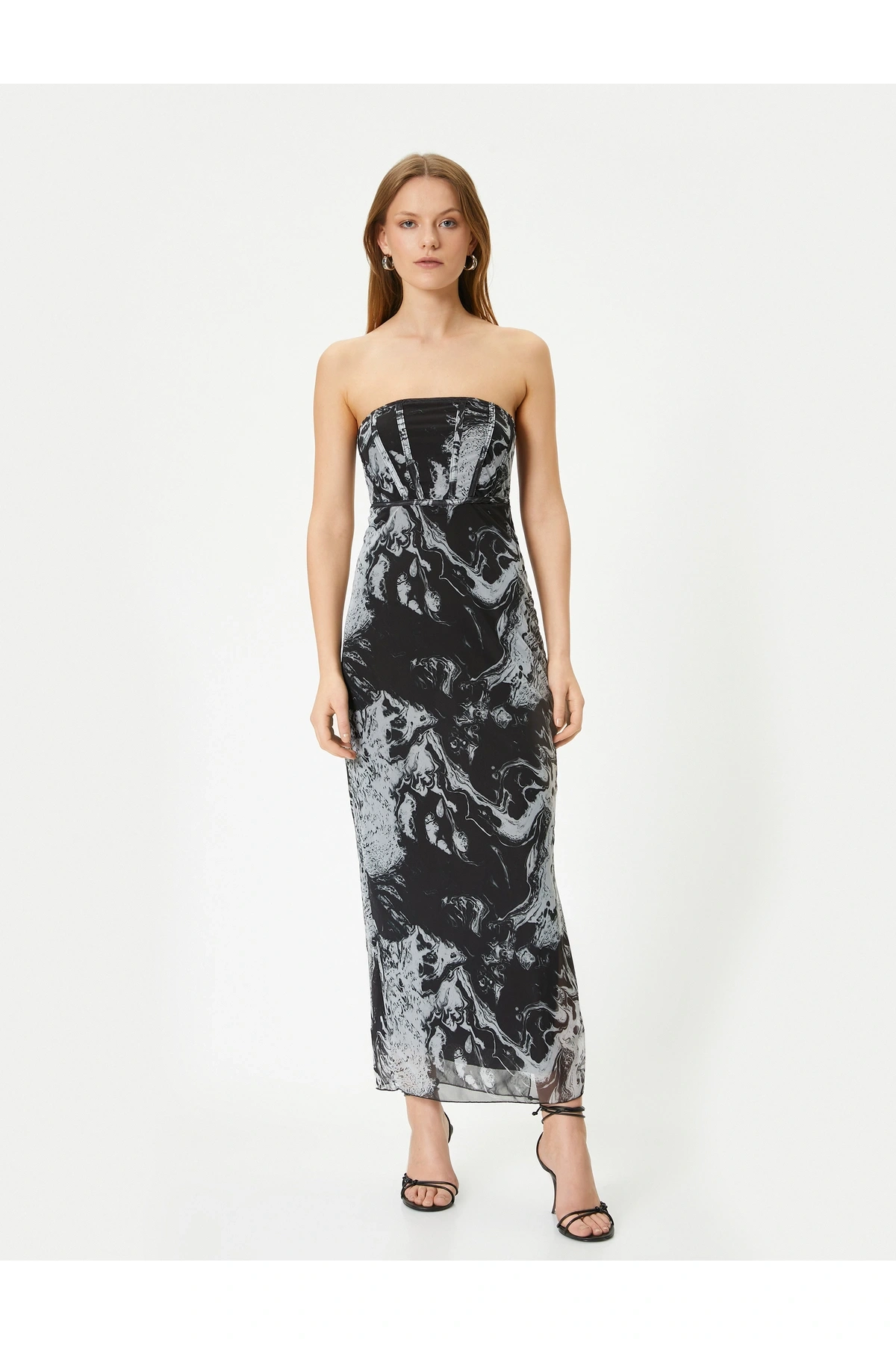 Straplez Midi Elbise Korse Detaylı