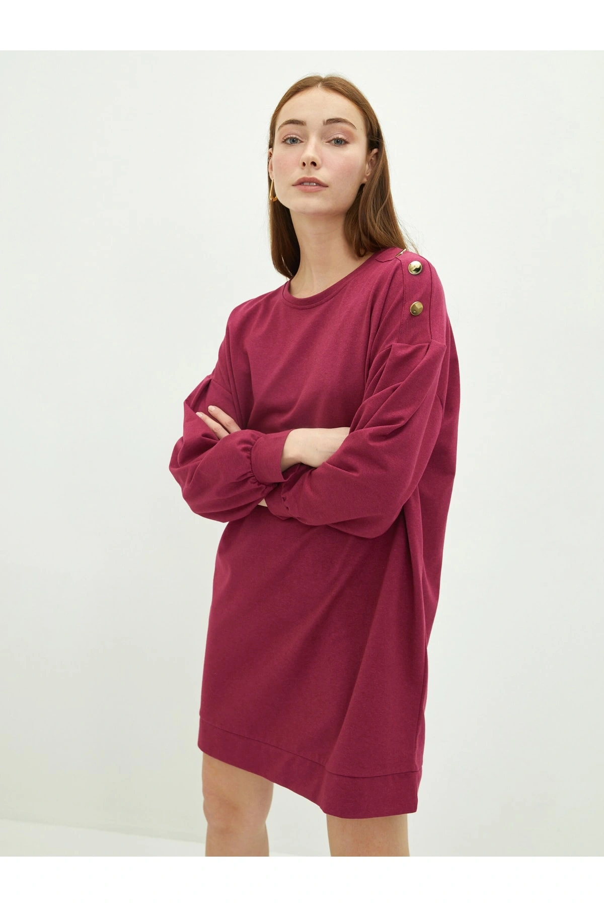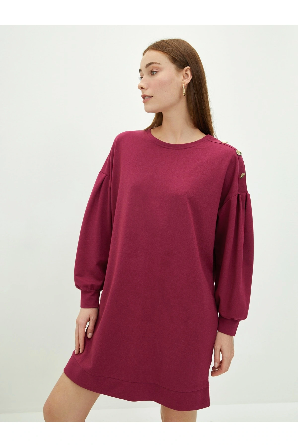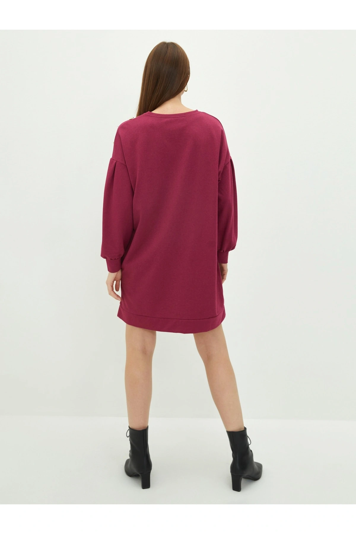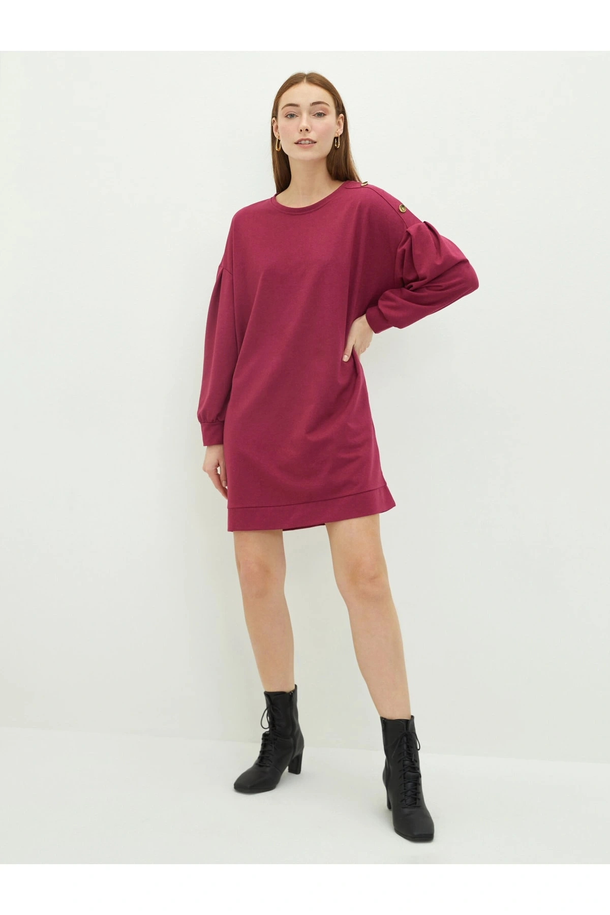 Bisiklet Yaka Düz Uzun Kollu Kadın Elbise