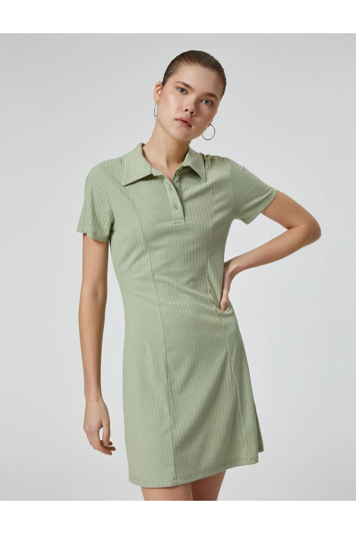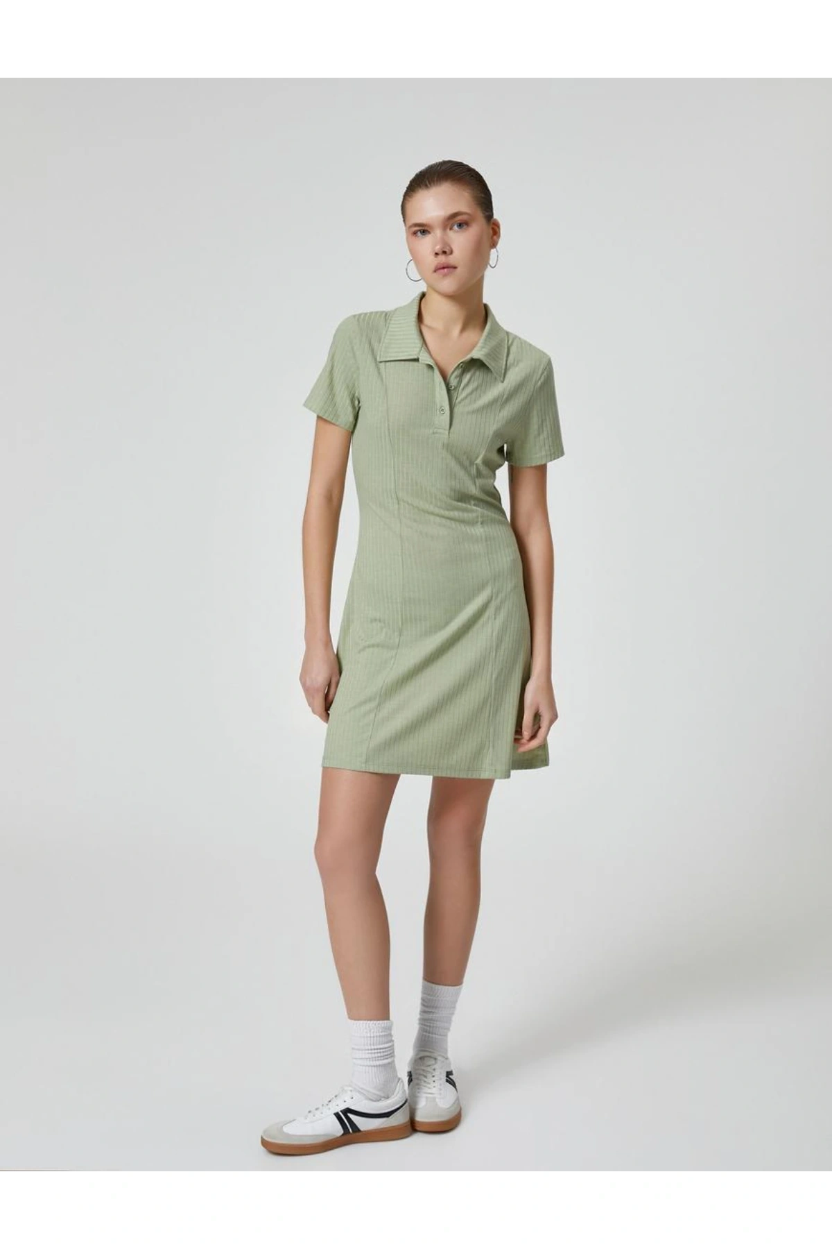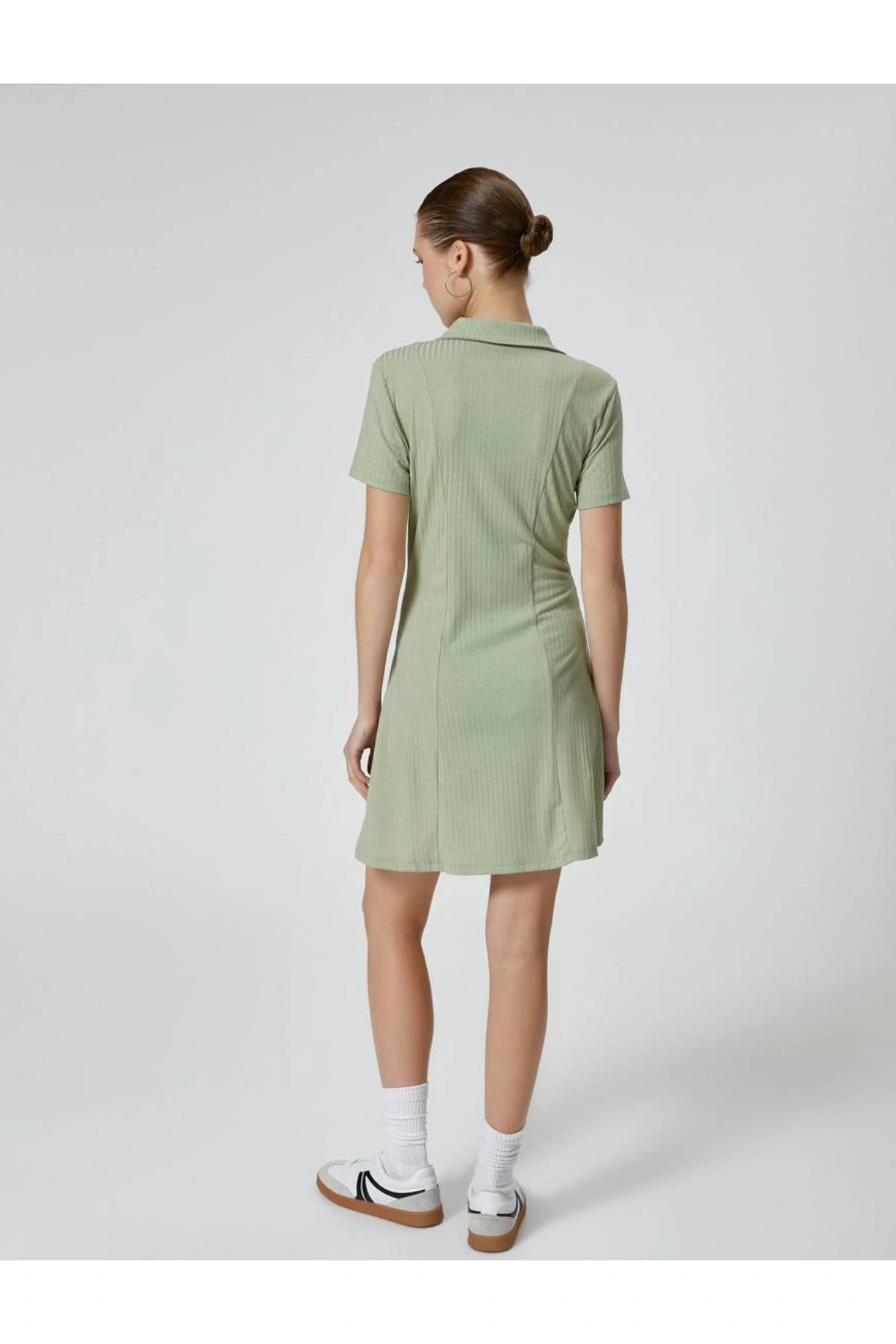 Polo Yaka Mini Elbise A Kesim Kısa Kollu Ribanalı