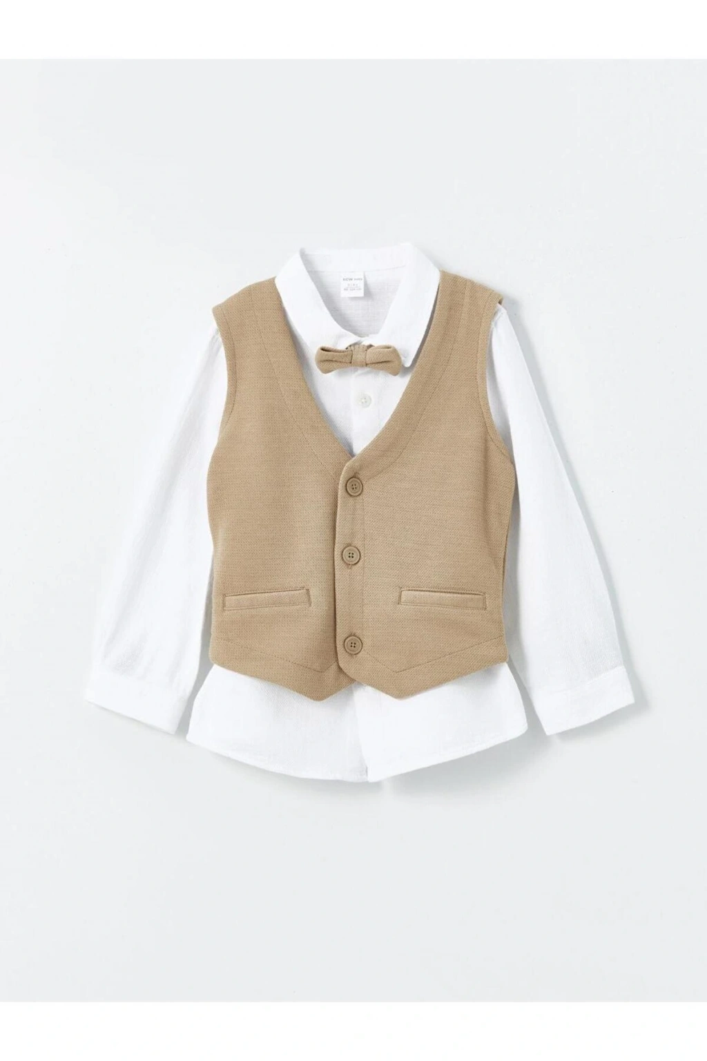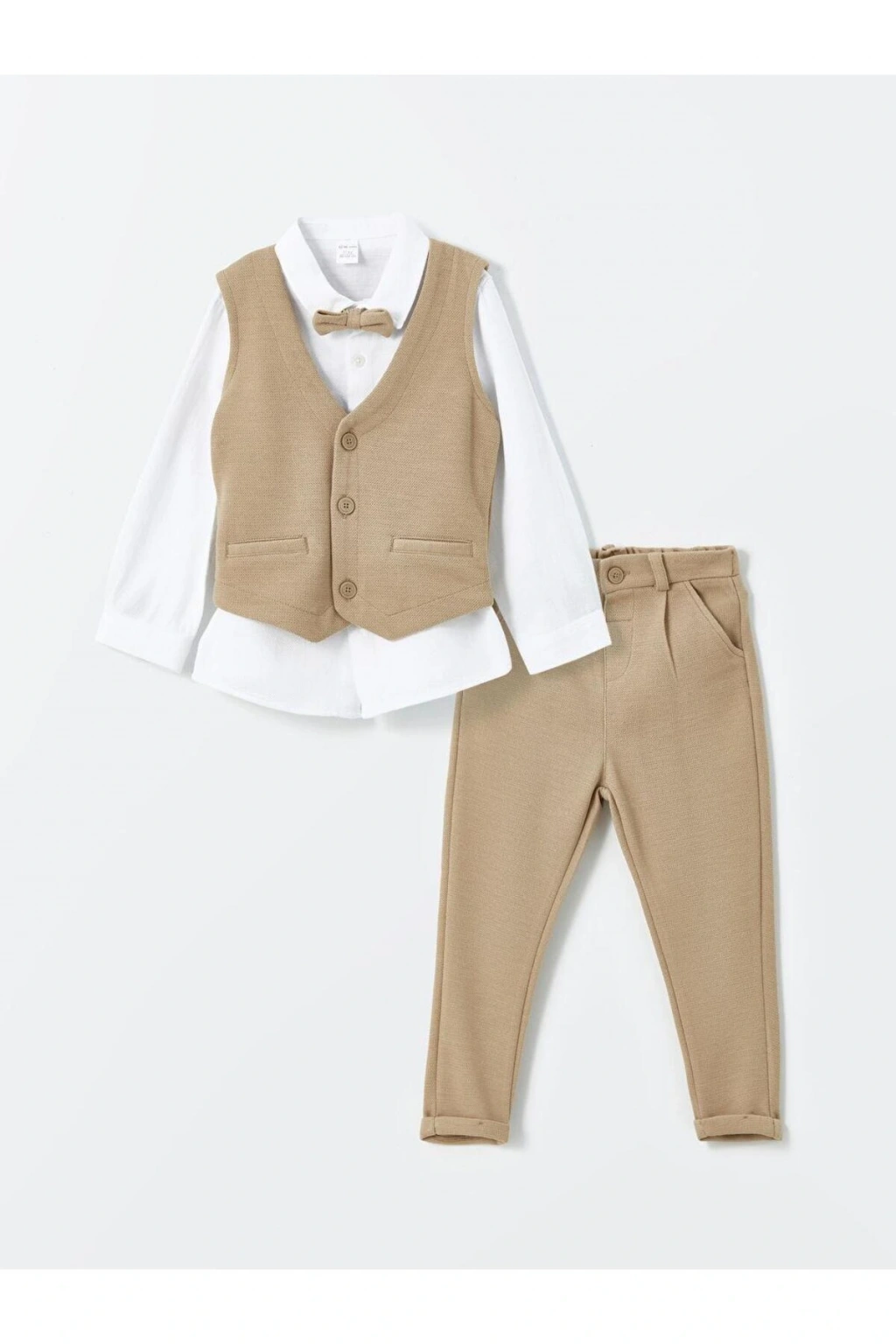 Ürün Açıklaması Bu erkek bebek için özel olarak tasarlanmış 4'lü takım, %100 pamuklu kumaşı sayesinde şıklığı ve konforu bir arada sunar.; Set; bir gömlek, bir pantolon ve bir yelekten oluşurken, şıklığı tamamlayan bir papyon aksesuarı ile birlikte gelir.; Ürün İçeriği ve Özellikleri Ürün İçeriği: 2.Kumaş Gömlek: %29 VİSKOZ %71 Polyester Ana Kumaş Gömlek: %100 Pamuk Ana Kumaş Pantolon: %29 VİSKOZ %71 Polyester Ana Kumaş Yelek: %29 VİSKOZ %71 Polyester Ürün Özellikleri: Satıcı: LC Waikiki Marka: LCW Kids Ürün Tipi: Takım Cinsiyet: Erkek Bebek Kalıp: Standart & Regular Desen: Düz Yaka: Gömlek Yaka Kol Boyu: Uzun Kollu Paket İçeriği: 3'lü Paket Ürün Aksesuarı: Papyon Parça Sayısı: 4 Parça