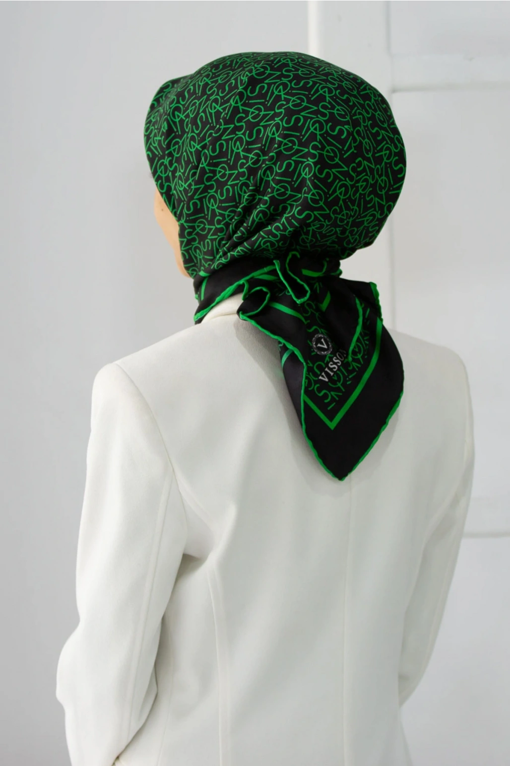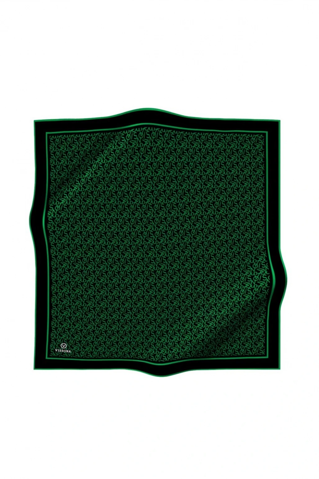 Kristal Batik Çiçek Desenli Zümrüt Yeşili Renkli 90x90 Eşarp (İPEK IÇERMEZ) Kenar Dikiş Şekli El Dik