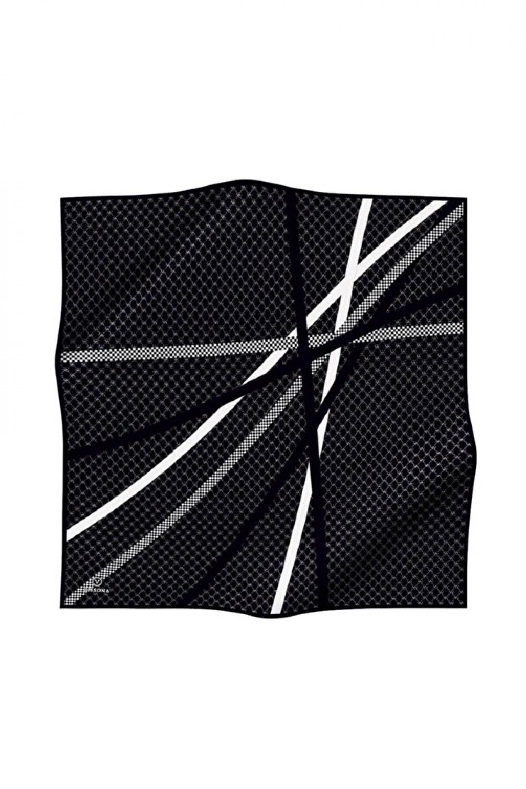 Vissona %100 Twill İpek Monogram Ve Şerit Desenli Siyah - Krem Renkli 90x90 Eşarp Dikim Şekli : El Dikişi