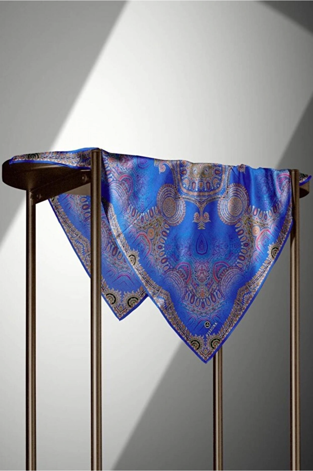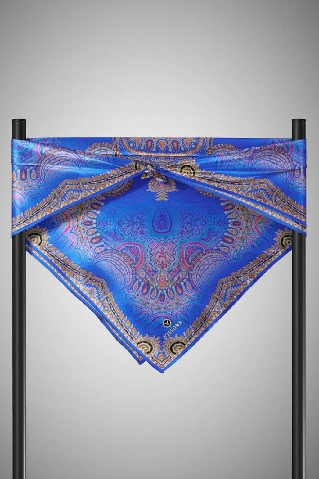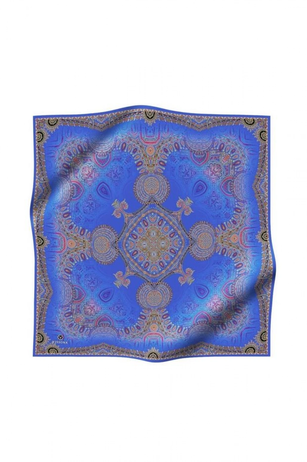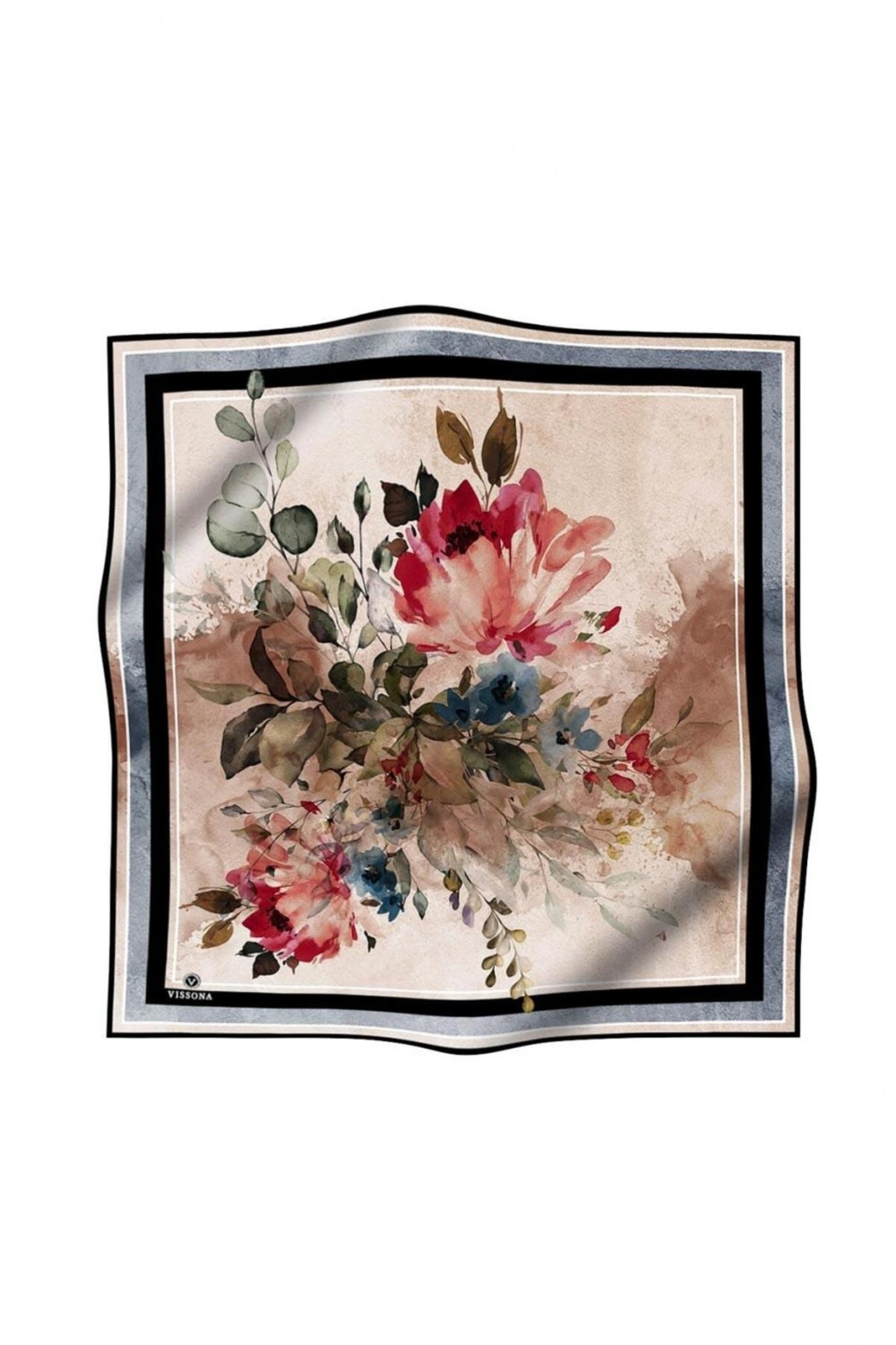 Vissona %100 Twill İpek Şal Desenli Saks Renkli 90x90 Eşarp Dikim Şekli : El Dikişi