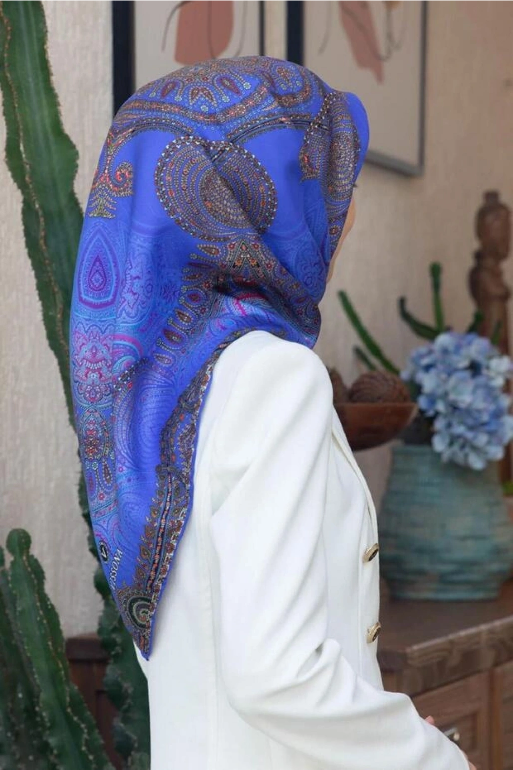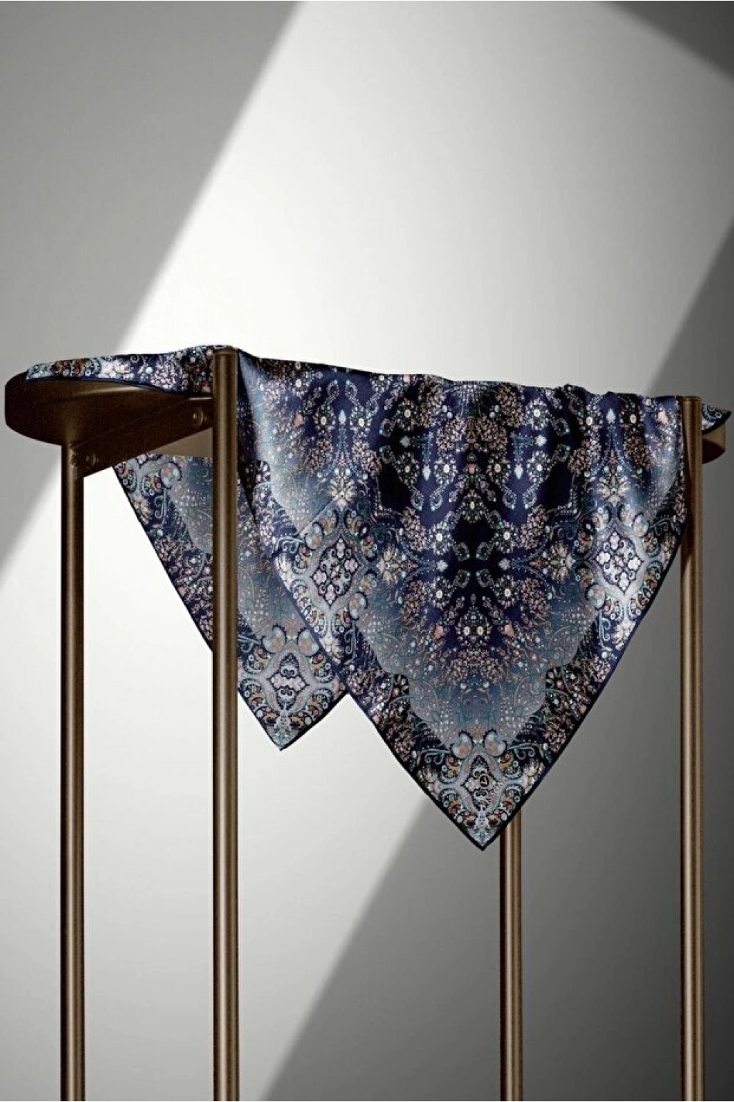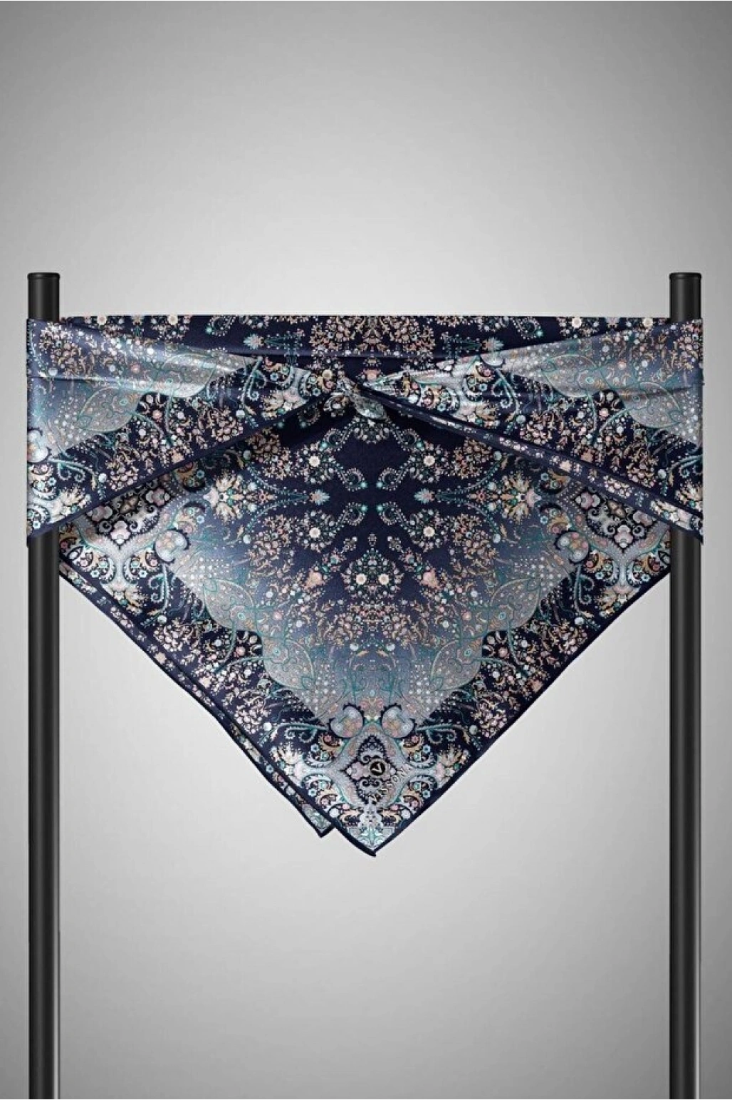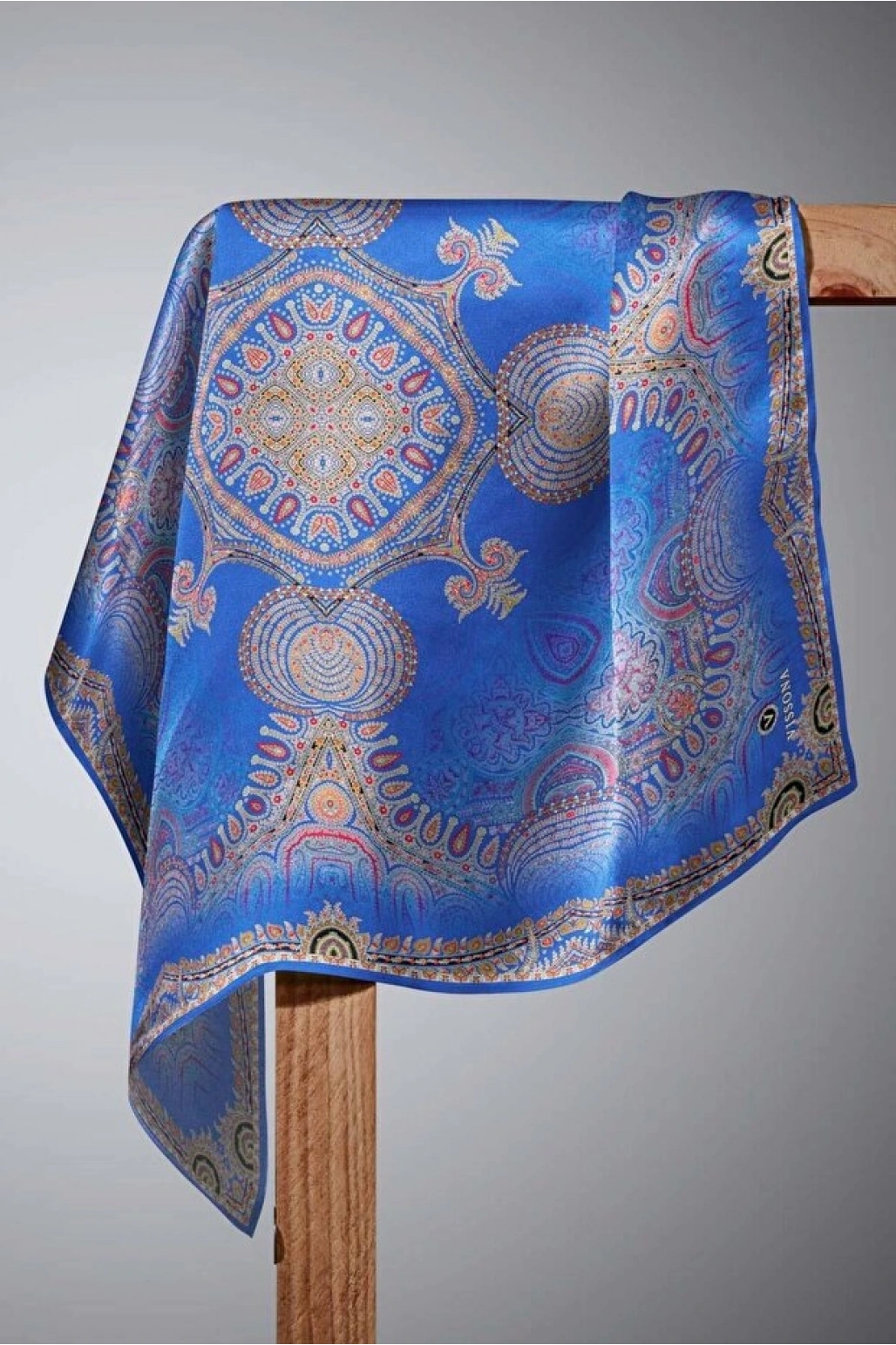 Vissona %100 Twill İpek Şal Desenli Saks Renkli 90x90 Eşarp Dikim Şekli : El Dikişi