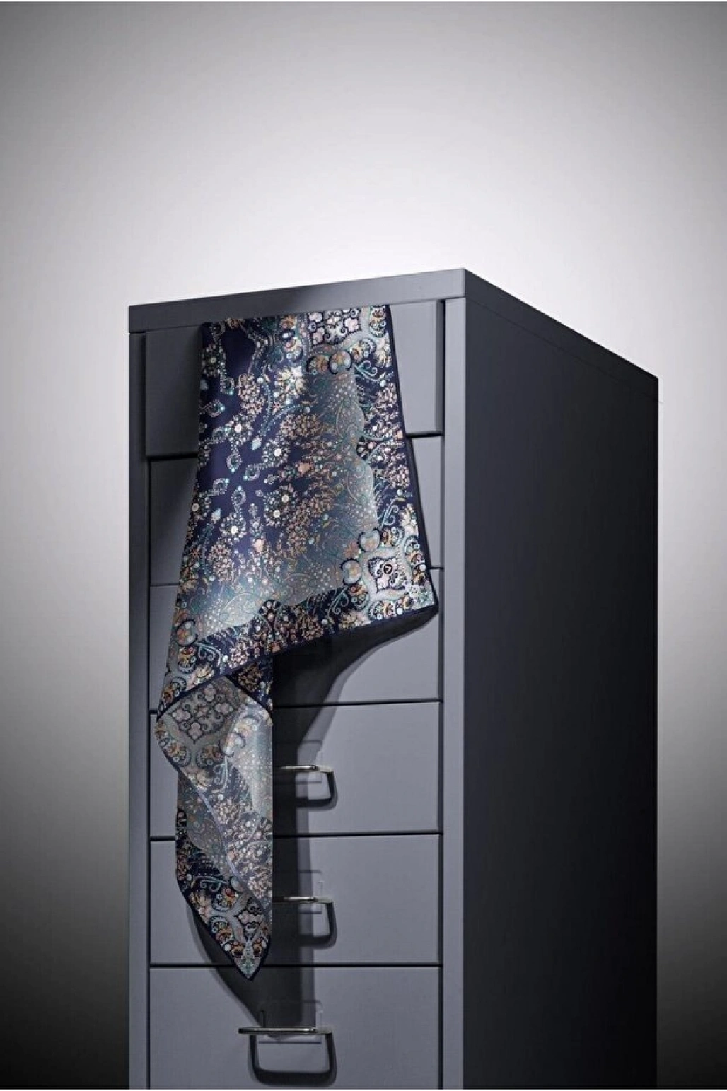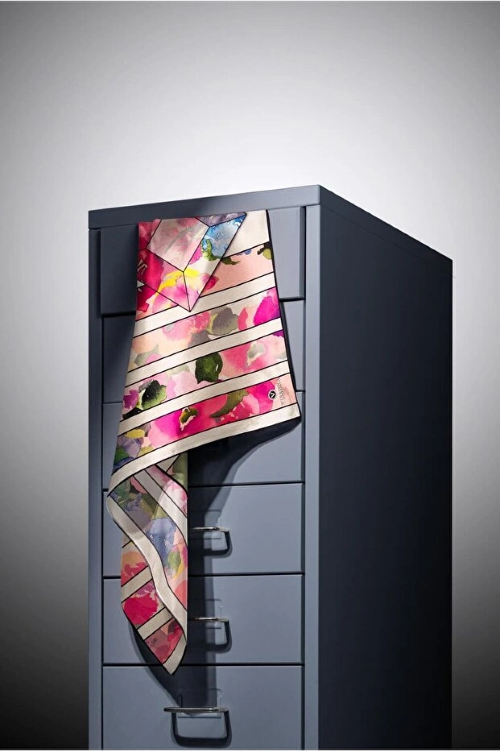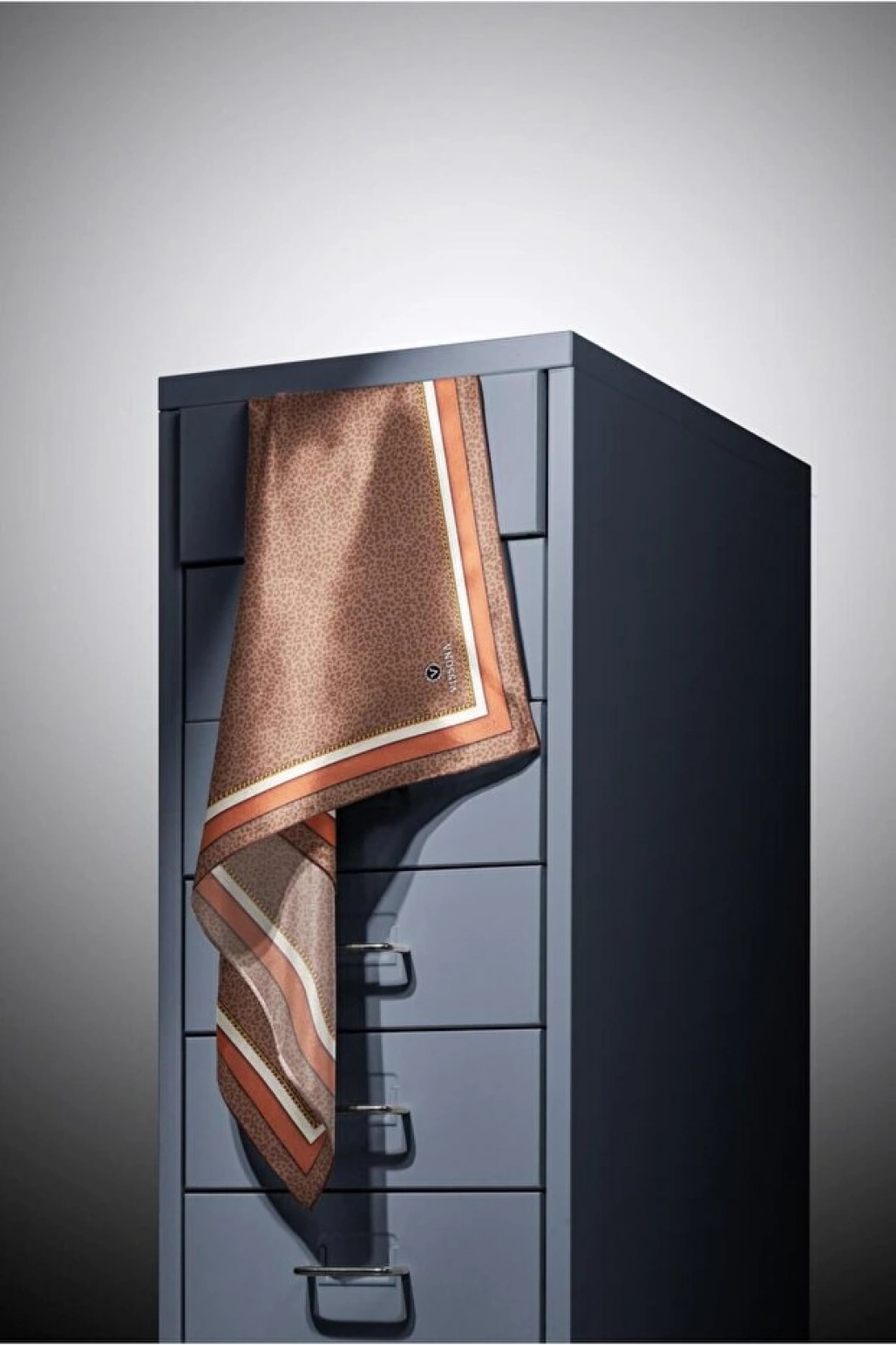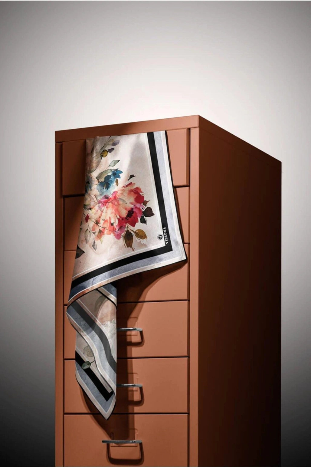 Vissona %100 Twill İpek Şal Desenli Saks Renkli 90x90 Eşarp Dikim Şekli : El Dikişi