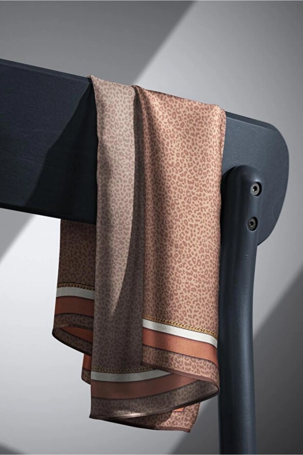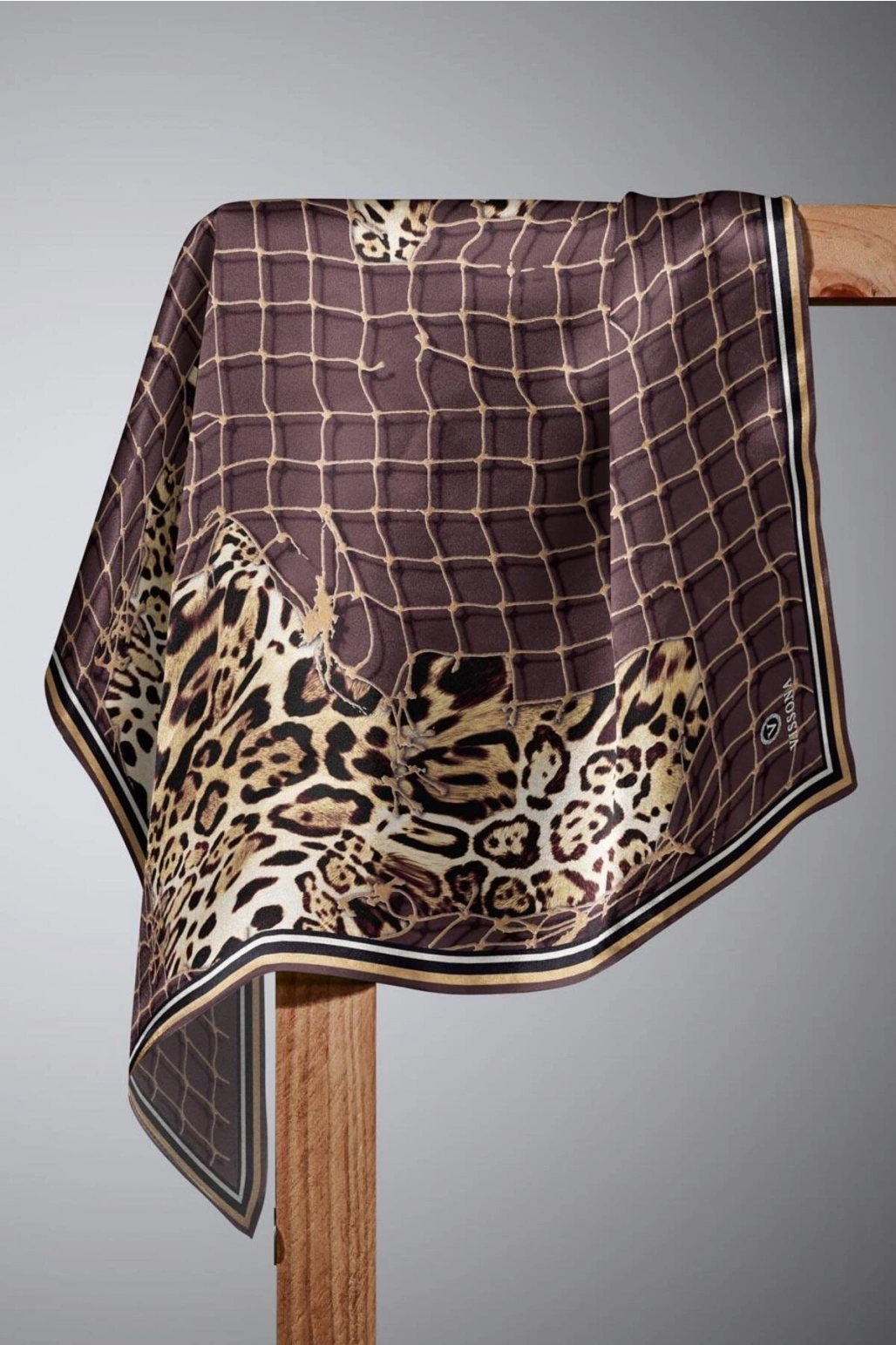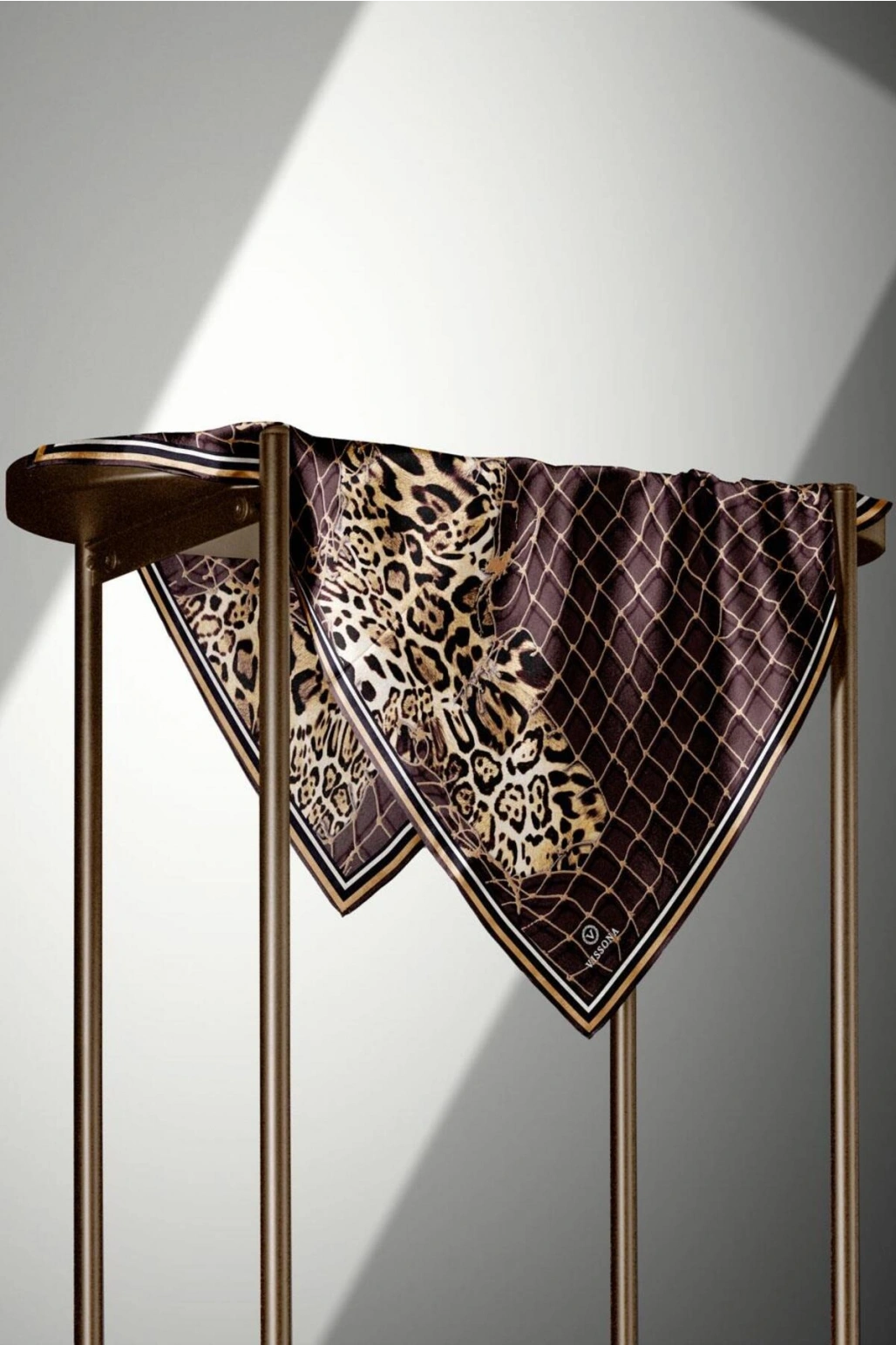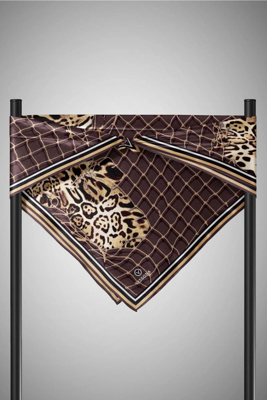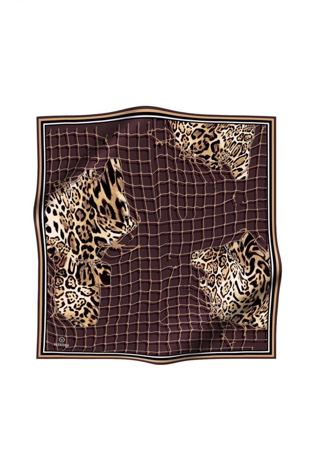 Vissona %100 Twill İpek Leopar Desenli Vizon Renkli 90x90 Eşarp Dikim Şekli : El Dikişi