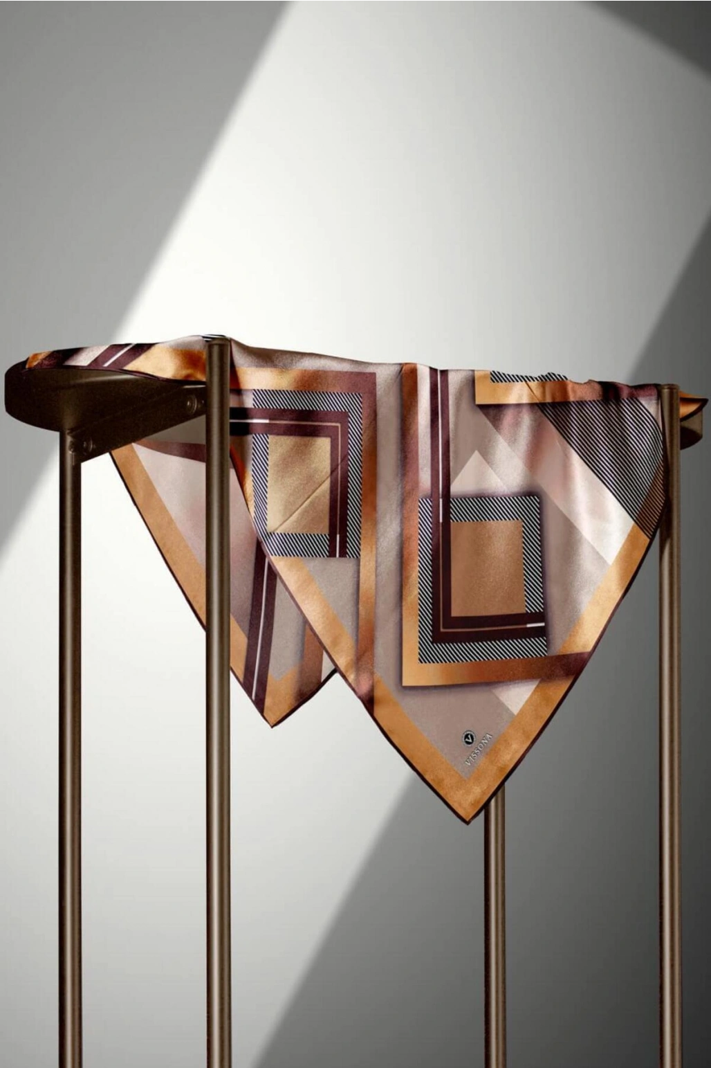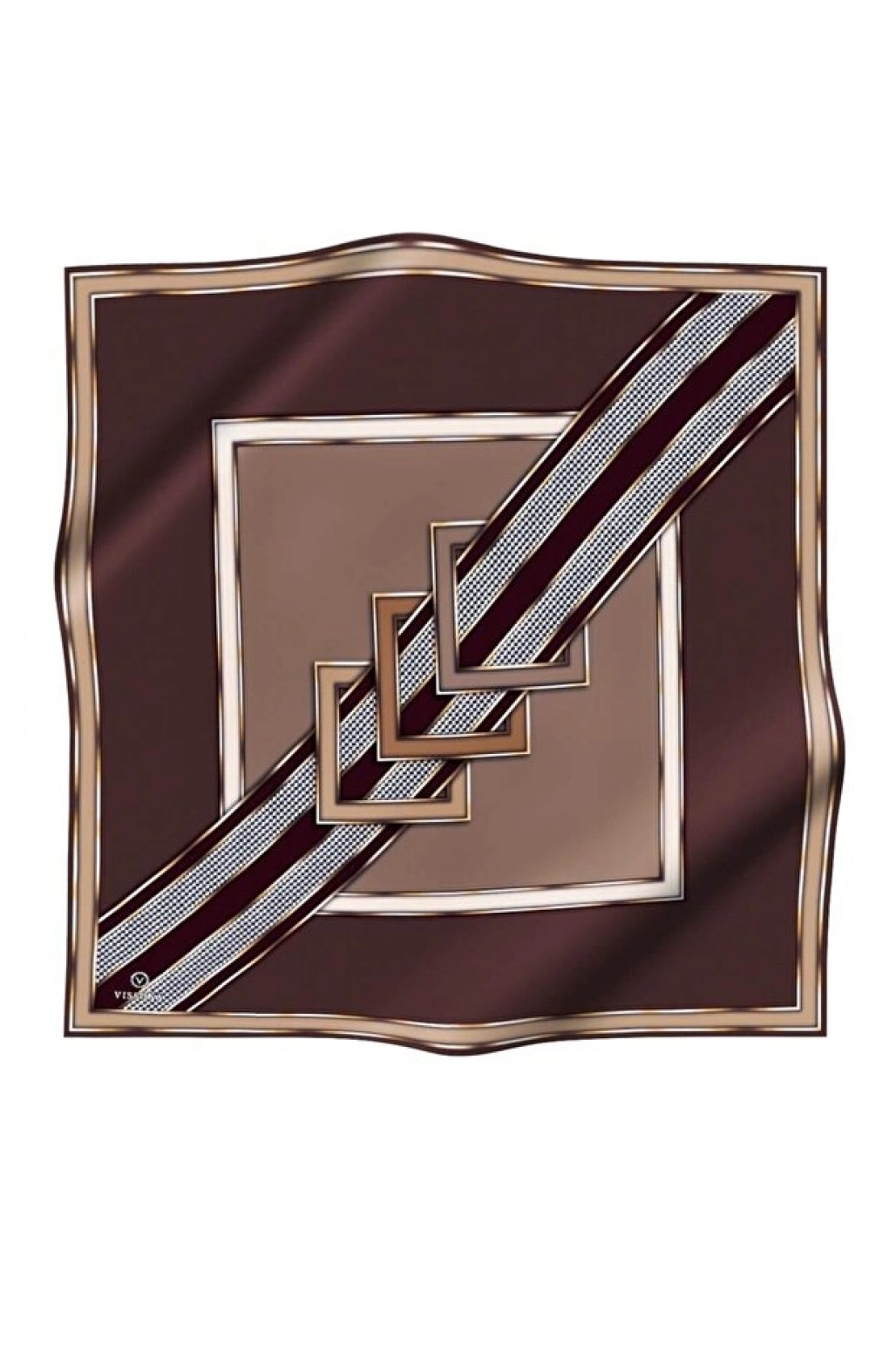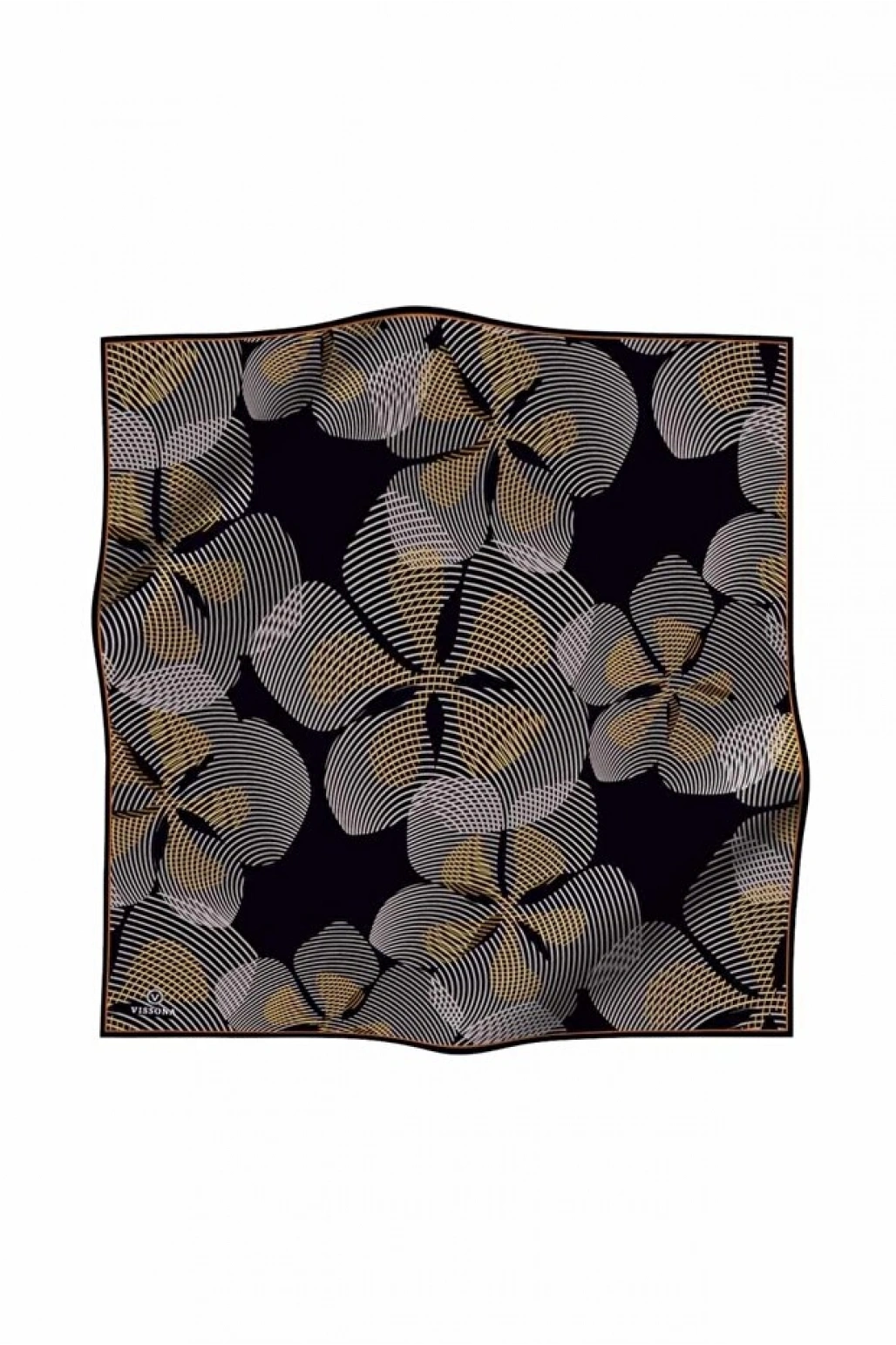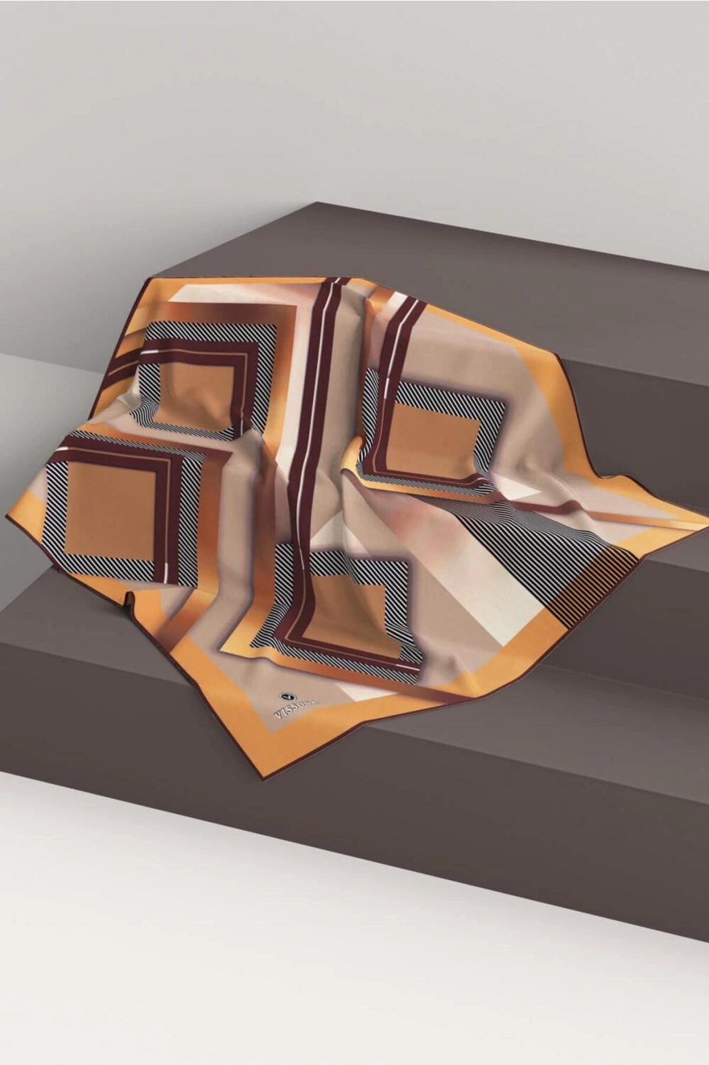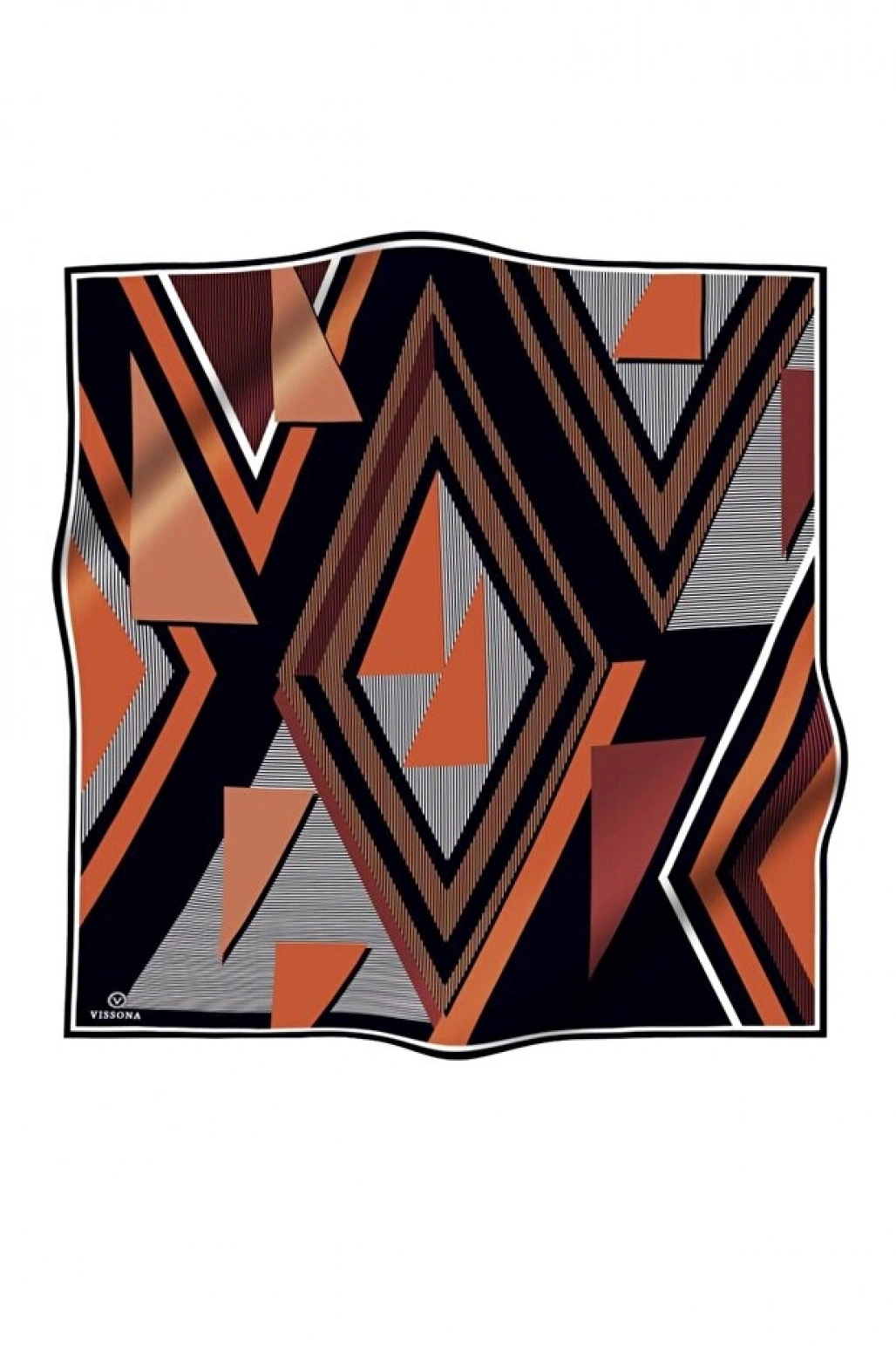 Vissona %100 Twill İpek Geometrik Desenli Taba - Siyah Renkli 90x90 Eşarp Dikim Şekli : El Dikişi