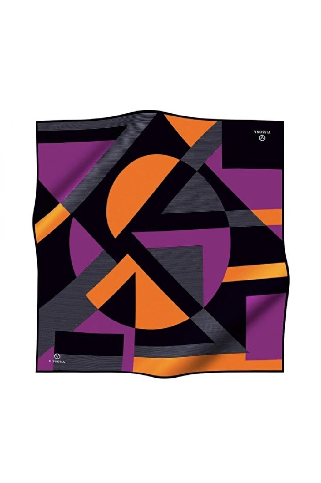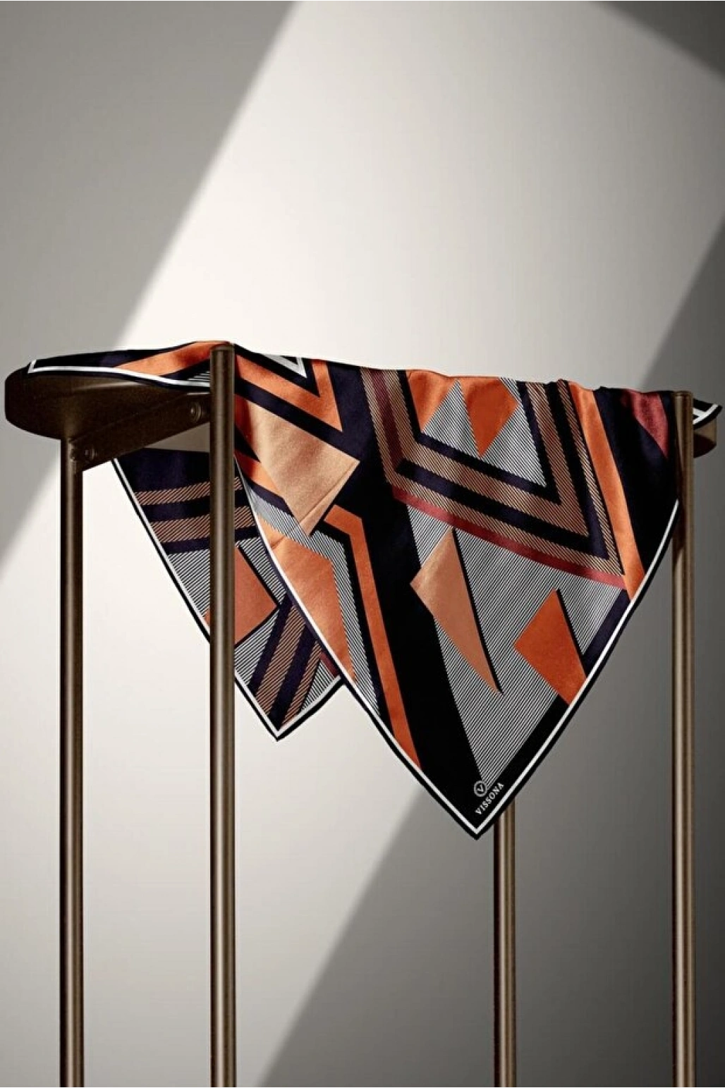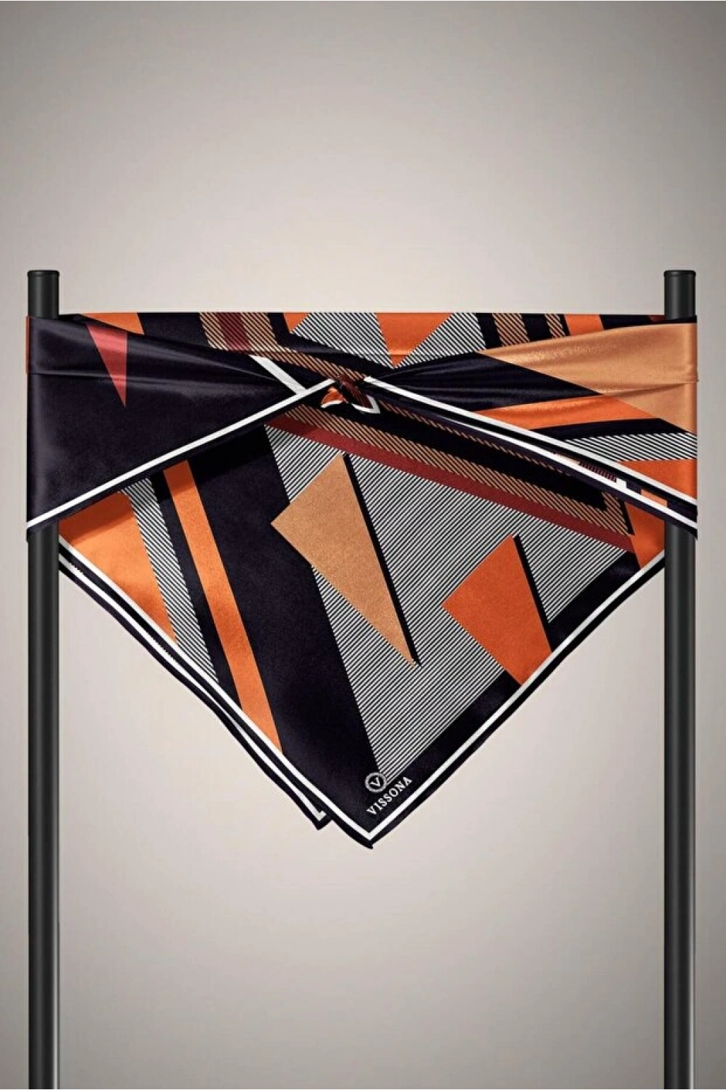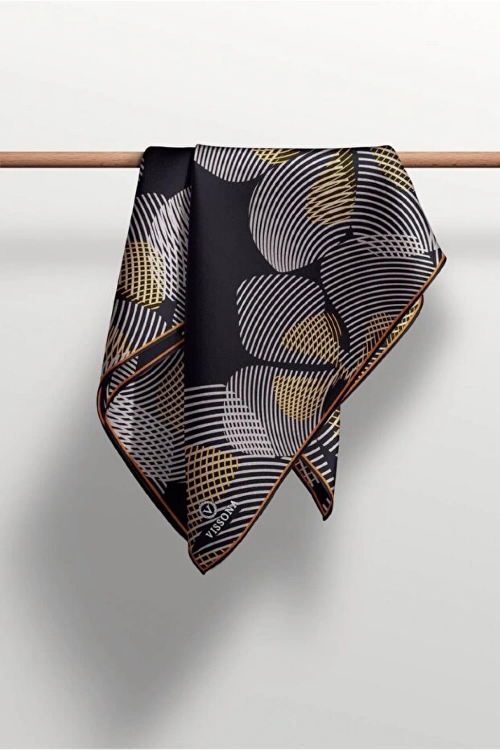Vissona %100 Twill İpek Geometrik Desenli Taba - Siyah Renkli 90x90 Eşarp Dikim Şekli : El Dikişi