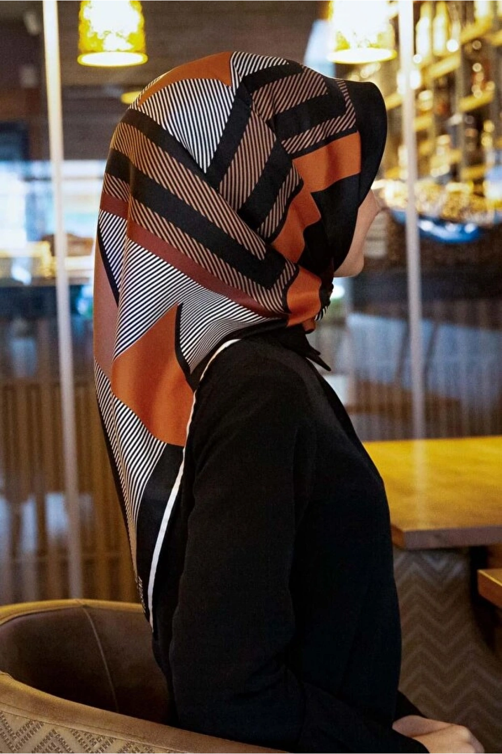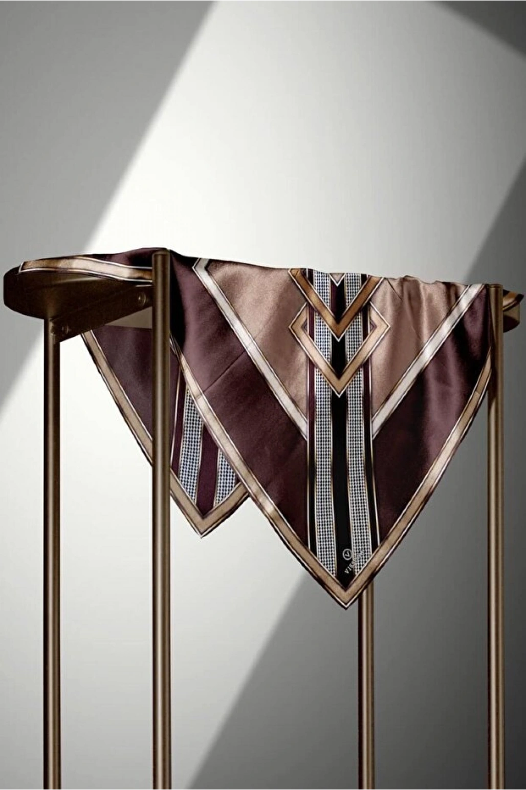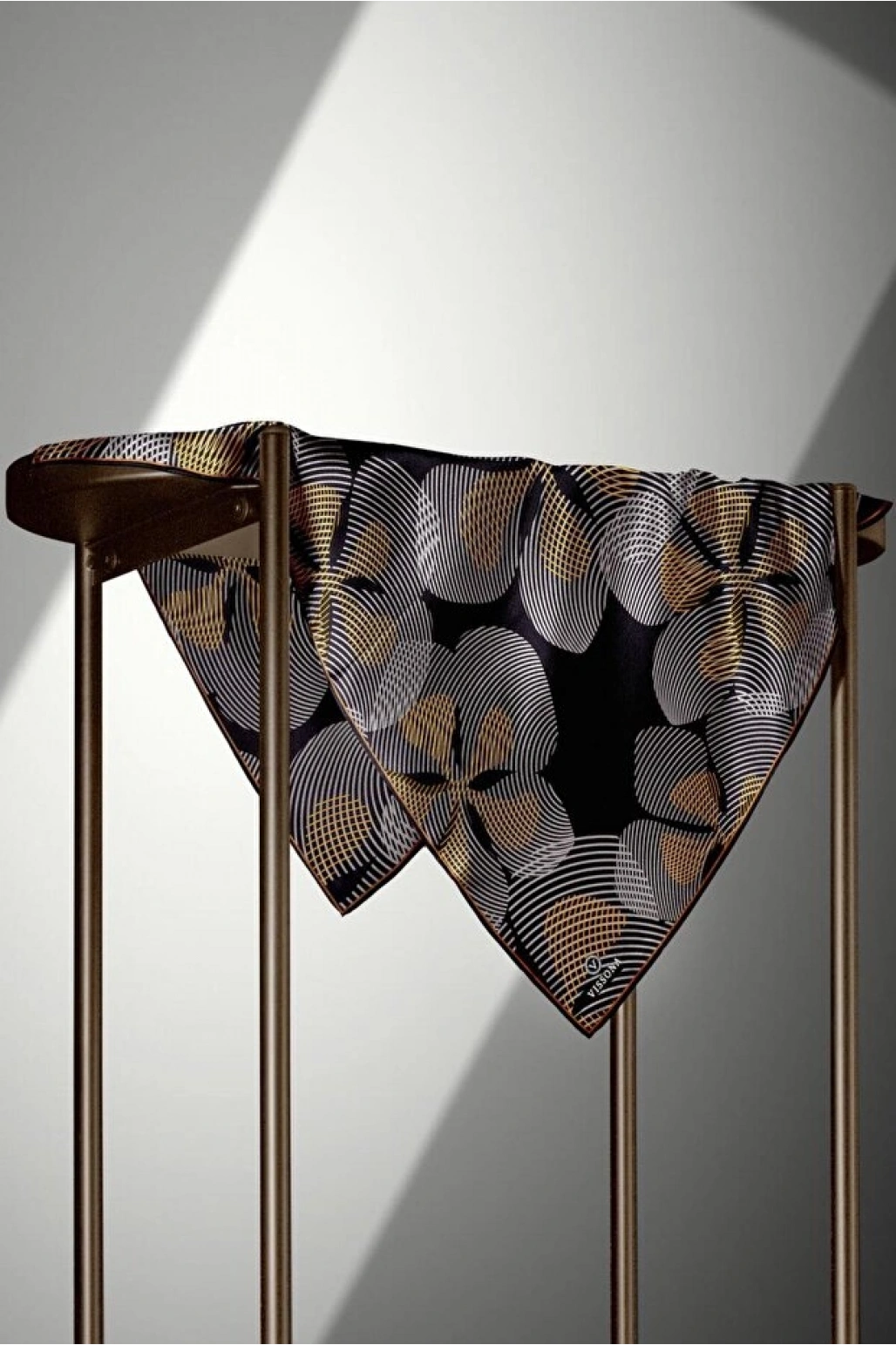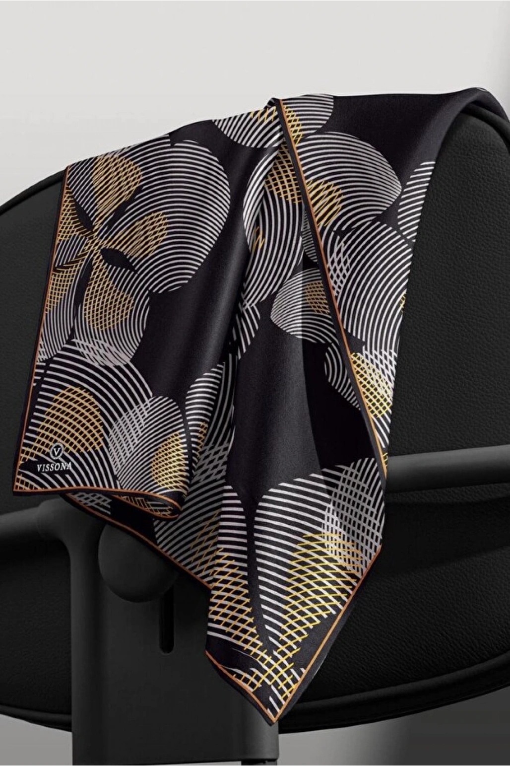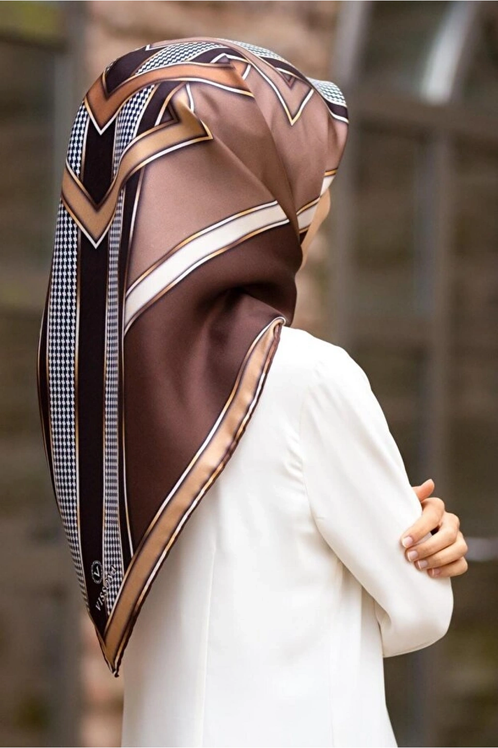 Vissona %100 Twill İpek Geometrik Desenli Taba - Siyah Renkli 90x90 Eşarp Dikim Şekli : El Dikişi