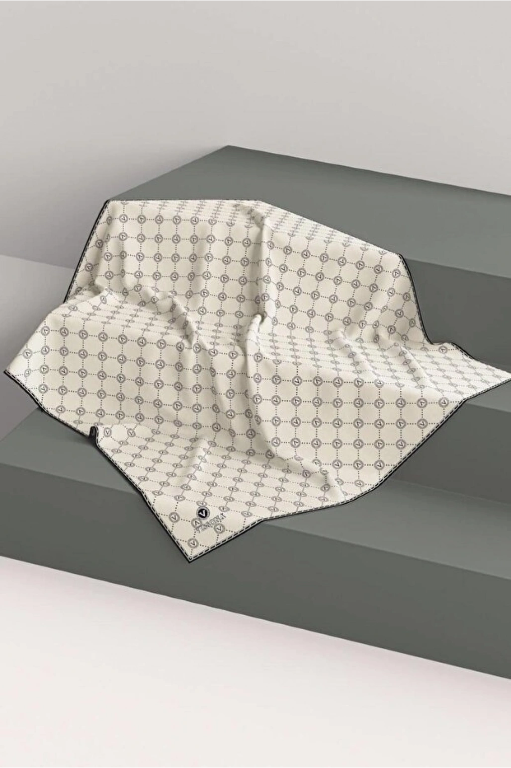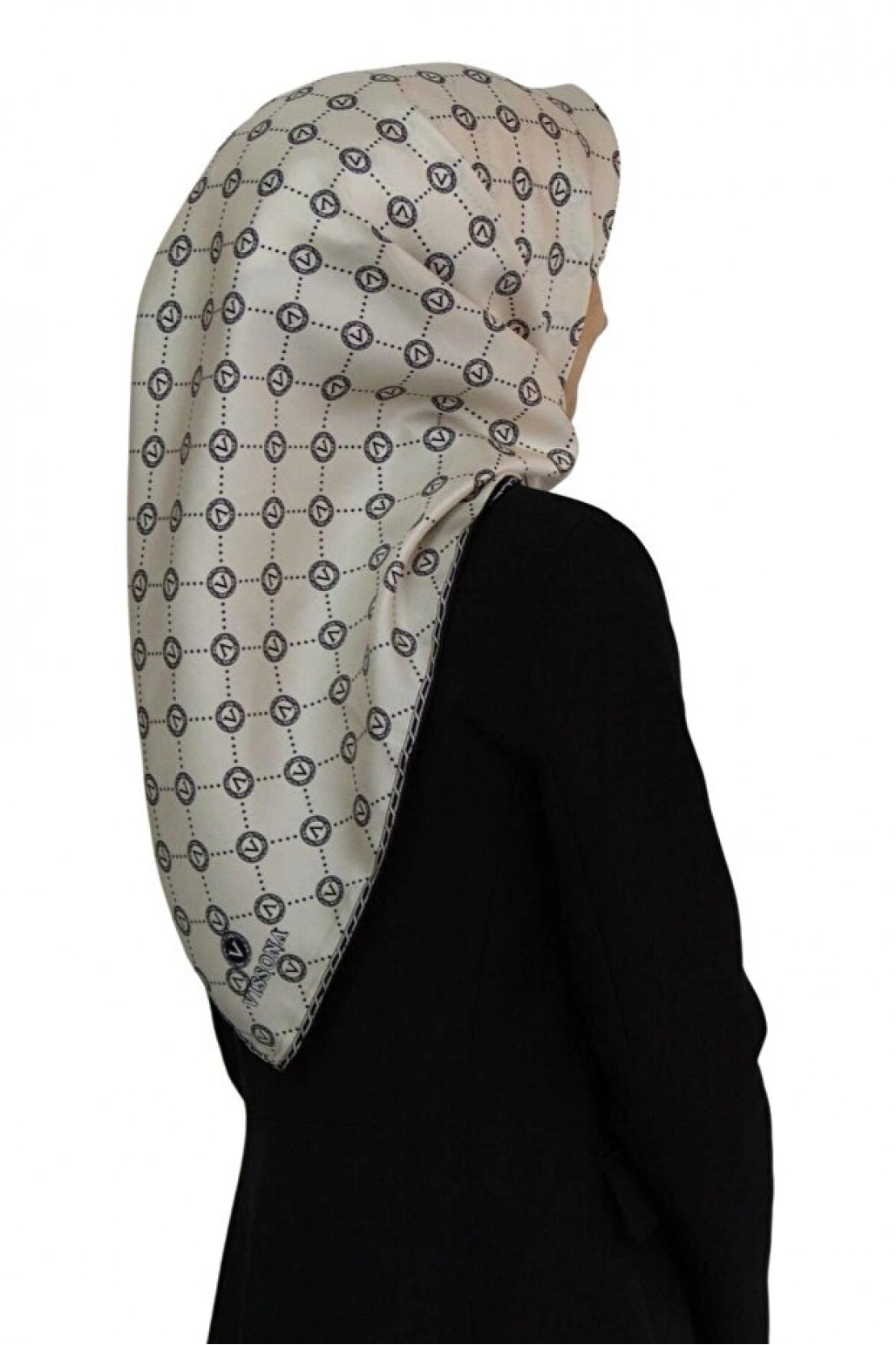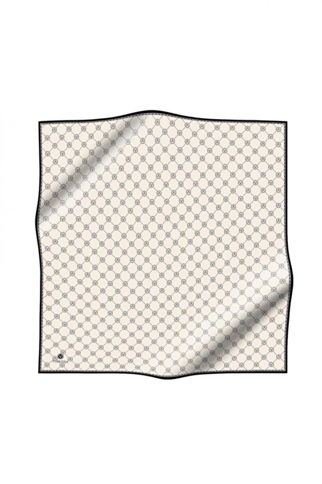 Vissona %100 Twill İpek Monogram Desenli Krem - Siyah Renkli 90x90 Eşarp Dikim Şekli : El Dikişi
