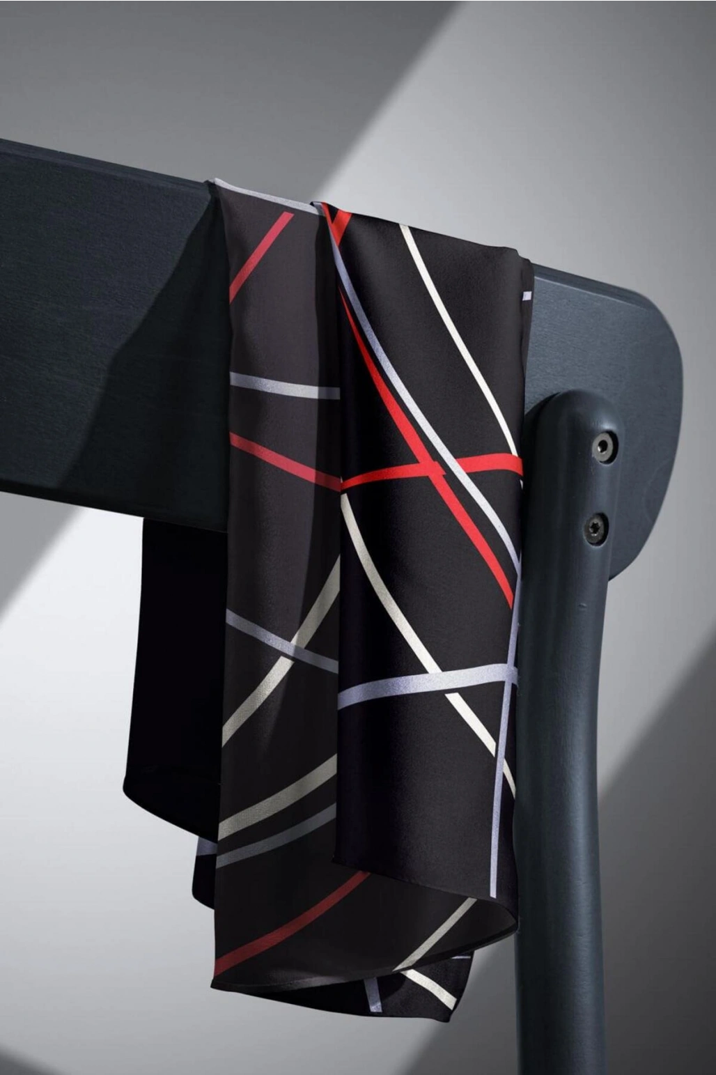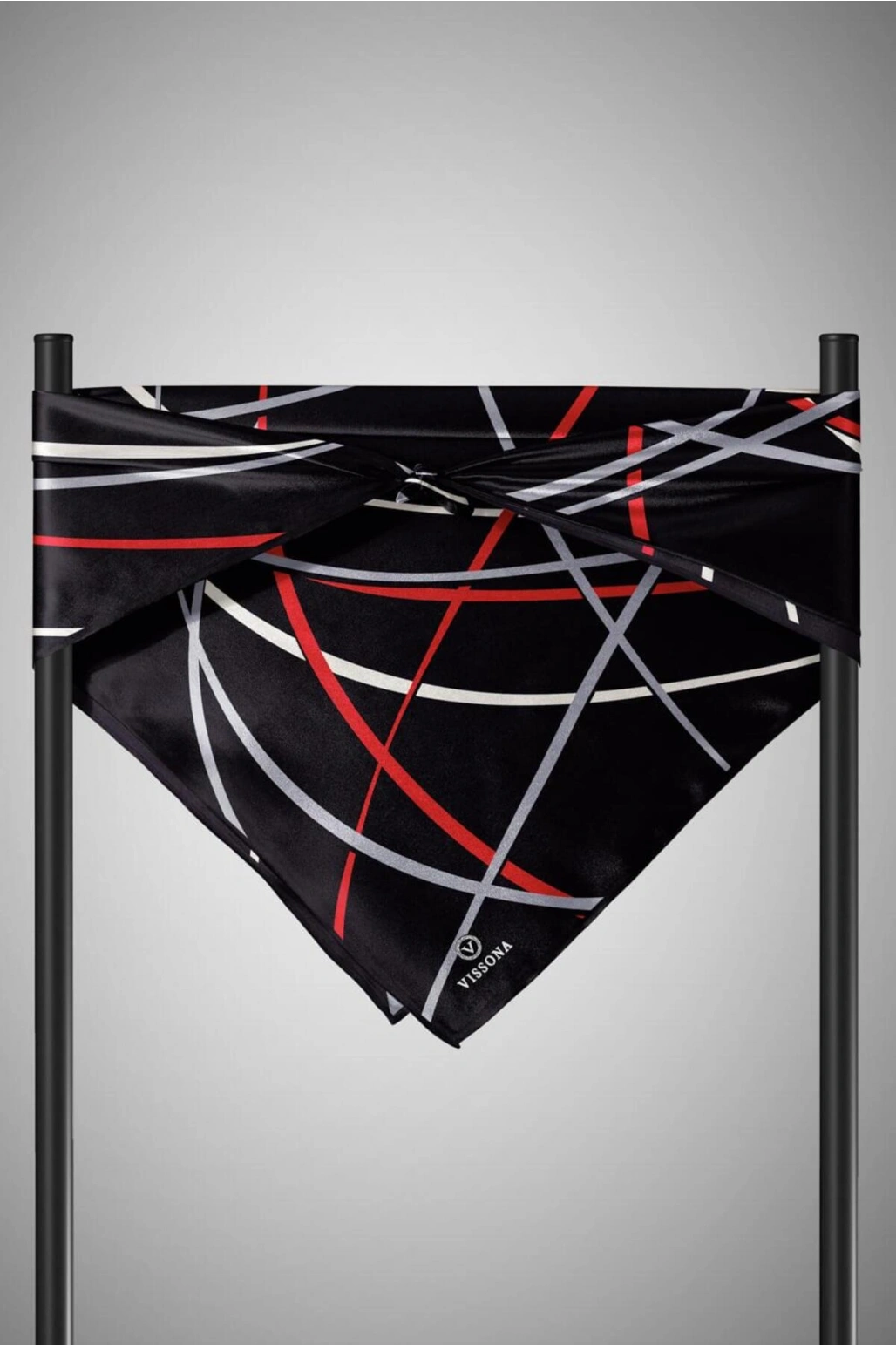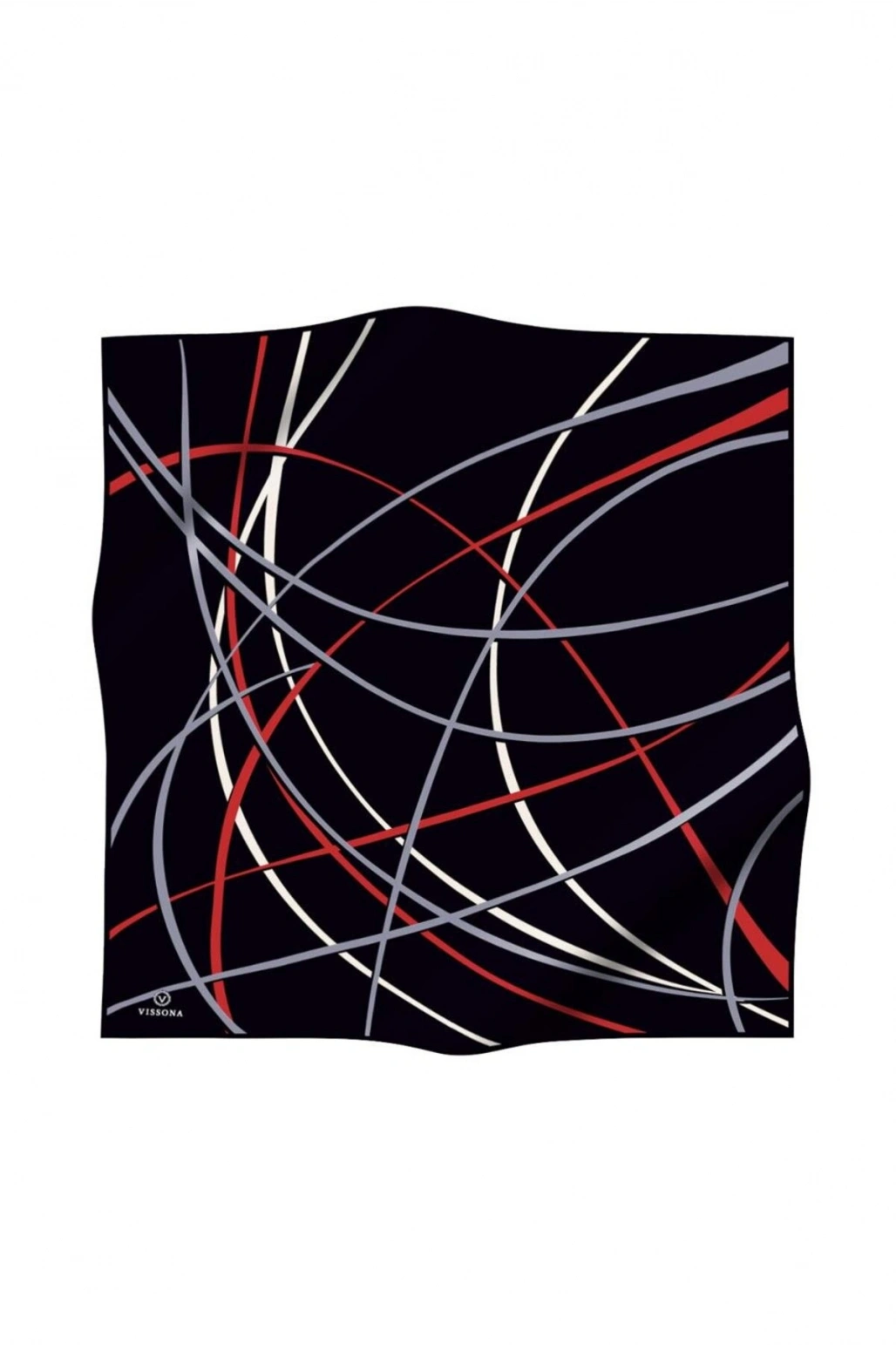Vissona %100 Twill İpek Çizgili Desenli Siyah - Kırmızı Renkli 90x90 Eşarp Dikim Şekli : El Dikişi