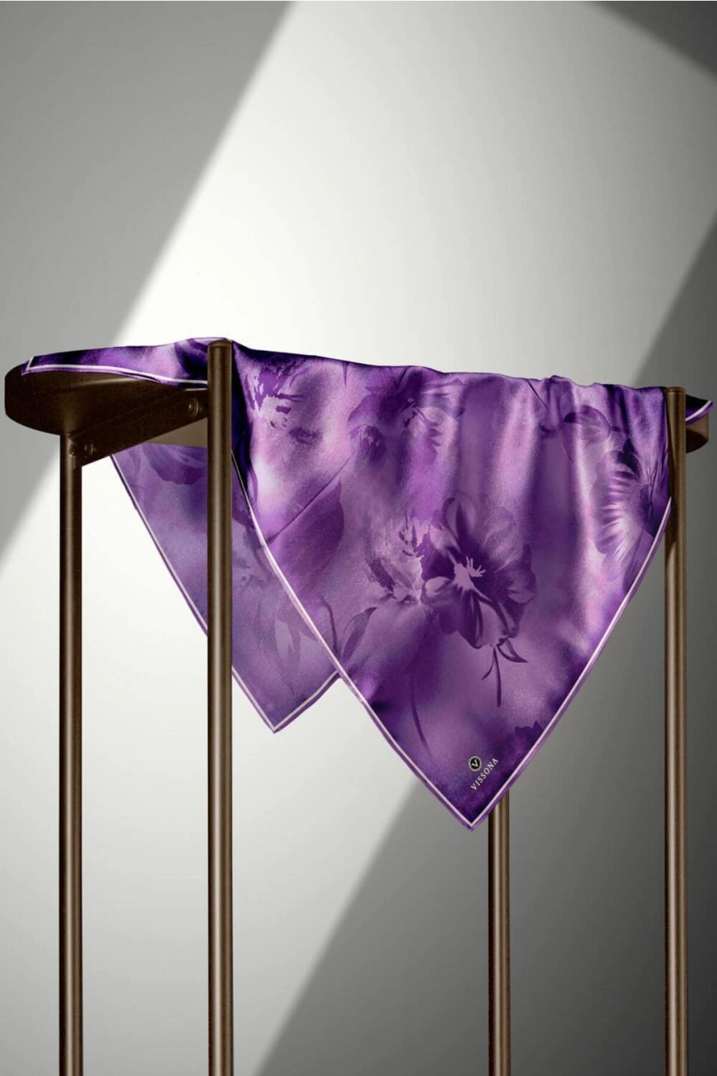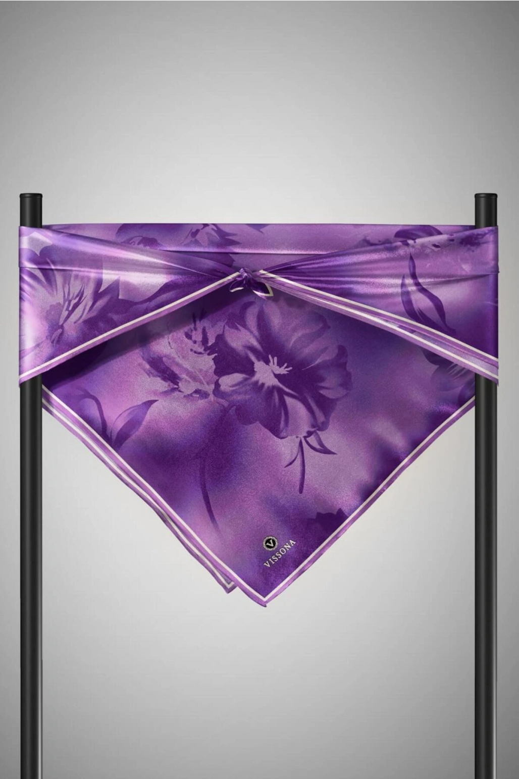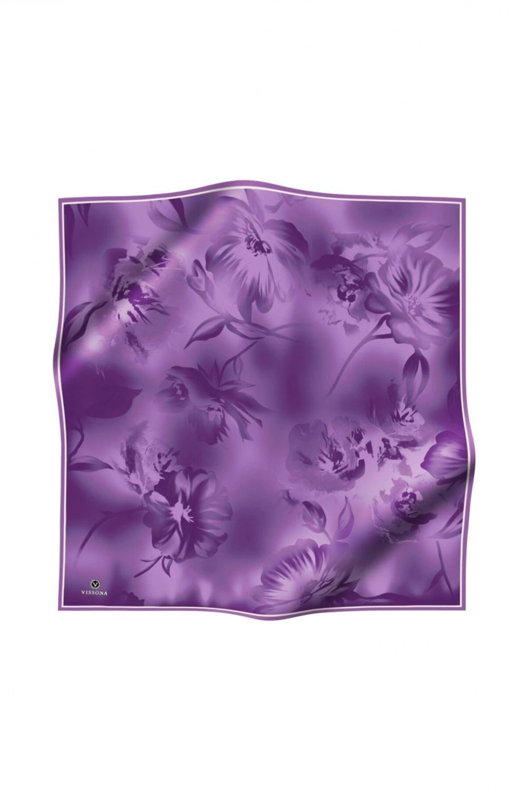 Vissona 100% Twill İpek Çiçek Desenli Lila Renkli 90x90 Dikim Şekli : El Dikişi Eşarp