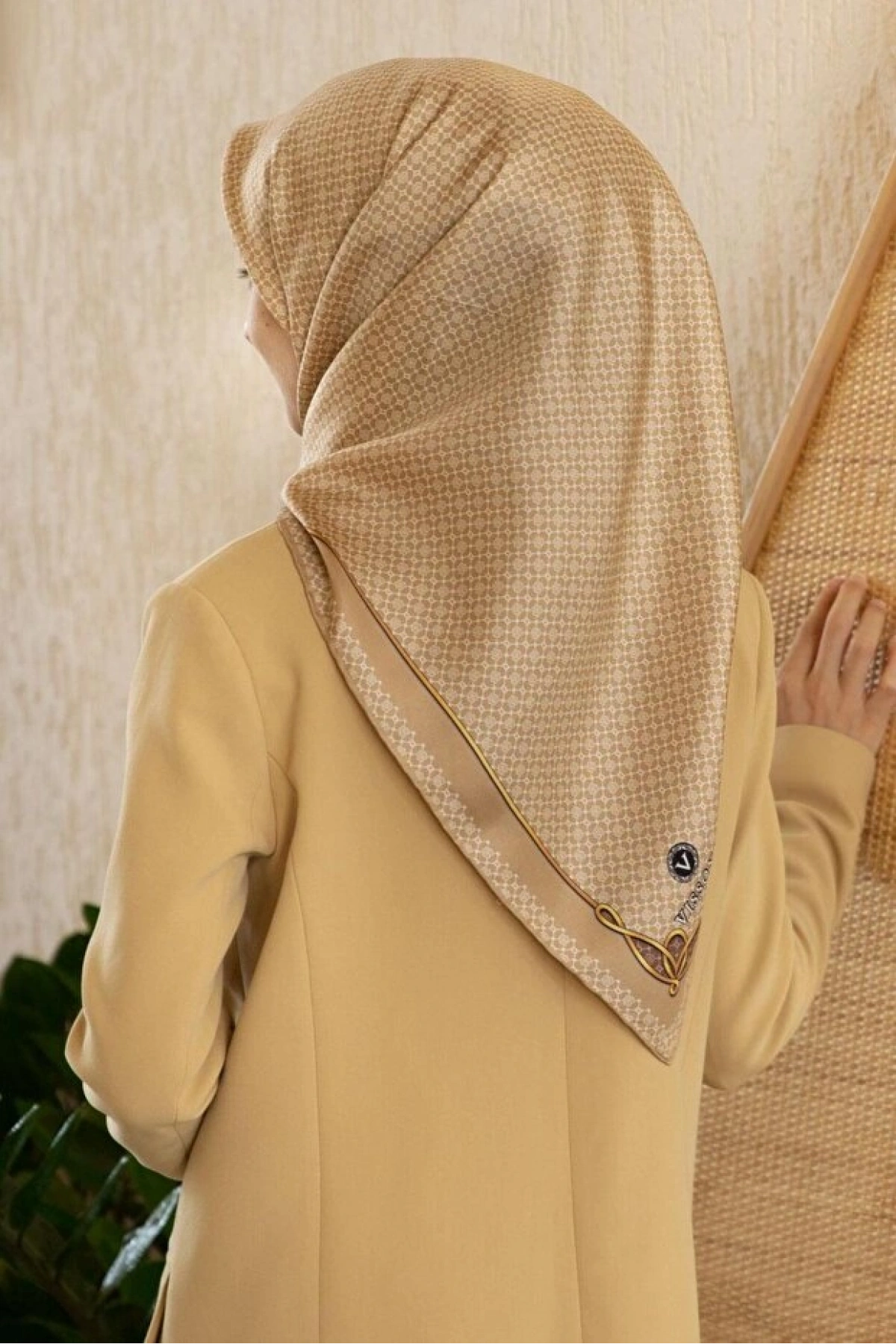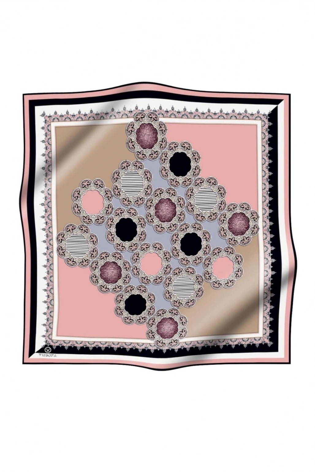Vissona %100 Twill Türk Motifi Desenli Pudra - Bej Renkli 90x90 Eşarp Dikim Şekli: El Dikişi