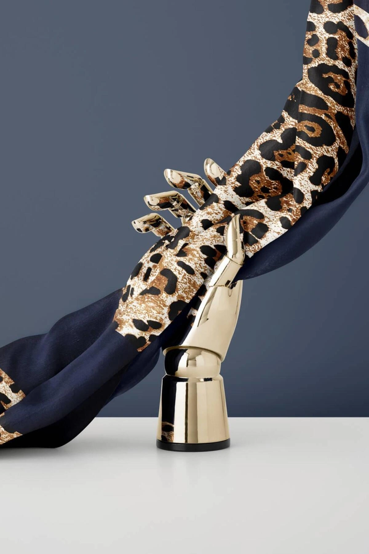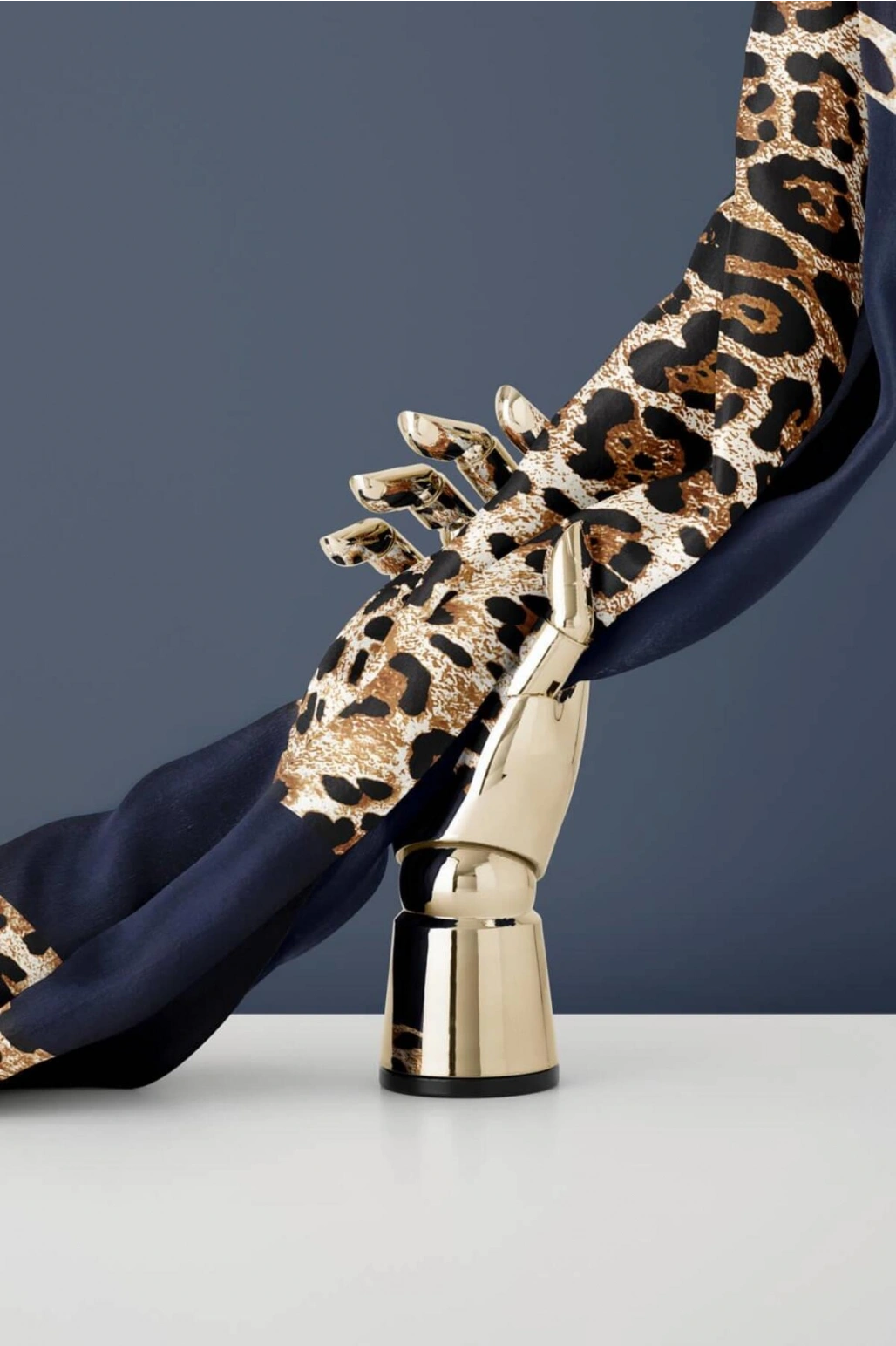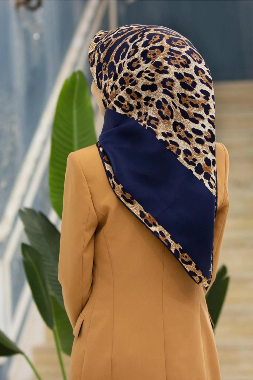 Vissona %100 Twill İpek Leopar Desenli Lacivert Renkli 90x90 Eşarp Dikim Şekli : El Dikişi
