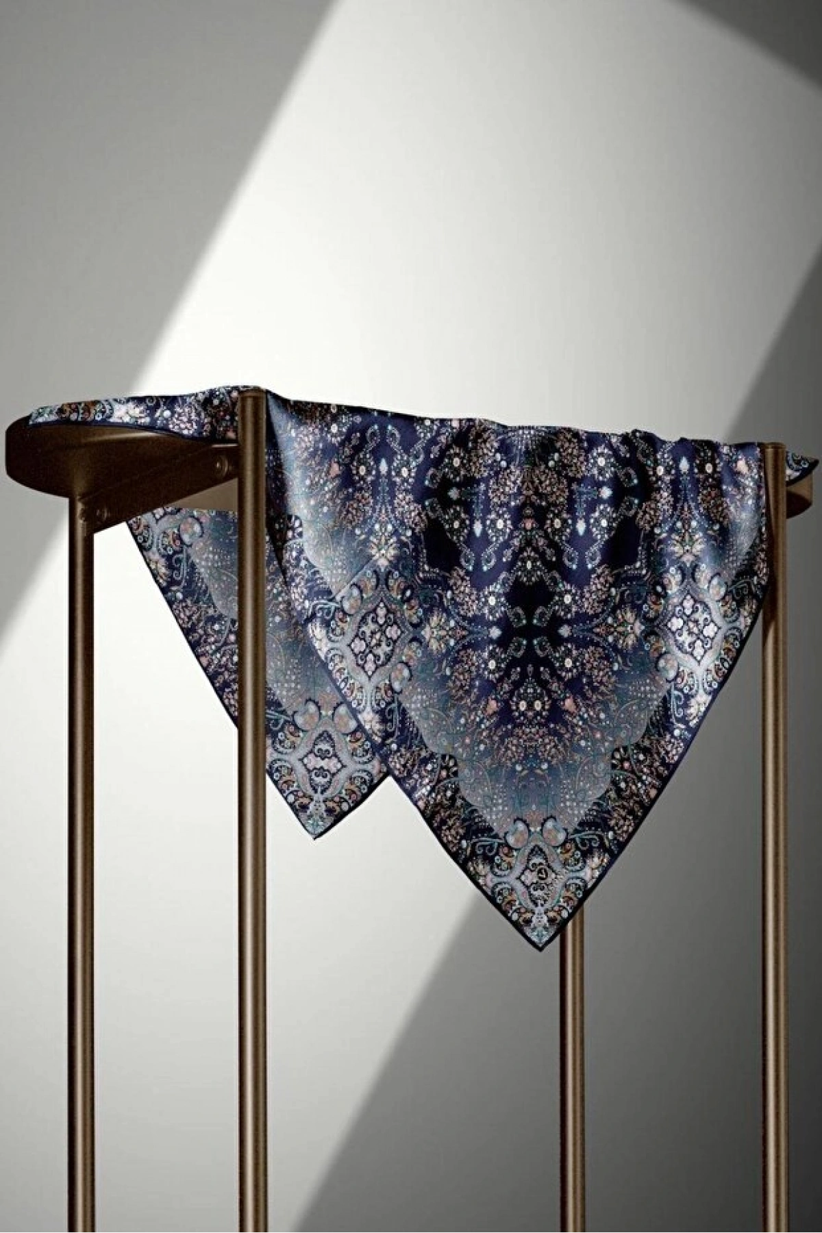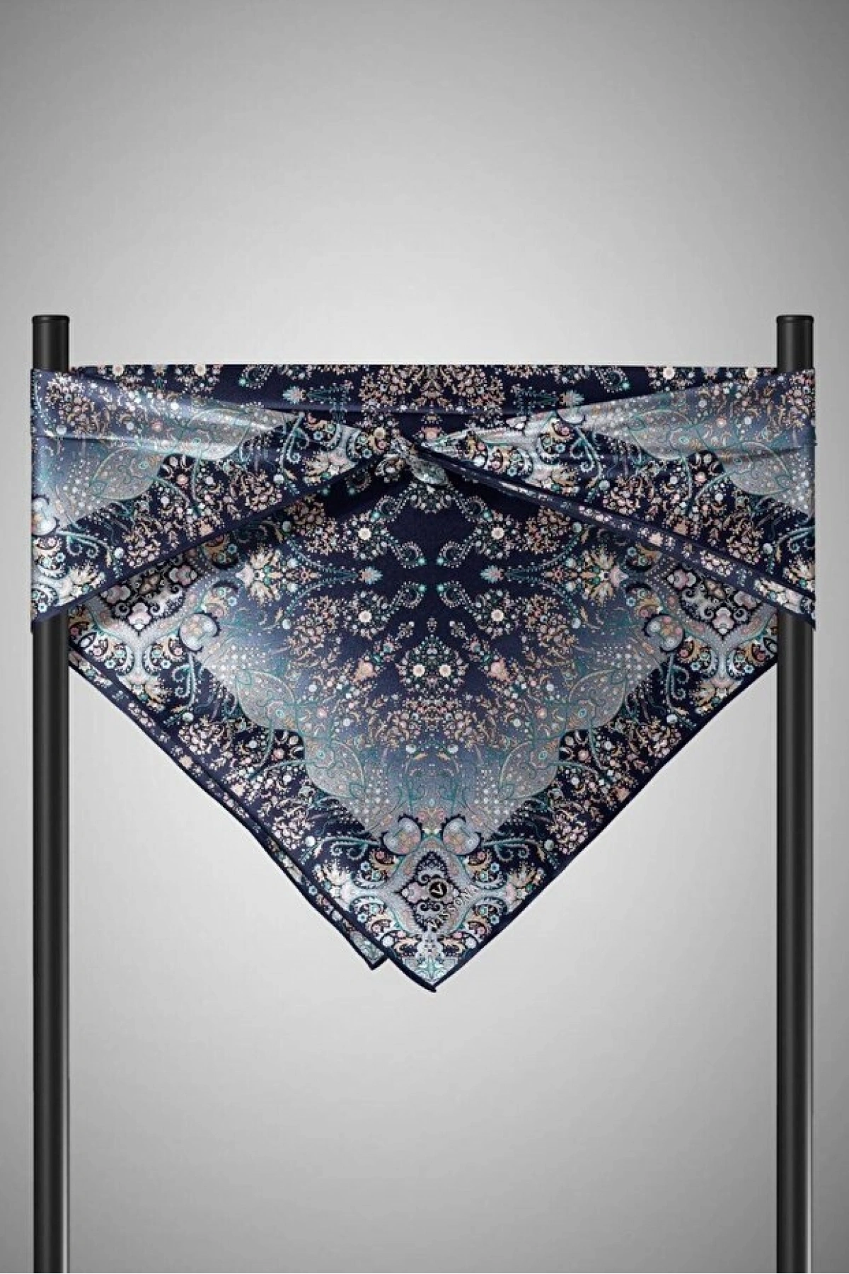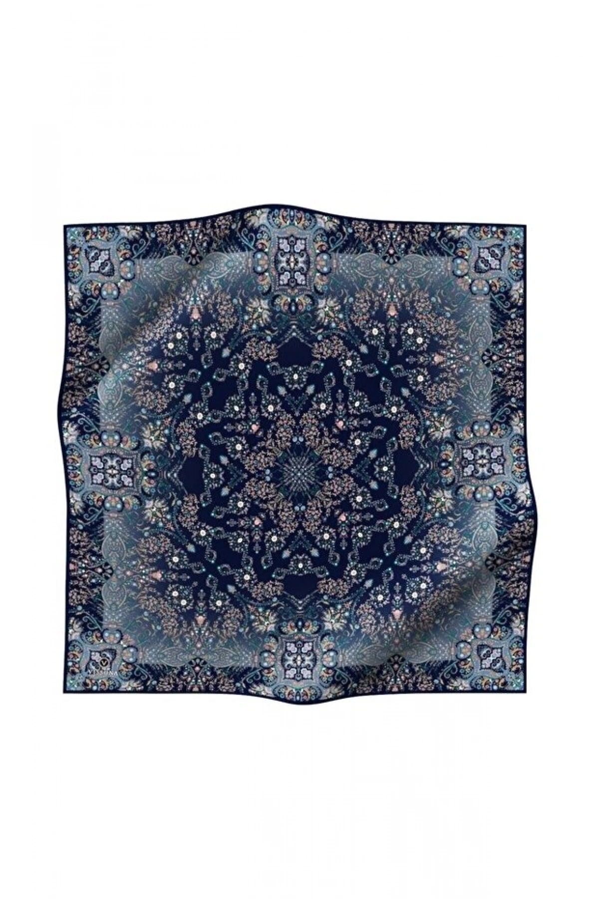 Vissona %100 Twill İpek Şal Desenli Lacivert - İndigo Renkli 90x90 Eşarp Dikim Şekli : El Dikişi