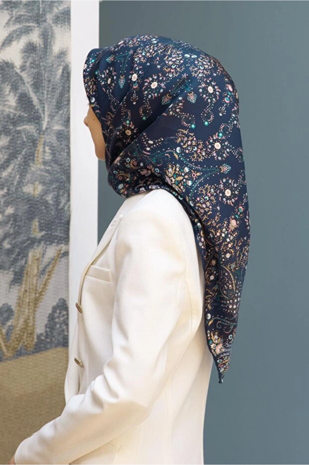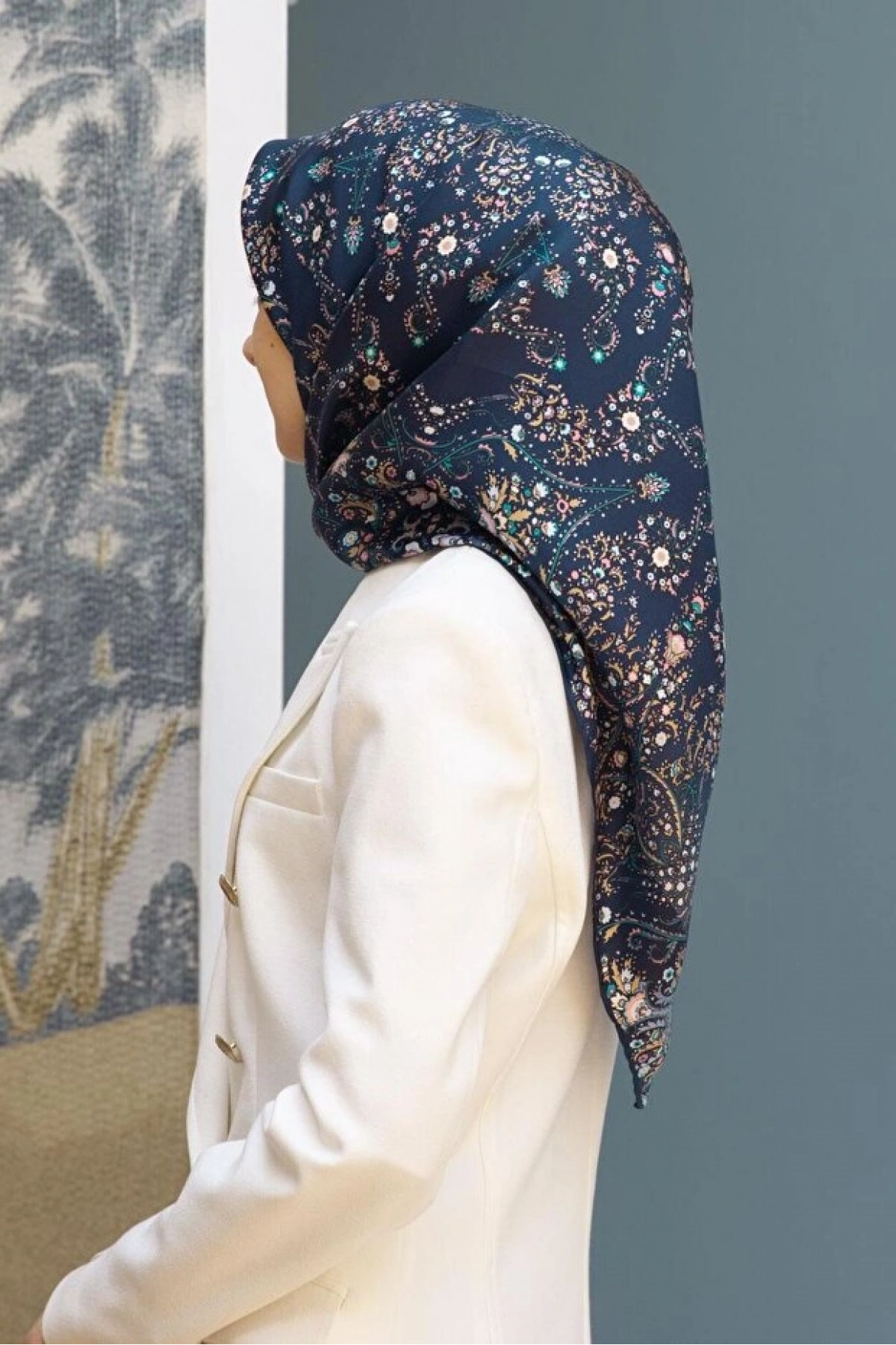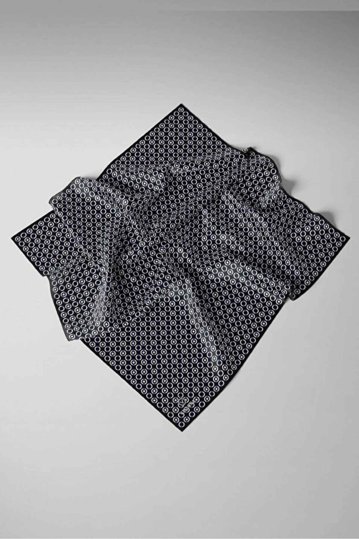 Vissona %100 Twill İpek Şal Desenli Lacivert - İndigo Renkli 90x90 Eşarp Dikim Şekli : El Dikişi