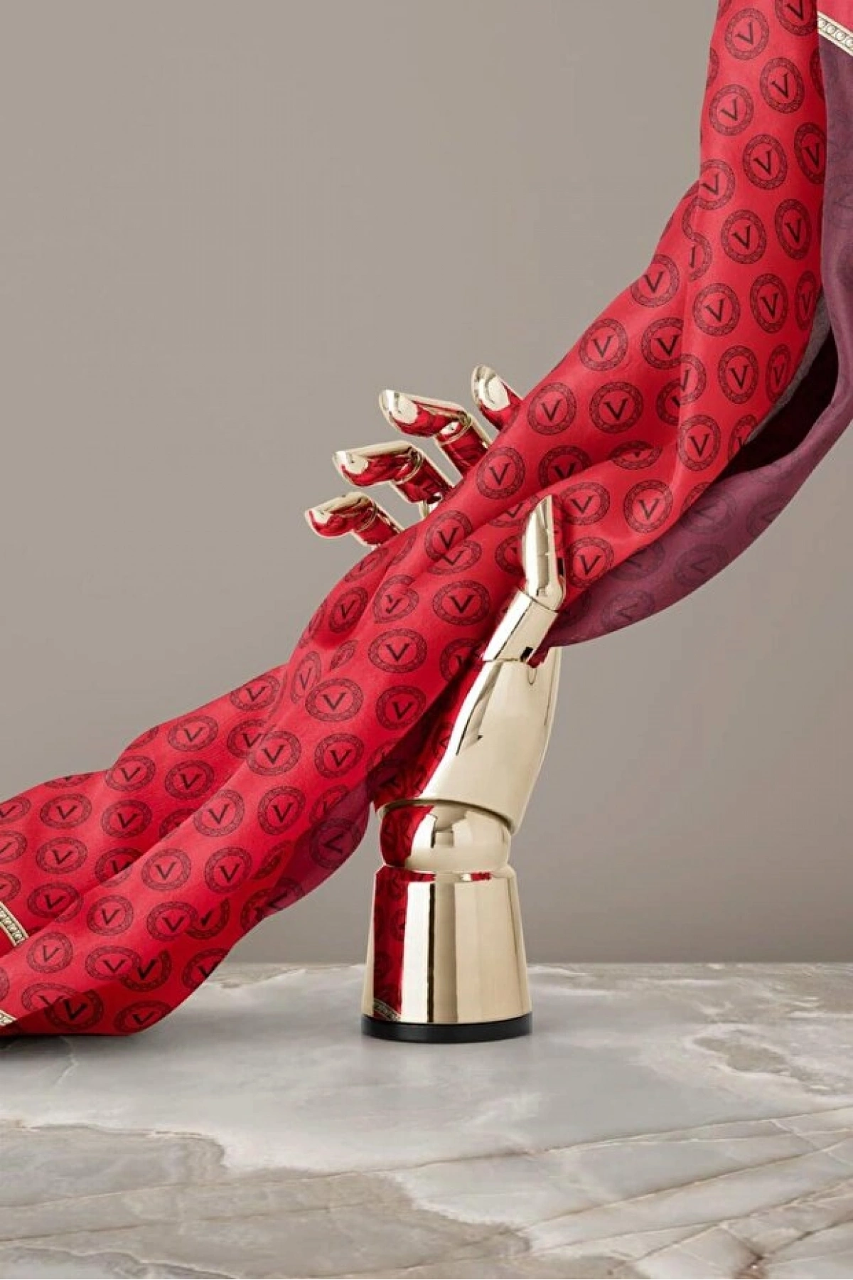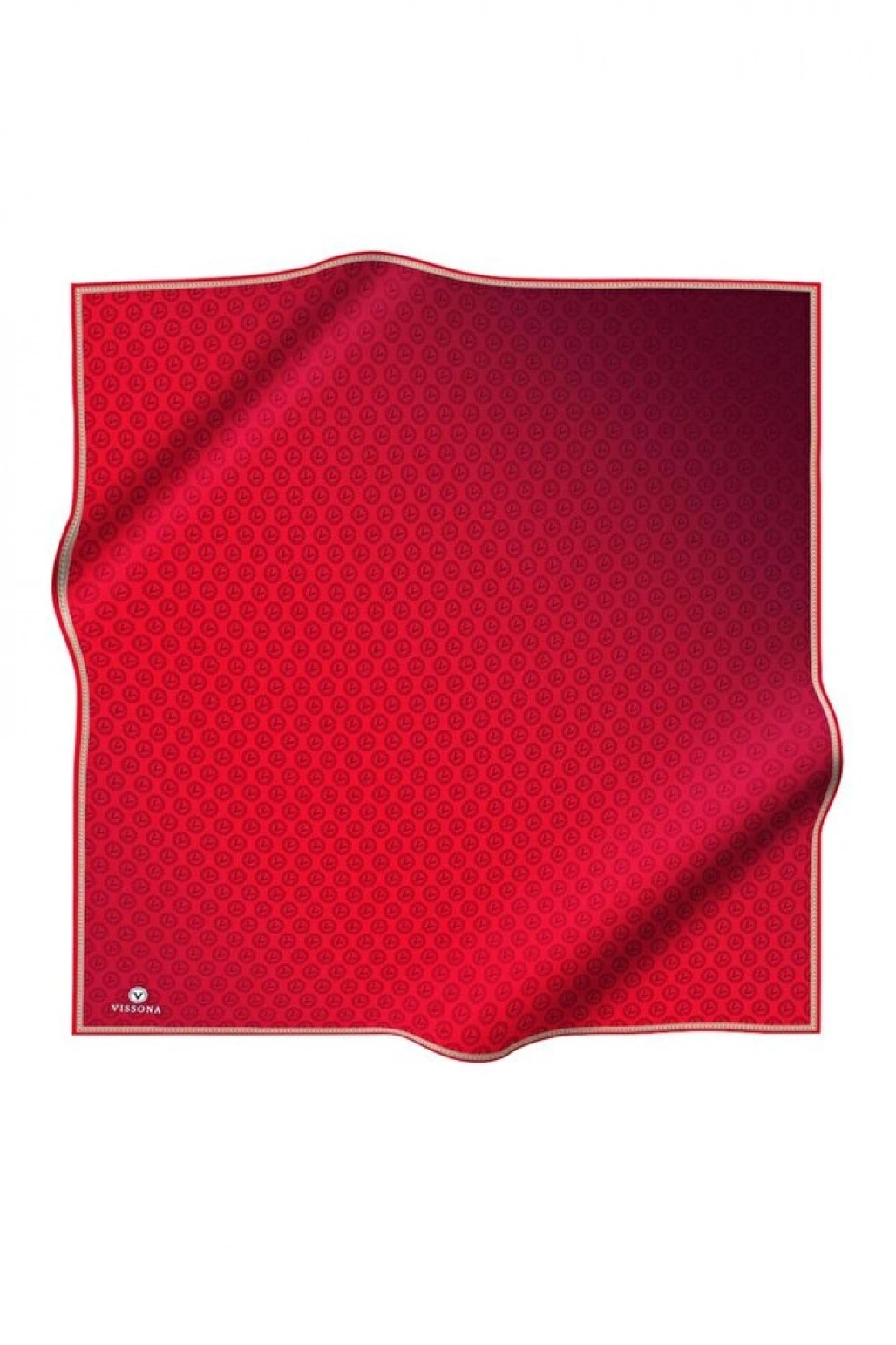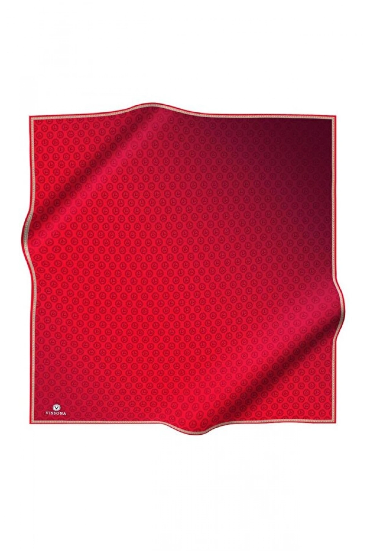 Vissona %100 Twill İpek Monogram Desenli Kırmızı Renkli 90x90 Eşarp Dikim Şekli : El Dikişi