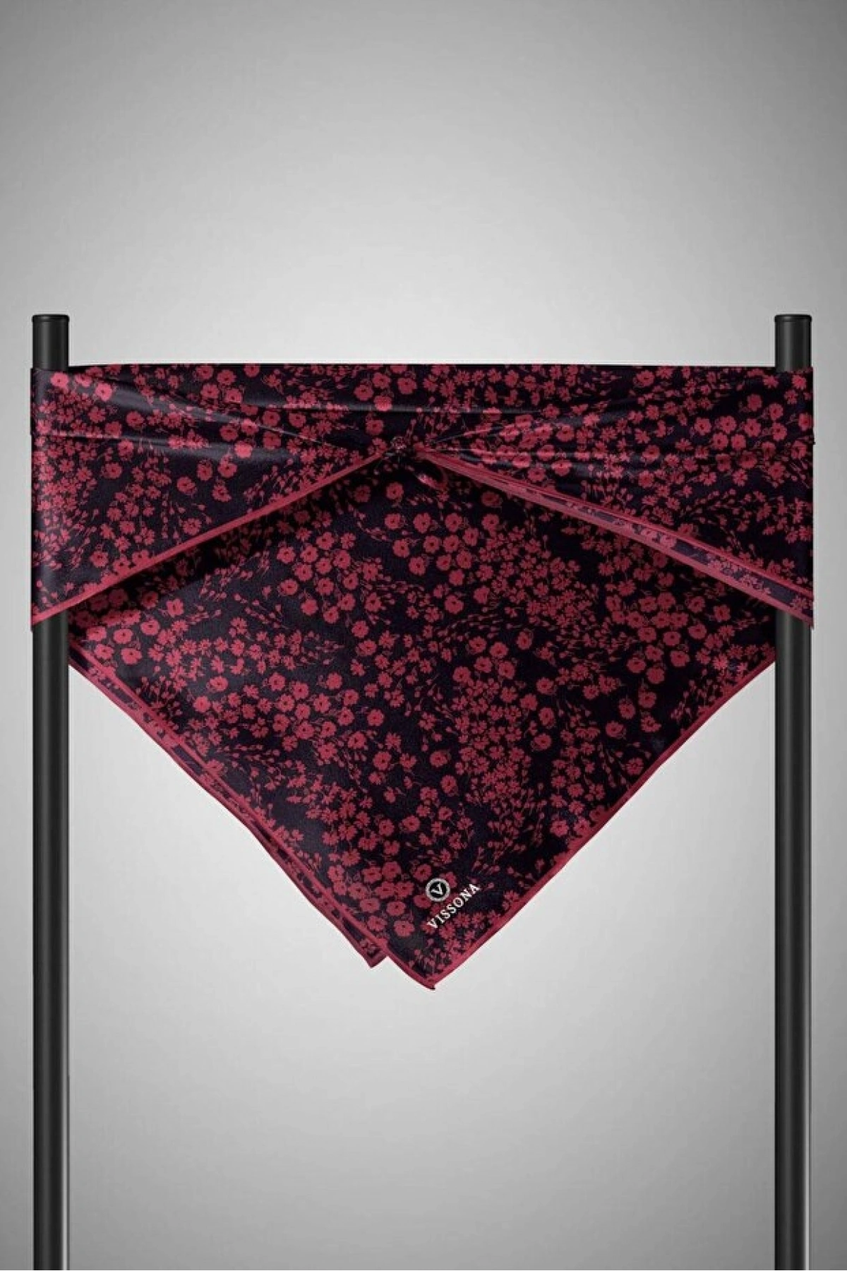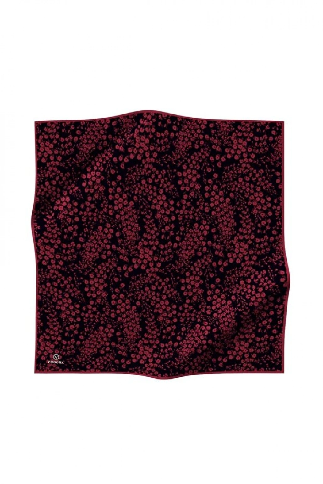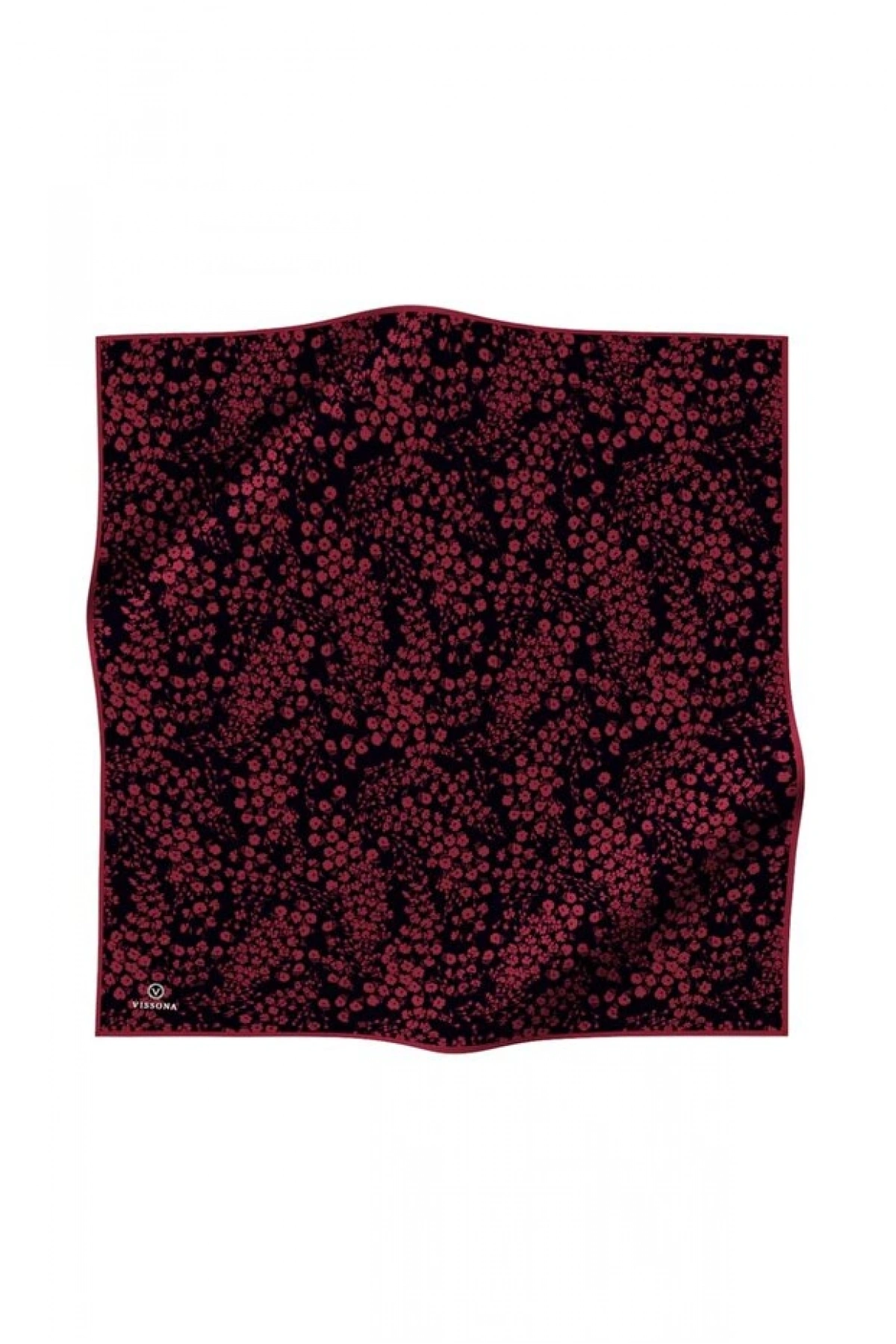 Vissona %100 Twill İpek Çıtır Çiçek Desenli Siyah - Bordo Renkli 90x90 Eşarp Dikim Şekli : El Dikişi