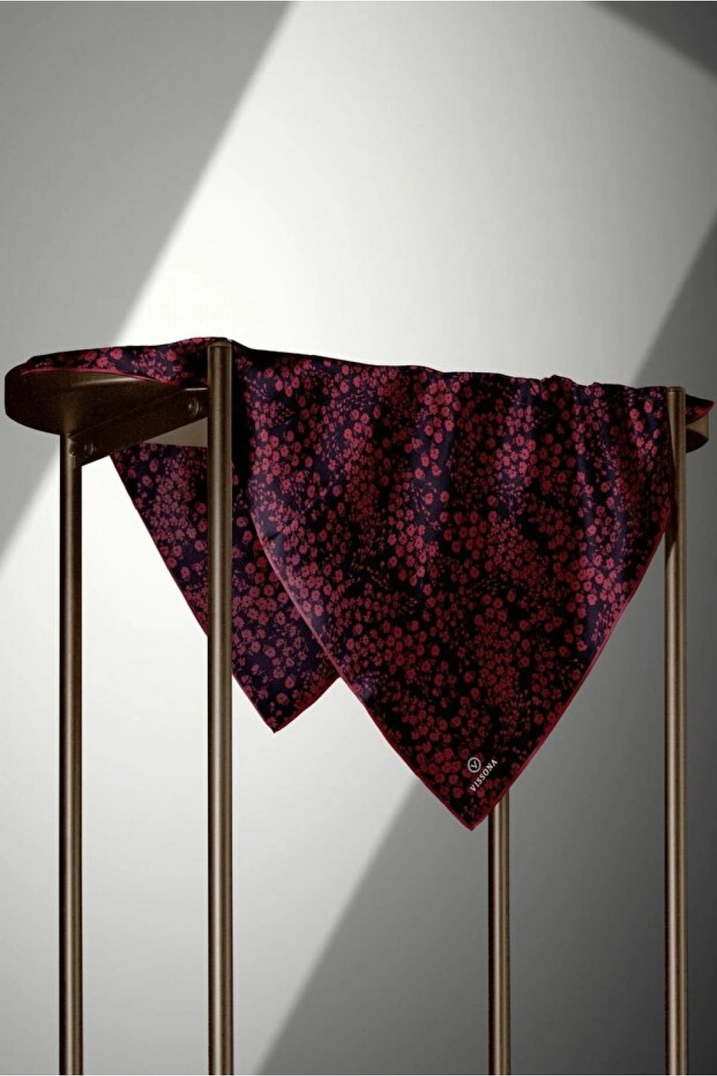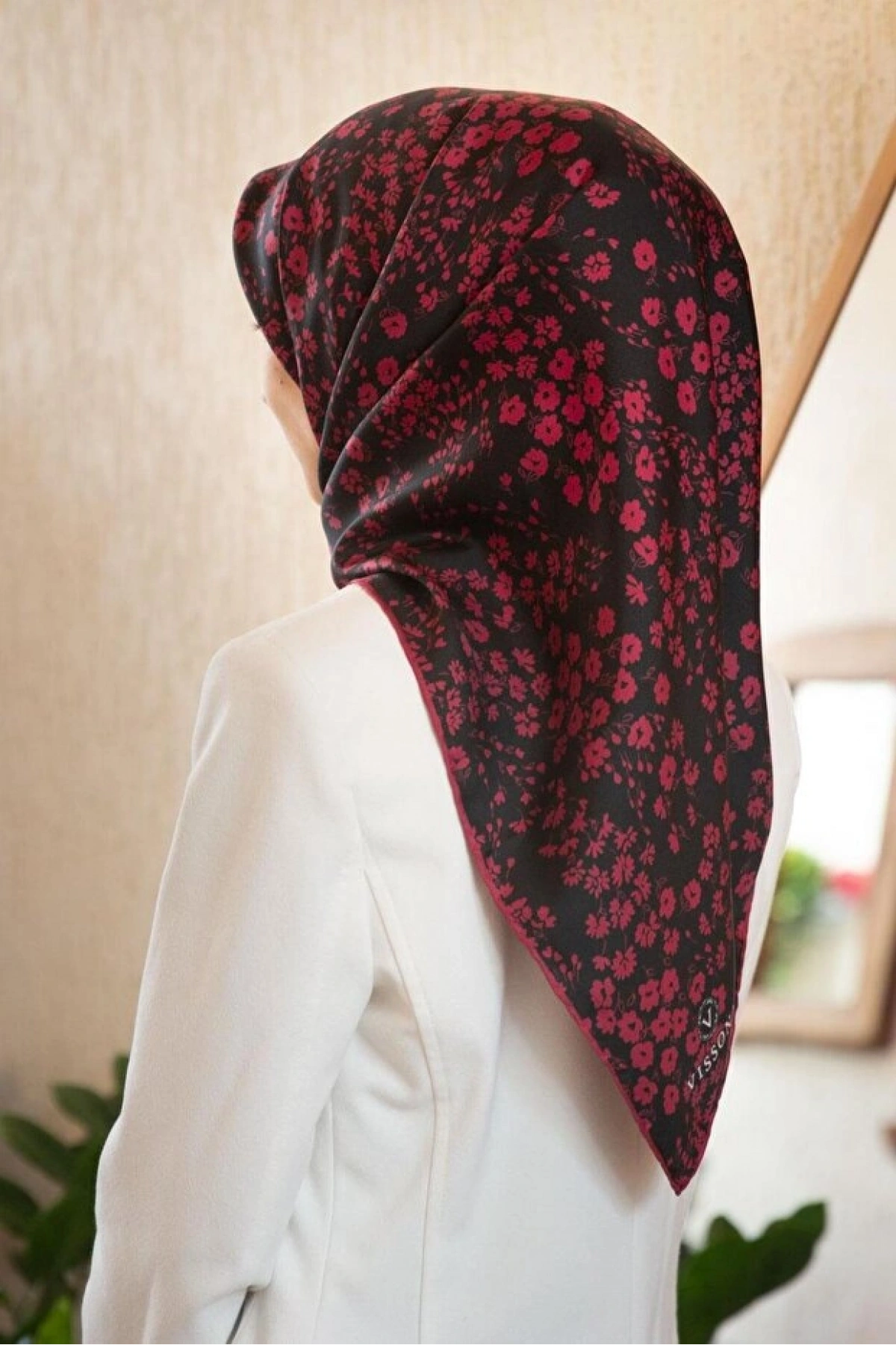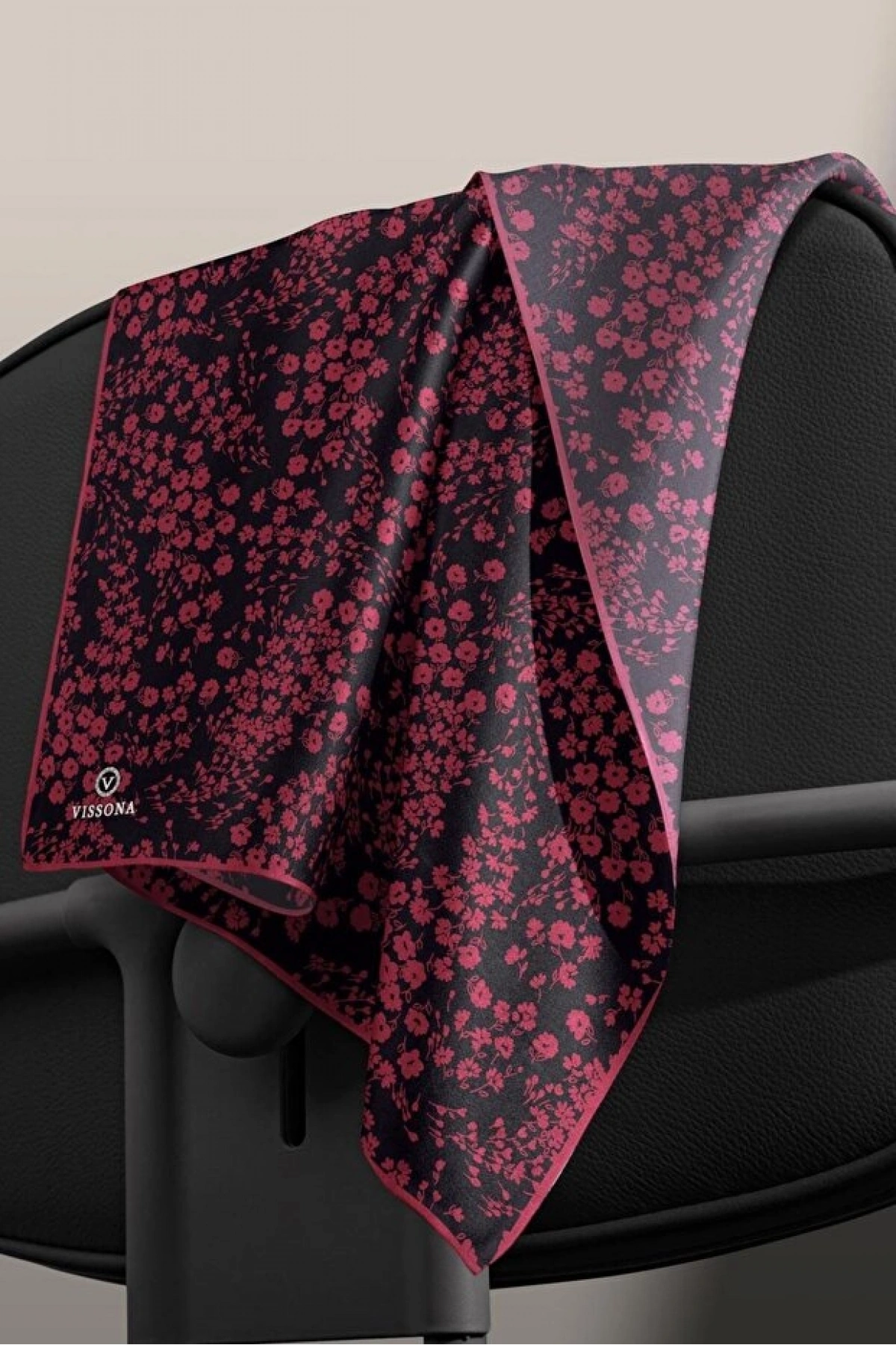 Vissona %100 Twill İpek Çıtır Çiçek Desenli Siyah - Bordo Renkli 90x90 Eşarp Dikim Şekli : El Dikişi