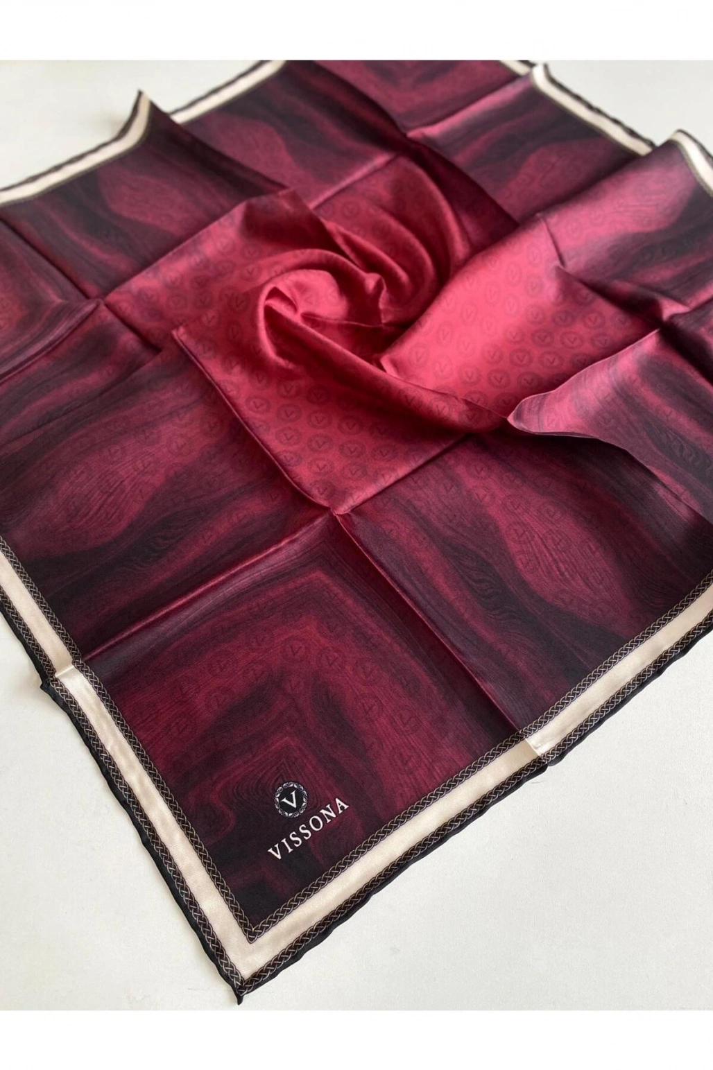 Vissona Tivil İpek Eşarp 10659 - 4 - 0018 Bordo Monogram Desen