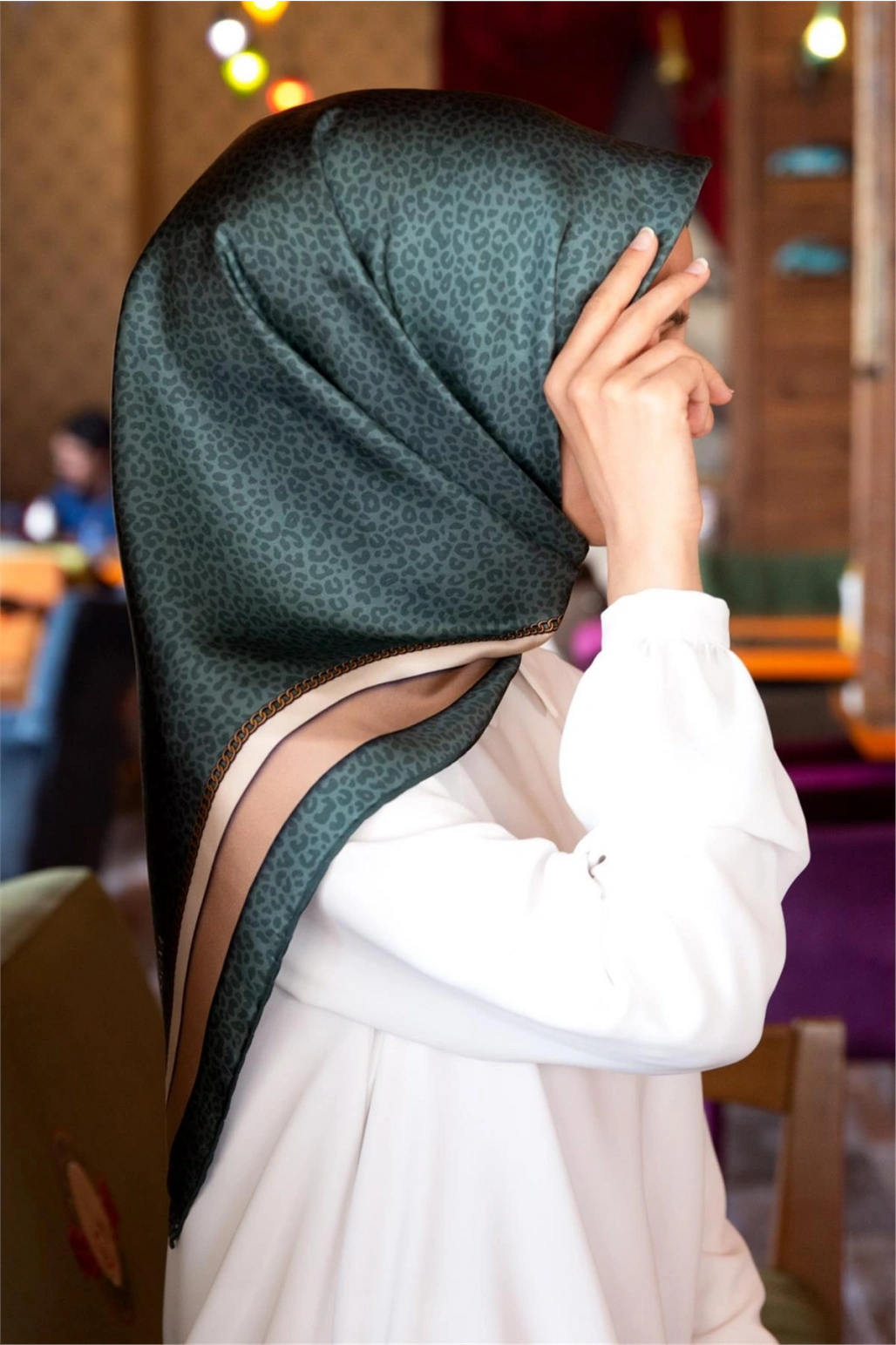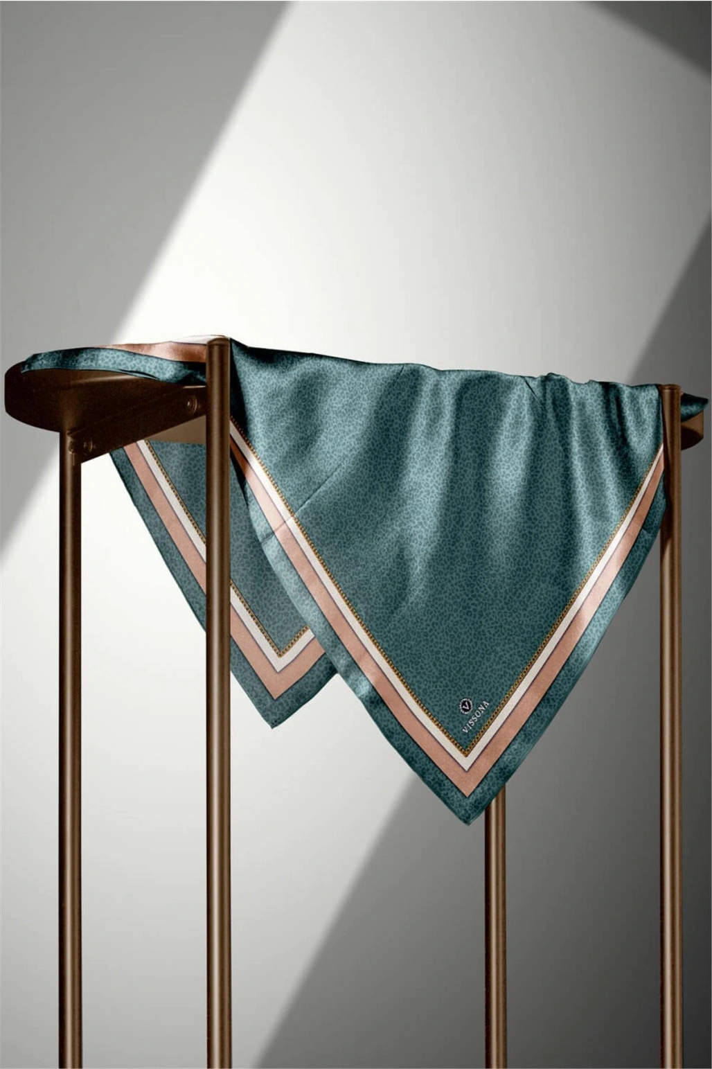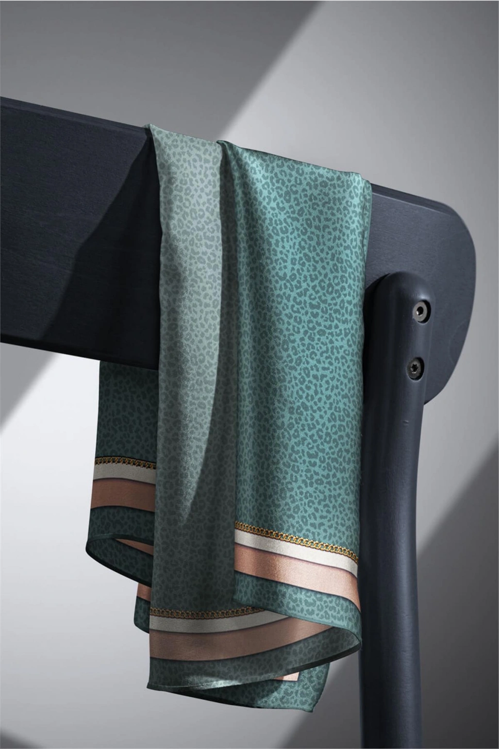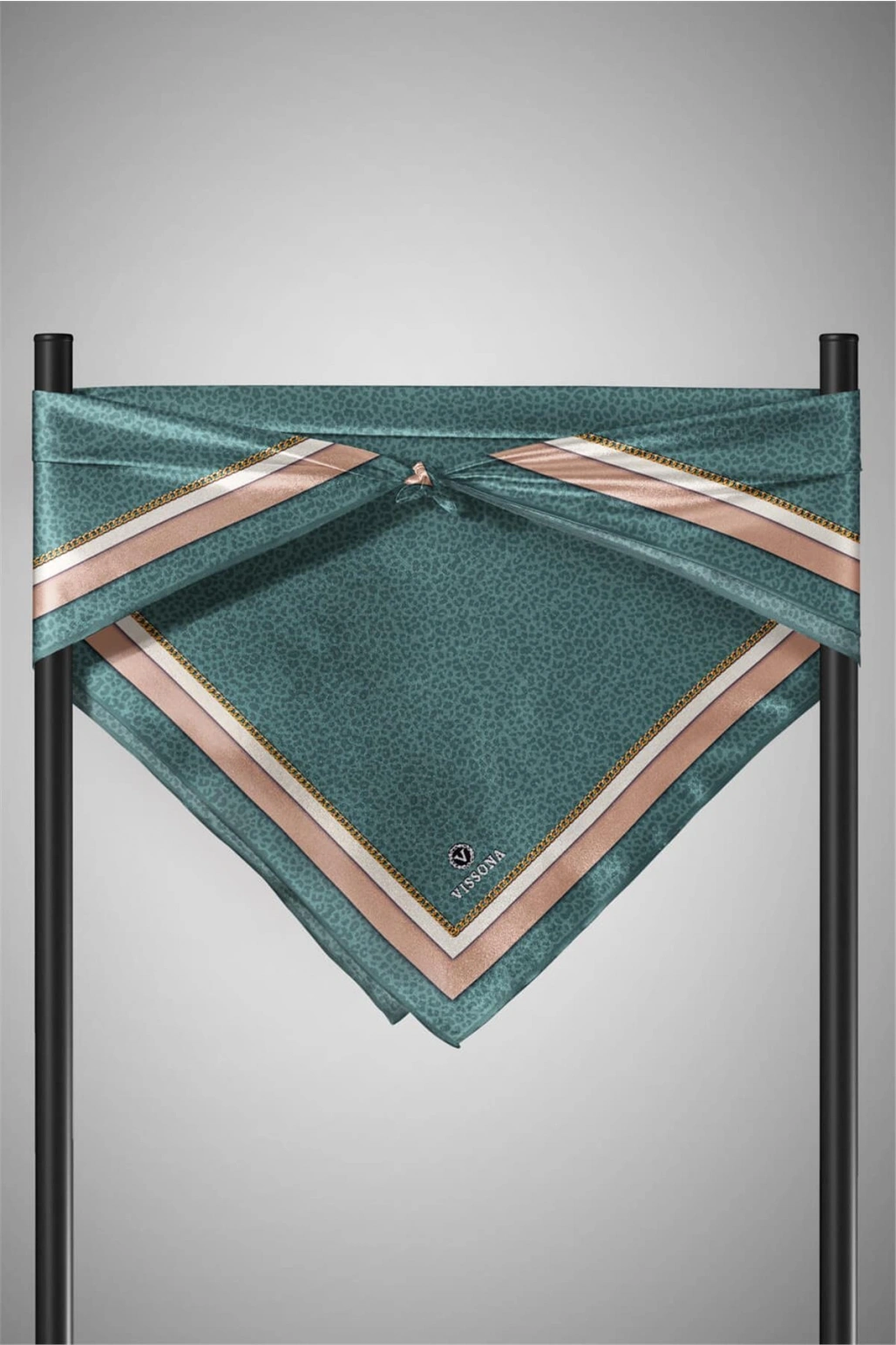 Vissona %100 Twill İpek Leopar Desenli Petrol Yeşili Renkli 90x90 Eşarp Dikim Şekli : El Dikişi
