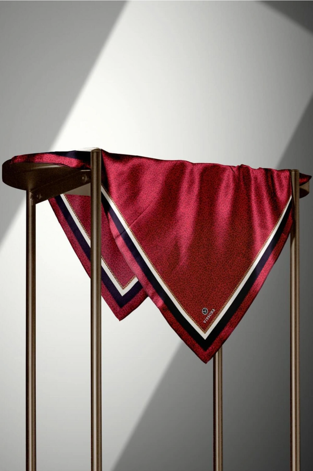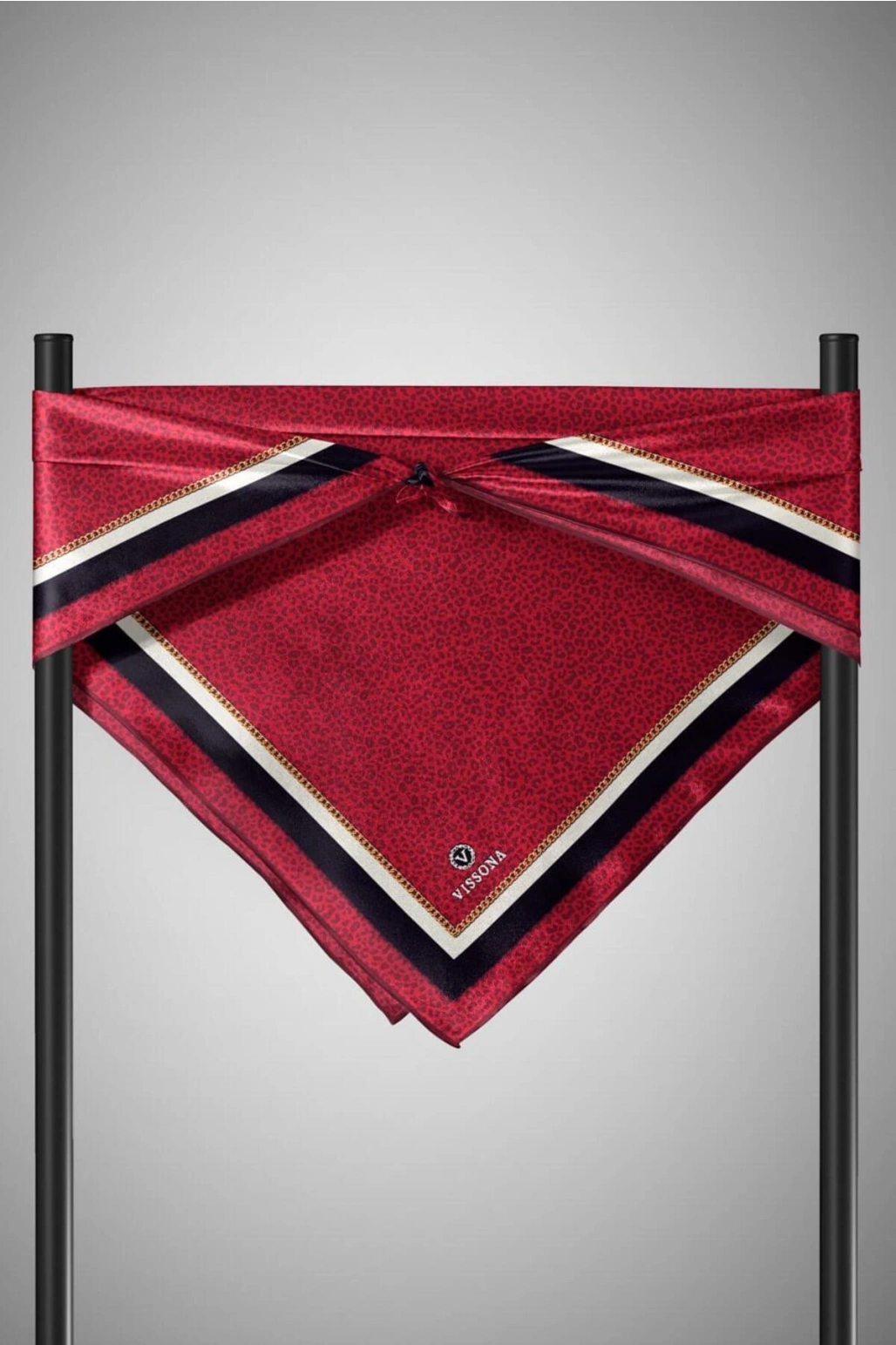 Vissona %100 Twill İpek Leopar Desenli Bordo Renkli 90x90 Eşarp Dikim Şekli : El Dikişi